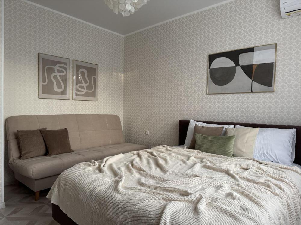 Прекрасная 1-к квартира в Курортной зоне, с функцией круглосуточного самостоятельного заселения. Прекрасная 1-к квартира в Курортной зоне, с функцией круглосуточного самостоятельного заселения. В квартире: кондиционер, Smart TV, качественный матрас, балкон и гардеробная, 2/5 этаж с лифтом, спальные места 2+1, микроволновая печь, электрический чайник, газовая плита, духовая печь, холодильник, стиральная машина, фен, утюг, телевизор. Укомплектованная посудой, приборами и принадлежностями для длительного проживания кухня, шторы блэкаут, двуспальная кровать 160х200 и диван-кровать 130х200 как дополнительное спальное место, чистые постельное бельё и комплекты полотенец, гель для душа, шампунь, кондиционер, мыло для рук, ватные палочки и диски, зубной набор, индивидуальные нагрев воды и отопление, быстрый Wi-Fi и Smart TV, просторная гардеробная.