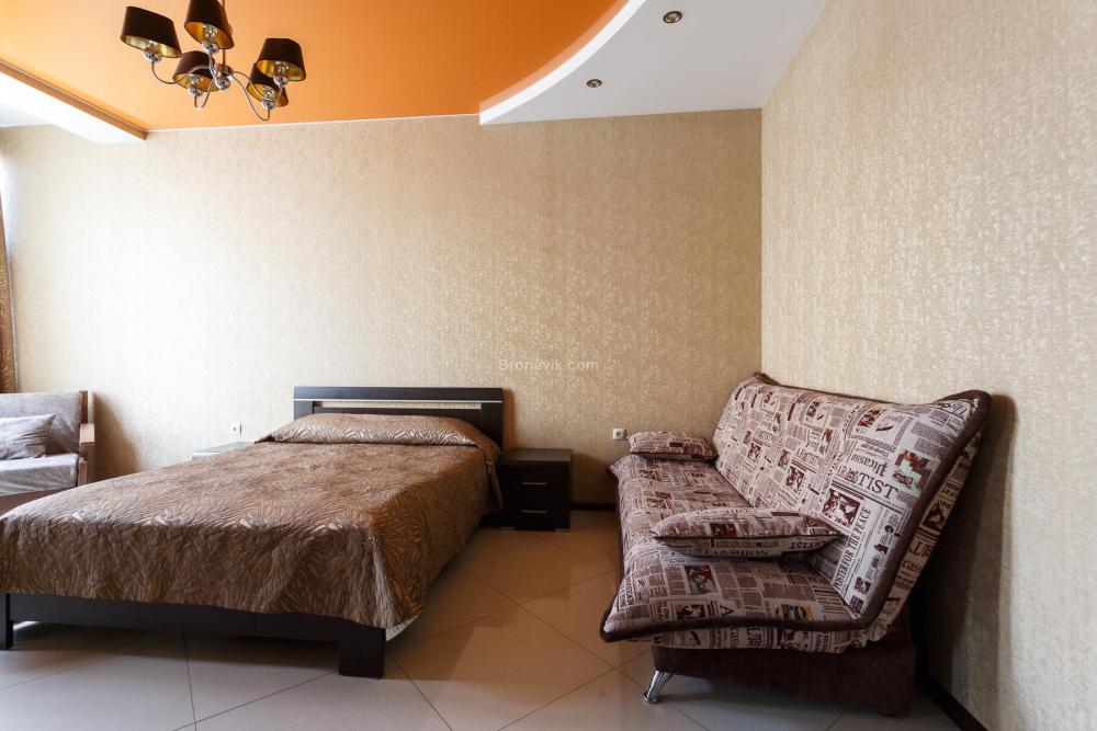 В спальне: две раздельные кровати, две тумбочки, светильники, туалетный столик с пуфиком, кондиционер, ЖК телевизор с USB-накопителем. В кухне: диван раскладной, кондиционер, ЖК телевизор с USB-накопителем, вся столовая принадлежность для приготовления, газовая плита, микроволновая печь, холодильник, стол, 4 стула, телефон внутреннего пользования. В коридоре: шкаф-купе. Cанузел: ванна, зубной набор, шампунь, мыло, полотенце для ног, рук и тела, фен, туалет, туалетные приспособления, противоскользящий ковер.