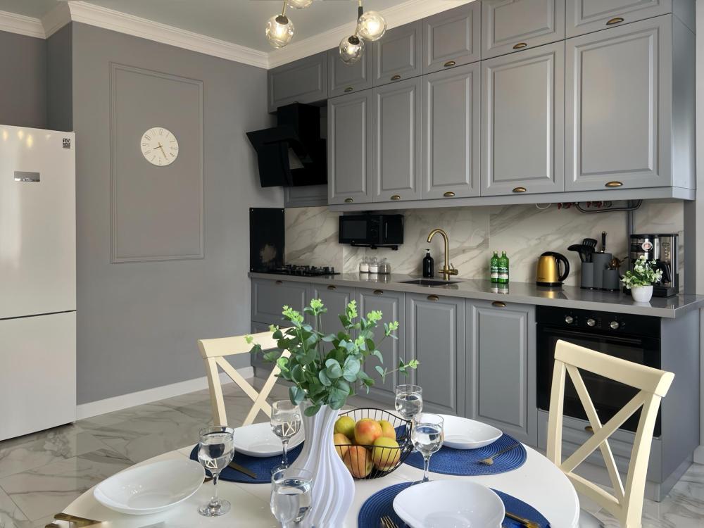 Апартаменты Park & House № 4 (кухня и ванна) до 10 гостей– это комфортабельные 2-хкомнатные апартаменты на 1-ом этаже площадью в 72 м², на 8-10 человек, располагающиеся в Курортной Зоне г. Ессентуки в нескольких шагах от санатория "Виктория" и парка Победы (в этом же здании, что и Отель Park & House). В Апартаментах две комнаты с телевизорами SMART TV и кондиционерами, большая кухня! Здесь есть вещи необходимые для жизни и отдыха, например: посудомоечная машина, стиральная машина, газовая печь, микроволновая печь, чайник, автоматическая кофемашина, посуда для приготовления пищи, утюг, гладильная доска, сушилка и вместительный холодильник. По приезду Вам необходимо будет заплатить ТУРИСТИЧЕСКИЙ НАЛОГ (ТН) - это новый местный налог, который заменяет Курортный сбор. Туристический налог оплачивается только наличными во время заселения – одновременно с оплатой размещения. При заселении у Гостя должна быть произведена 100% оплата за весь период проживания. Также при заезде в качестве страхового депозита при заселении в Апартаменты необходимо внести денежные средства в размере от 5 000 рублей на случай порчи имущества или нарушения правил проживания в Апартаментах (например, шум, курение и т.д). Депозит возвращается при выезде, если правила проживания были полностью соблюдены. Депозит оплачивается только наличными средствами и взимается на усмотрение руководства.