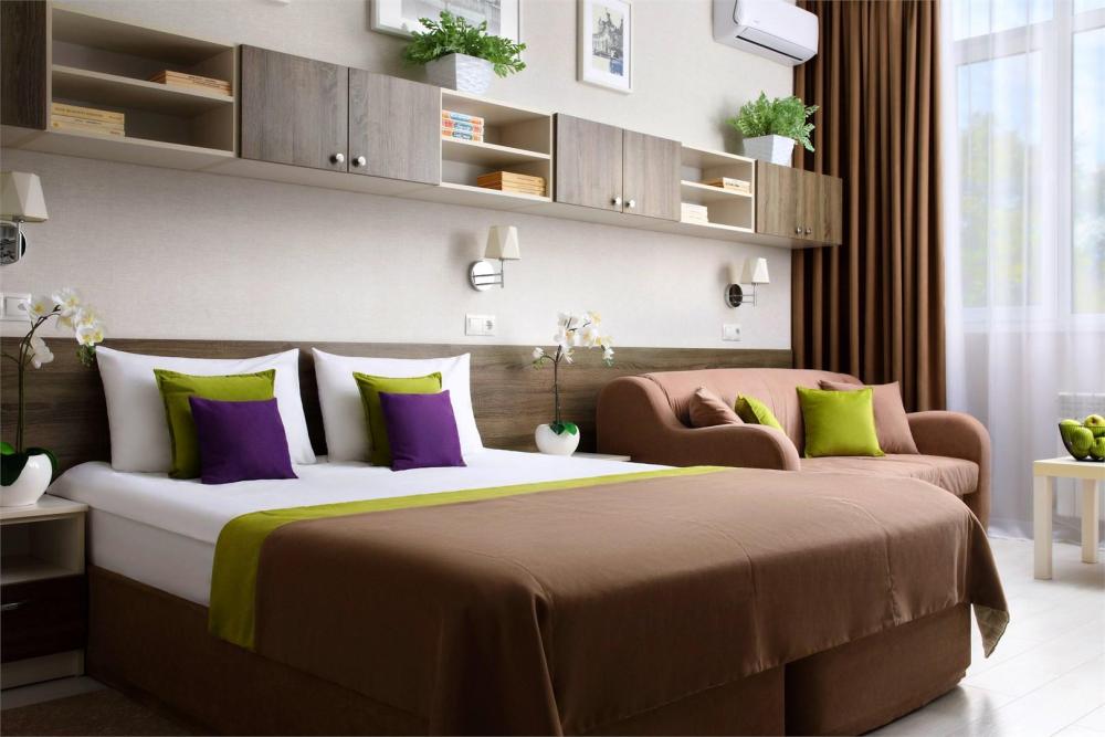 Double Lux 2-х комнатный - номер с двумя спальнями площадью 40 м2 с двуспальной или двумя односпальными кроватями на выбор в каждой комнате. В номере удобная мебель, кондиционер, телевизор, холодильник, душ в ванной комнате, фен, сейф и бесплатный Wi-Fi. Приветственный чай и кофе, бутилированная вода.