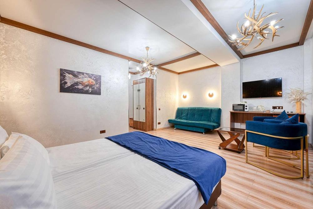 Уютные апартаменты Astra de Rosa подходят для четырехместного размещения гостей. В апартаментах площадью 35 кв. м. есть всё необходимое для комфортного проживания - двуспальная кровать семейного типа 180х200, двухместный большой раскладной диван, кондиционер, телевизор, холодильник, чайник, микроволновая печь, фен, полотенца, халаты, тапочки, зубной набор, средства для душа, сушка для обуви, сейф. В стоимость проживание входит: -Проживание в апартаментах выбранной категории -Wi-fi Инфраструктура отеля: -Парковка (бесплатно, кол-во мест ограничено) -Камера хранения горнолыжного снаряжения (в зимний сезон) -Сауна (с 15:00 до 19:00 бесплатно) + душ -Открытый всесезонный подогреваемый бассейн (бесплатно) Услуги: -Уборка (бесплатно при бронировании от 7 ночей) Апартаменты расположены у горного массива Аибга в курортном посёлке Эстосадок, в 200 метрах от крупного развлекательного комплекса «Казино Сочи». В десяти минутах ходьбы — главная канатная дорога красной поляны и торгово -развлекательный центр «Горки Молл». Вокруг десятки магазинов и кафе, прокаты горнолыжного оборудования. Поблизости остановки общественного транспорта, в двух километрах — ж/д станция «Эсто-Садок». В дизайне апартаментов современный стиль органично дополняется элементами скандинавского интерьера. Для гостей круглогодично работает сауна и открытый подогреваемый бассейн с новейшей системой очистки, температура воды в бассейне круглогодично поддерживается на уровне +27 +32 градусов, в апартаментах предоставляются полотенца для бассейна. Рядом с бассейном расположены шезлонги для комфортного отдыха и сауна. Также для гостей занимающихся горнолыжными видами спорта предлагаются услуги комнаты для сушки и хранения лыжного оборудования. Наши апартаменты - это идеальное место для тех, кто ищет гармонию между комфортом и активным отдыхом. Уют в окружении живописных гор и близость к центру курорта Красная Поляна делают его уникальным предложением.