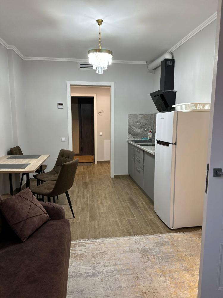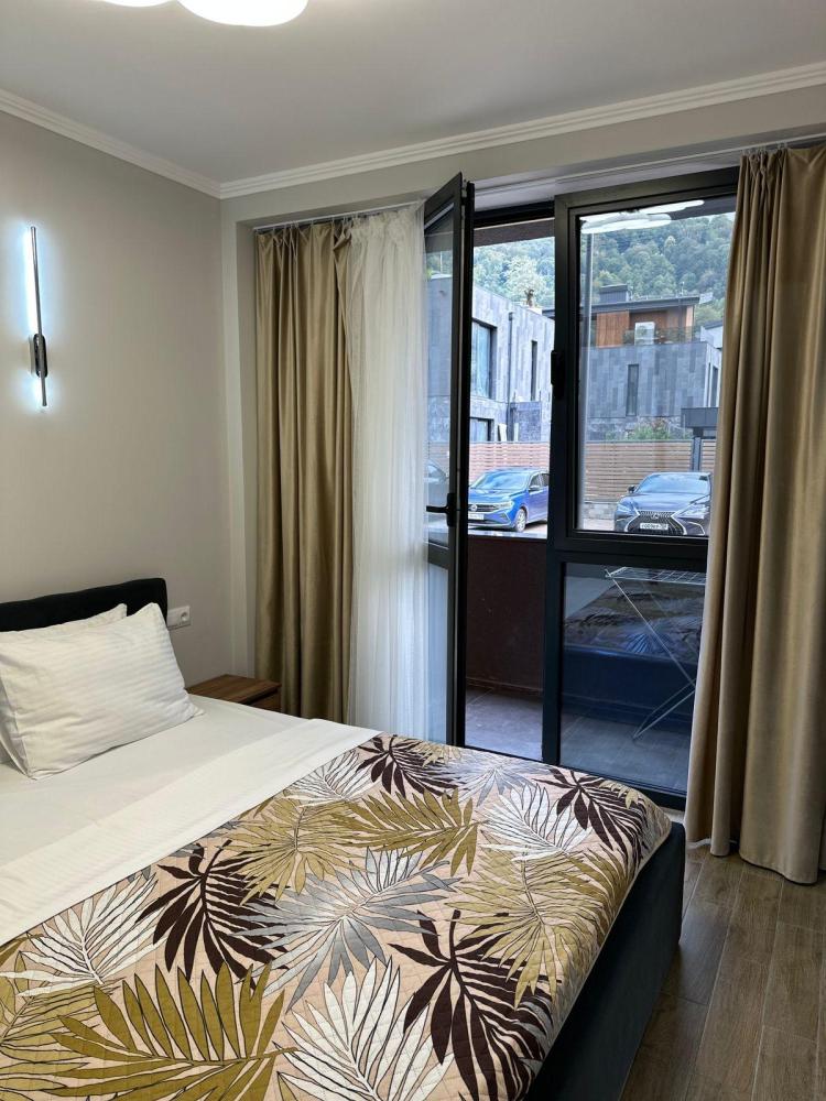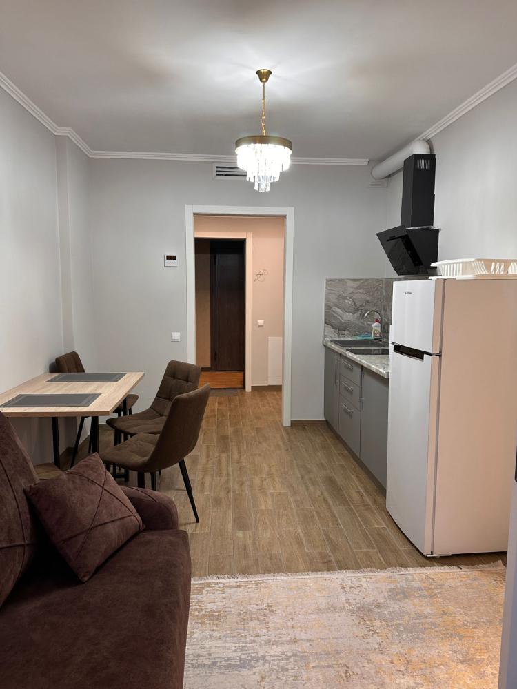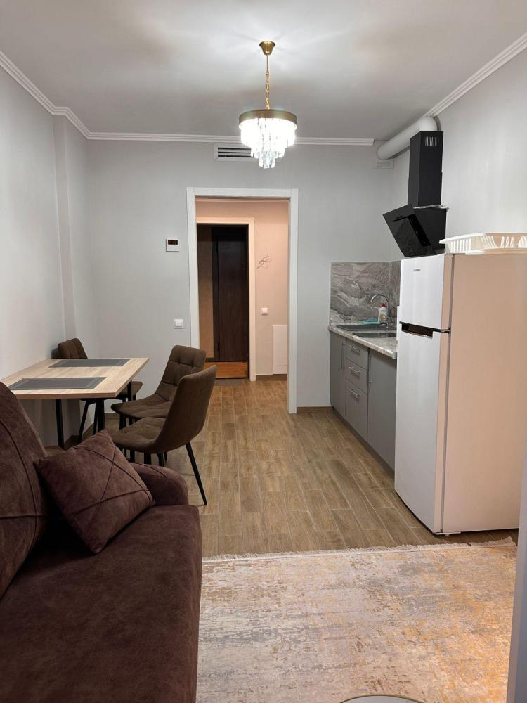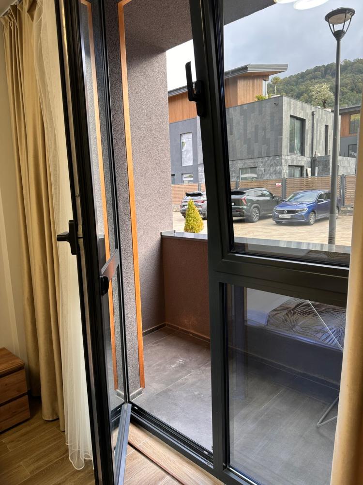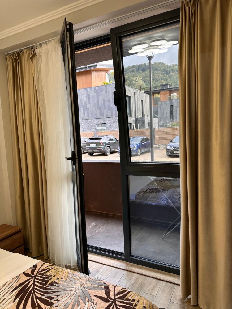 Квартира с кухней-гостиной и отдельной спальней. В каждой квартире есть все, что нужно для комфортного проживания: спальные места, постельное белье и полотенца, посуда, микроволновка, телевизор, Wi-Fi, гладильные принадлежности, стиральная машина, холодильник, кондиционер. К каждым апартаментам предоставляется кладовая комната для хранения спорт инвентаря. Замечательный вид на горы из каждой квартиры.