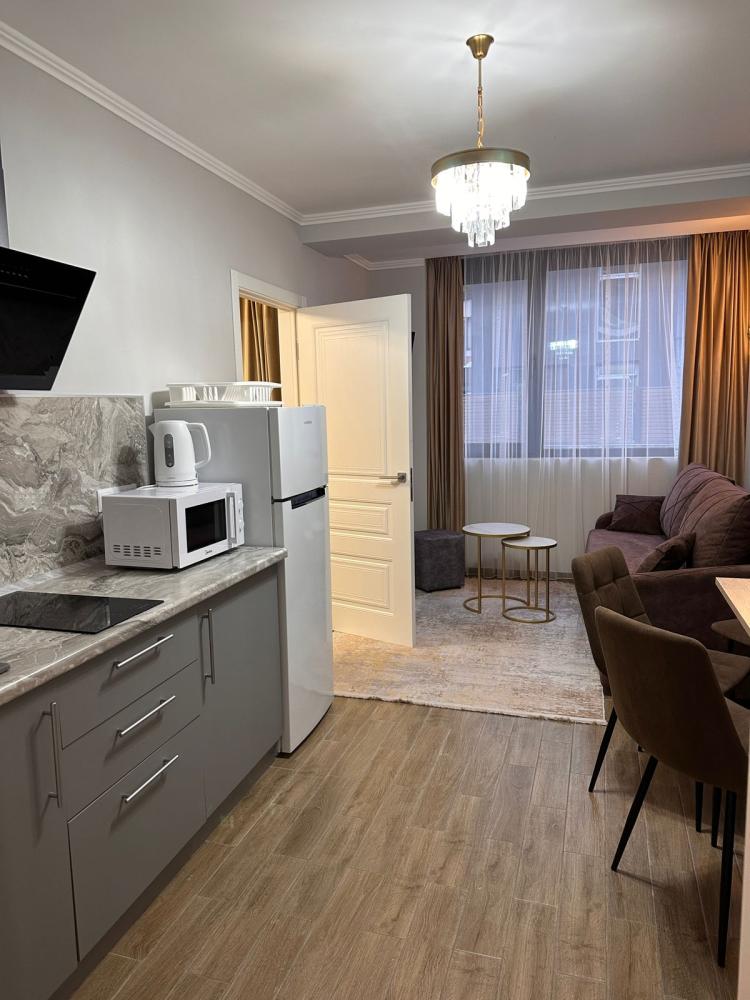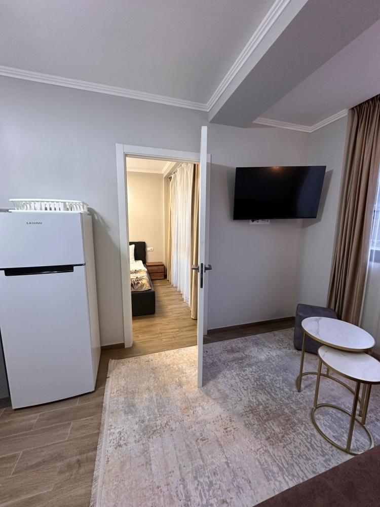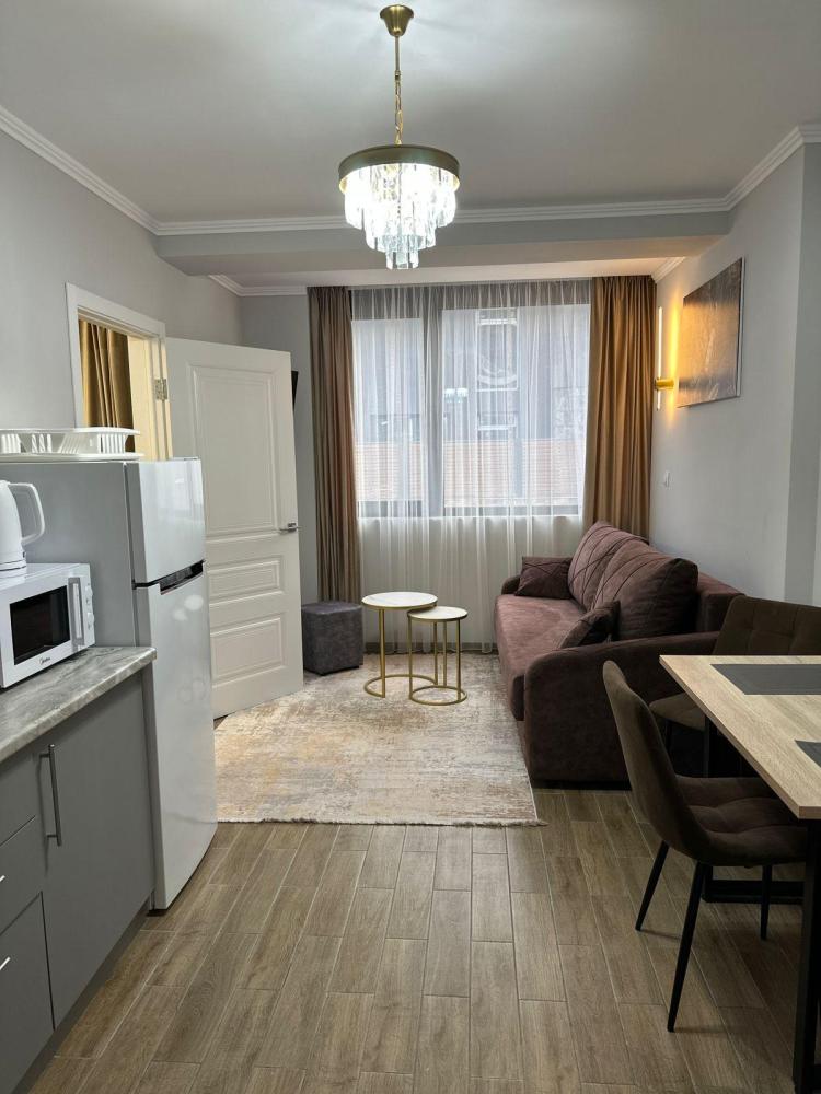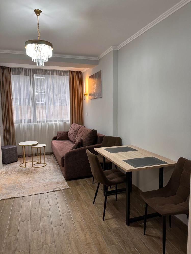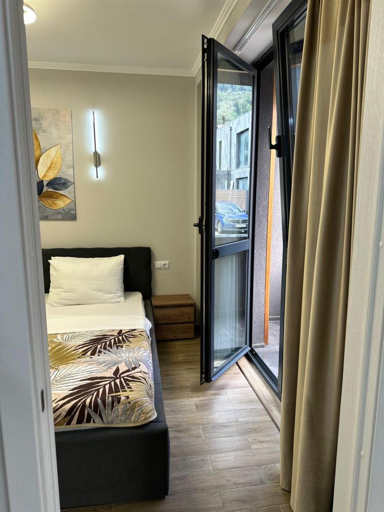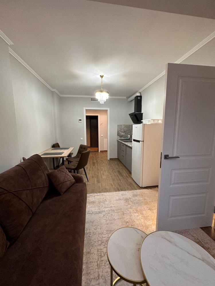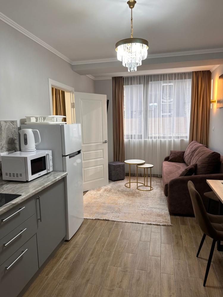 Квартира с кухней-гостиной и отдельной спальней. В каждой квартире есть все, что нужно для комфортного проживания: спальные места, постельное белье и полотенца, посуда, микроволновка, телевизор, Wi-Fi, гладильные принадлежности, стиральная машина, холодильник, кондиционер. К каждым апартаментам предоставляется кладовая комната для хранения спорт инвентаря. Замечательный вид на горы из каждой квартиры.