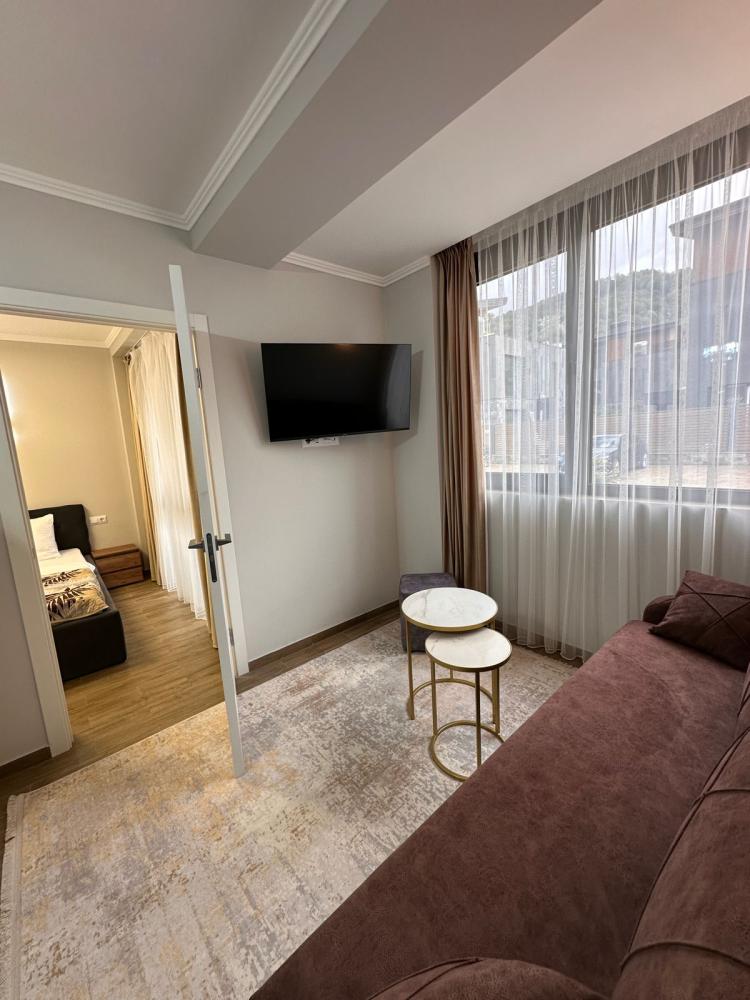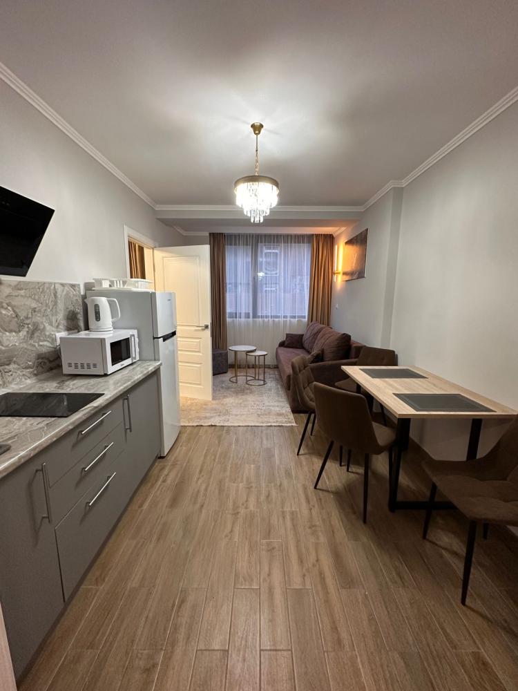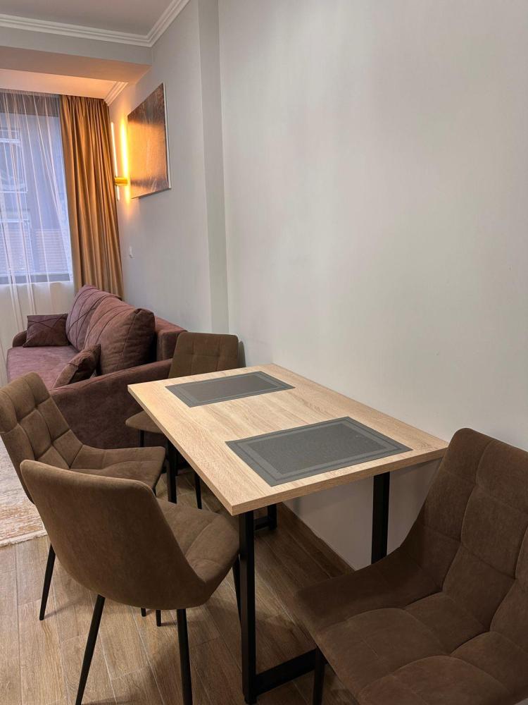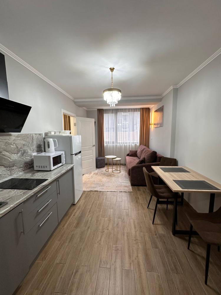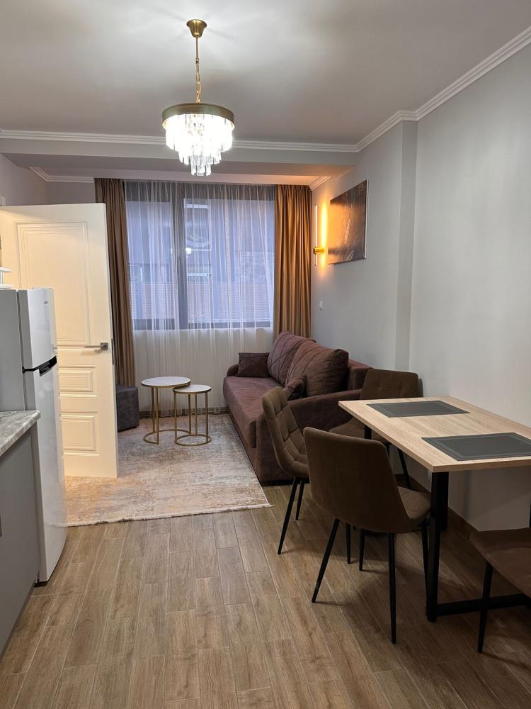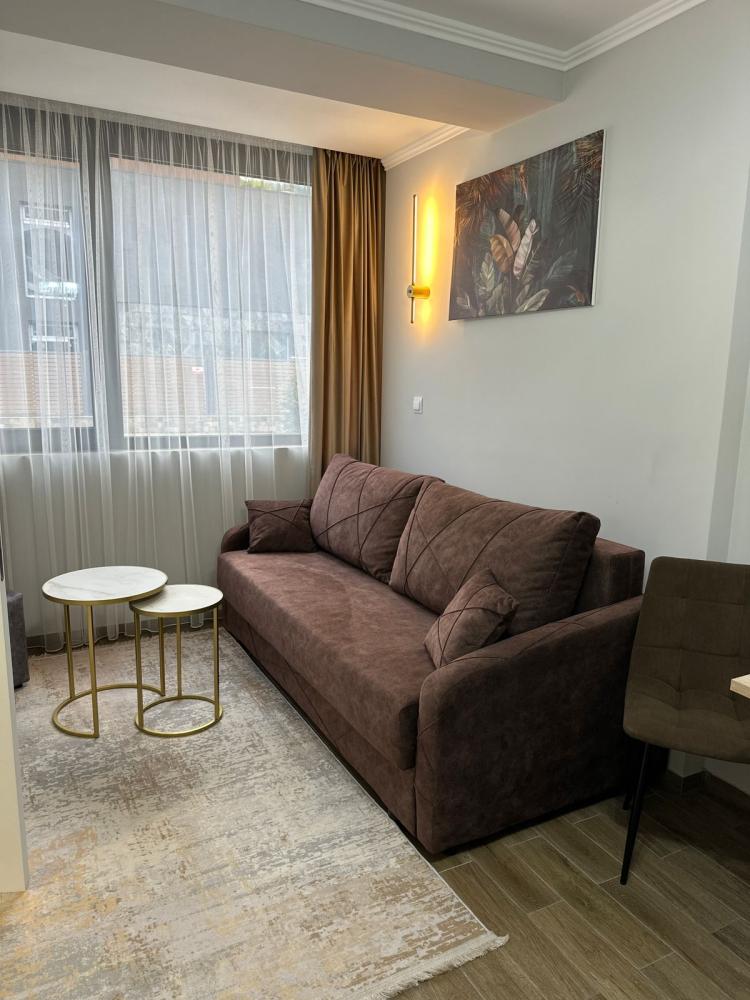 Квартира с кухней-гостиной и отдельной спальней. В каждой квартире есть все, что нужно для комфортного проживания: спальные места, постельное белье и полотенца, посуда, микроволновка, телевизор, Wi-Fi, гладильные принадлежности, стиральная машина, холодильник, кондиционер. К каждым апартаментам предоставляется кладовая комната для хранения спорт инвентаря. Замечательный вид на горы из каждой квартиры.
