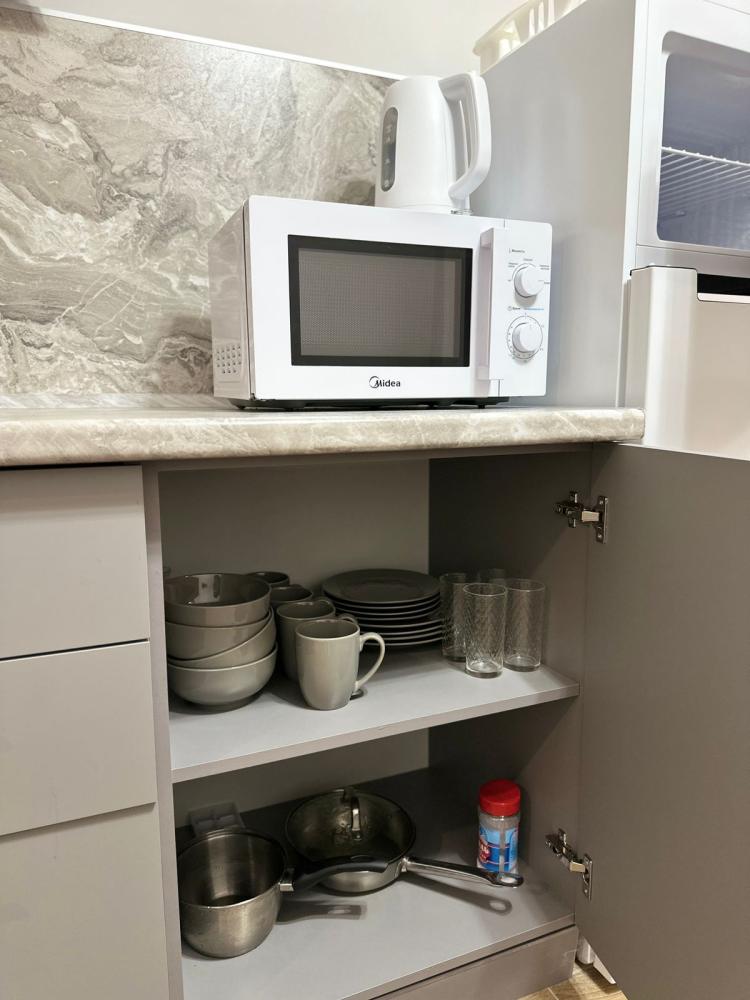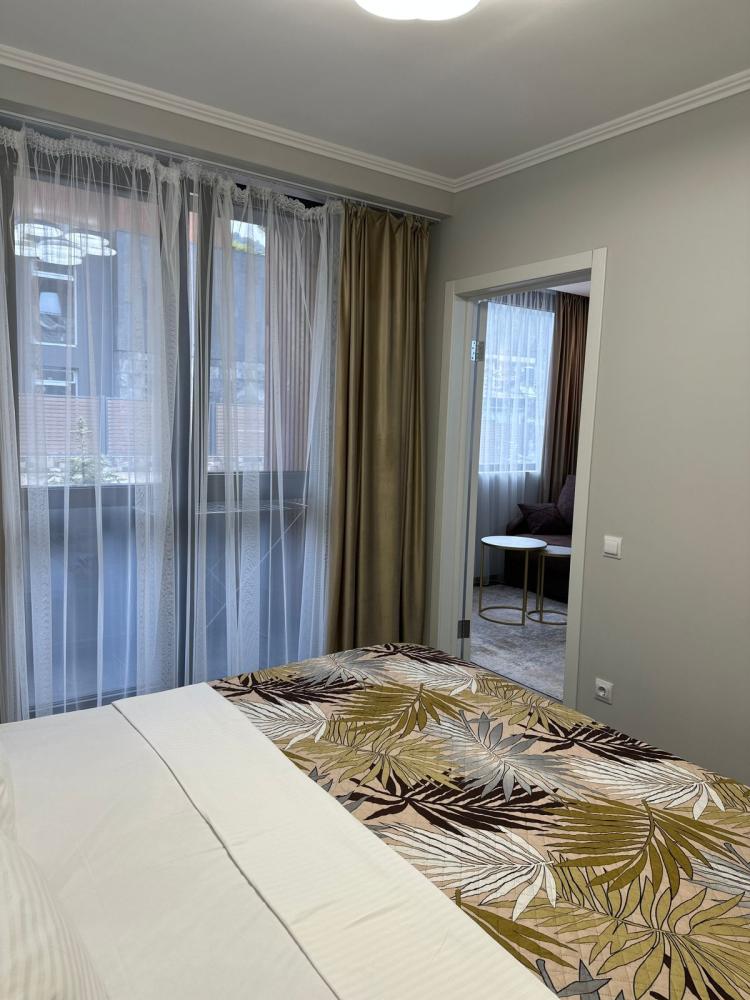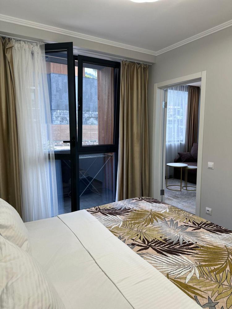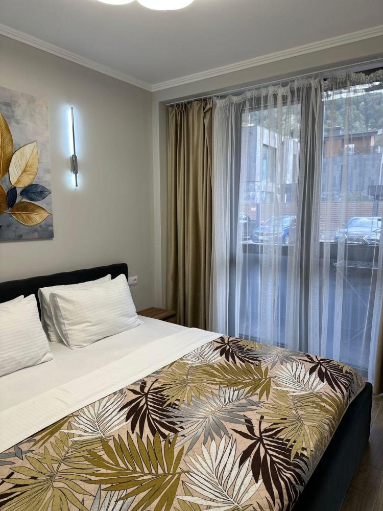 В каждой квартире есть все, что нужно для комфортного проживания: спальные места, постельное белье и полотенца, посуда, микроволновка, телевизор, Wi-Fi, посудомоечная машинка гладильные принадлежности, фен,стиральная машина, холодильник, кондиционер,теплые полы, балкон. К каждым апартаментам предоставляется кладовая комната для хранения спорт инвентаря. Замечательный вид на горы из каждой квартиры.