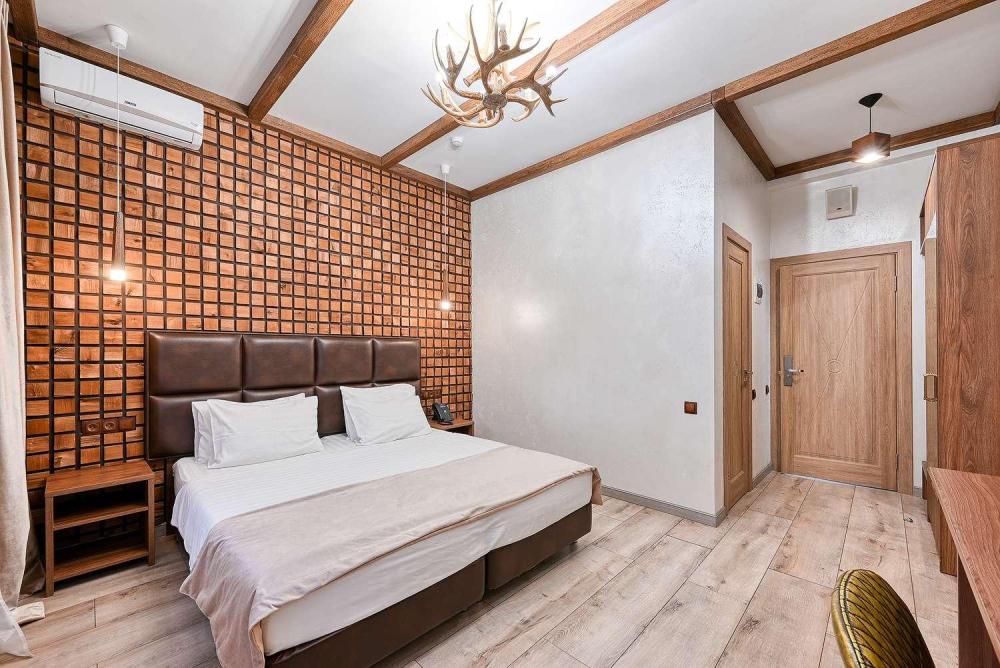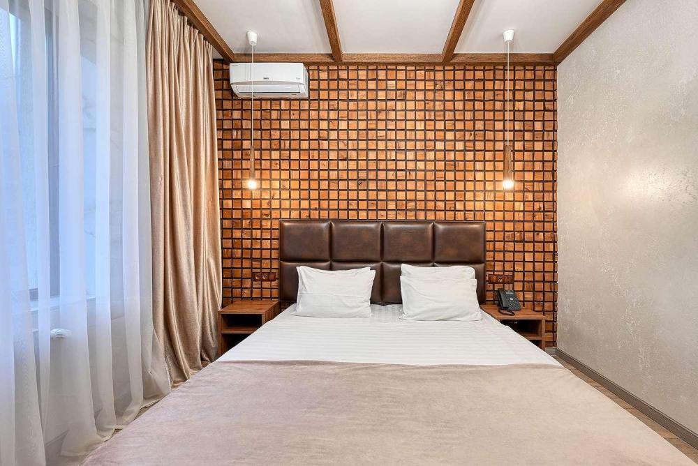 Уютные апартаменты подходят для одно- двухместного размещения гостей. В апартаментах площадью 21 кв. м. есть всё необходимое для комфортного проживания - king-size двуспальная кровать семейного типа 180х200, кондиционер, телевизор, холодильник, чайник, фен, полотенца, халаты, зубной набор, средства для душа, сейф. В стоимость проживание входит: -Проживание в апартаментах выбранной категории -Wi-fi Инфраструктура отеля: -Парковка (бесплатно, кол-во мест ограничено) -Детская комната -Тренажерный зал (мини) -Багажная комната -Камера хранения горнолыжного снаряжения (в зимний сезон и по запросу). Услуги: -Уборка (бесплатно при бронировании от 7 ночей) Наши апартаменты — это место, где высокие стандарты сервиса гармонично сочетаются с атмосферой домашнего уюта в окружении гор. Фасад из красно-коричневого дерева гармонично сочетается с окружающей природой, создавая уют дома в горах. Апартаменты оформлены с использованием натуральных материалов. Интерьер выполнен в современном стиле, сочетающем дерево и мрамор. Удачное расположение на высоте 540 м над уровнем моря, в самом центре горнолыжных курортов. Рядом находятся Главные горнолыжные курорты страны: «Красная Поляна», «Роза Хутор» и «Газпром». В непосредственной близости находятся все основные объекты курортной инфраструктуры: рестораны, кафе, бары, супермаркеты, аптеки, а так же торговый центр «Горки-Молл». Уникальное расположение позволит Вам всегда быть в центре событий и провести свой отдых на высоте!