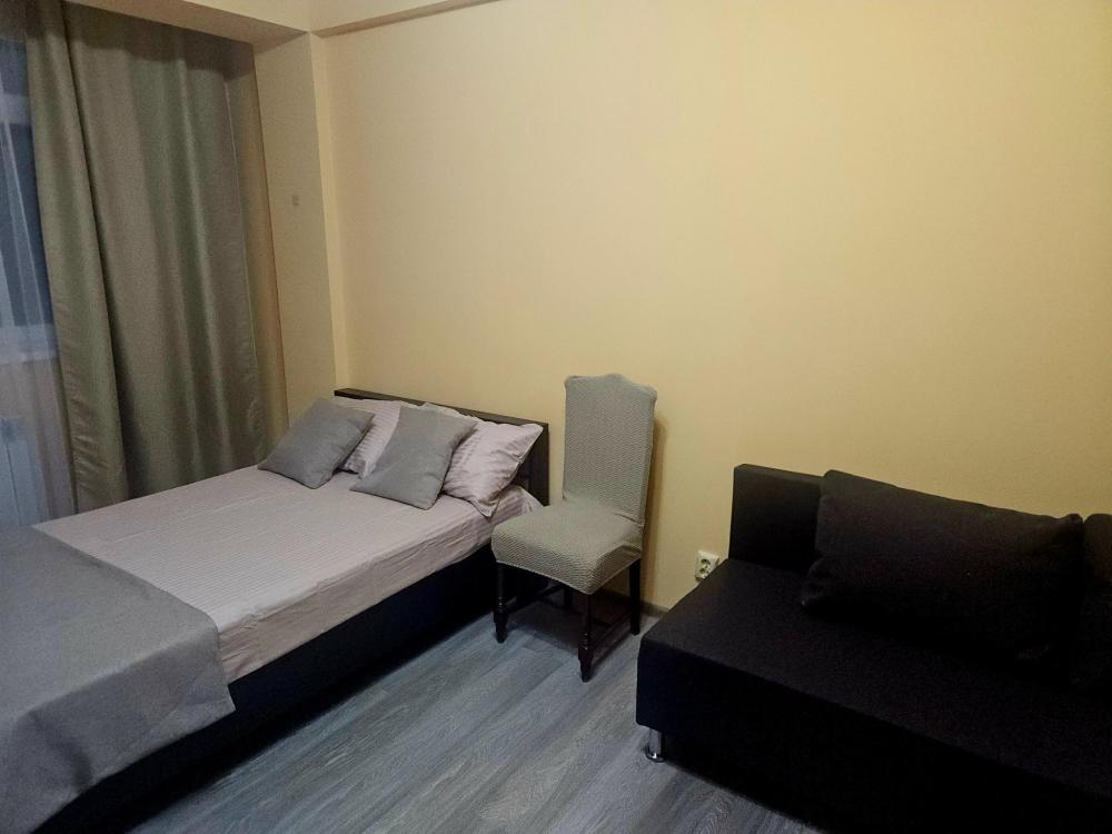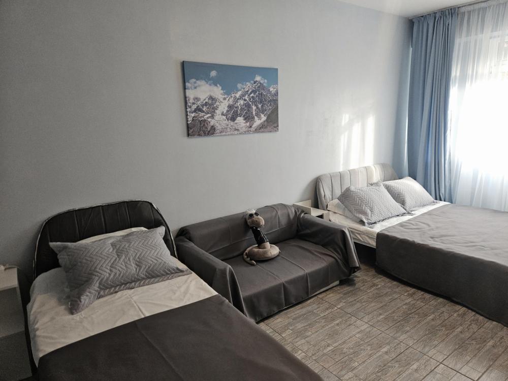 1 спальня + кухня-гостиная Стандарт ( ул. Эстонская, 37) Апартаменты представляют собой большую однокомнатную квартиру . Спальня и кухня - раздельные помещения с отдельными входами из коридора . В спальне : 2 спальная кровать и 2 спальный диван- кровать. На кухне - 1 спальный диван. Кухня оборудована всем необходимым: плита 4- комфорочная , микроволновая печь, чайник холодильник, посуда, стол. Балкон полностью открытый , с балкона видны горы. Санузел- туалет , душ, раковина. В апартаментах есть кондиционер и стиральная машина. Двор с детской площадкой и парковкой для автомобилей( большое количество мест) . В соседнем торговом центре -столовая , магазины Магнит, Пятерочка. Напротив расположены Казино и RED арена . До горнолыжного подъёмника пешком 12 минут или 2 остановки на автобусе.
