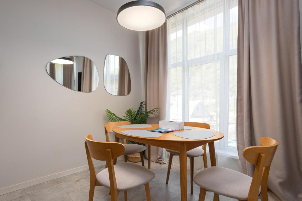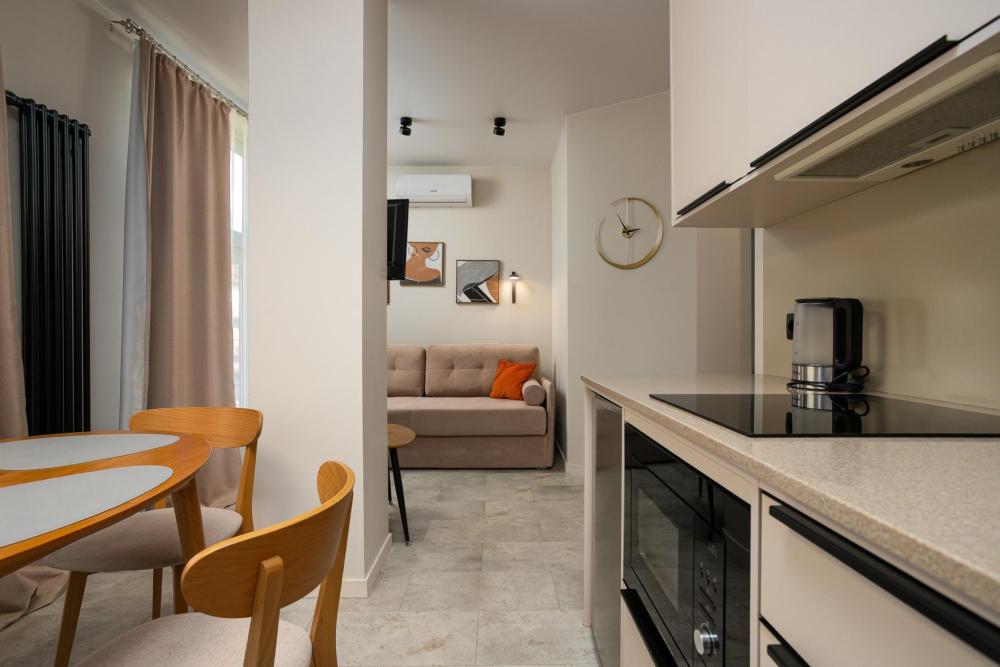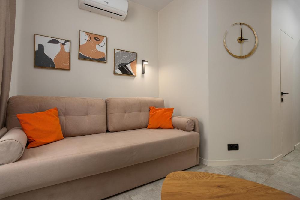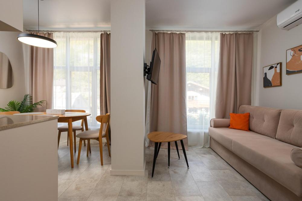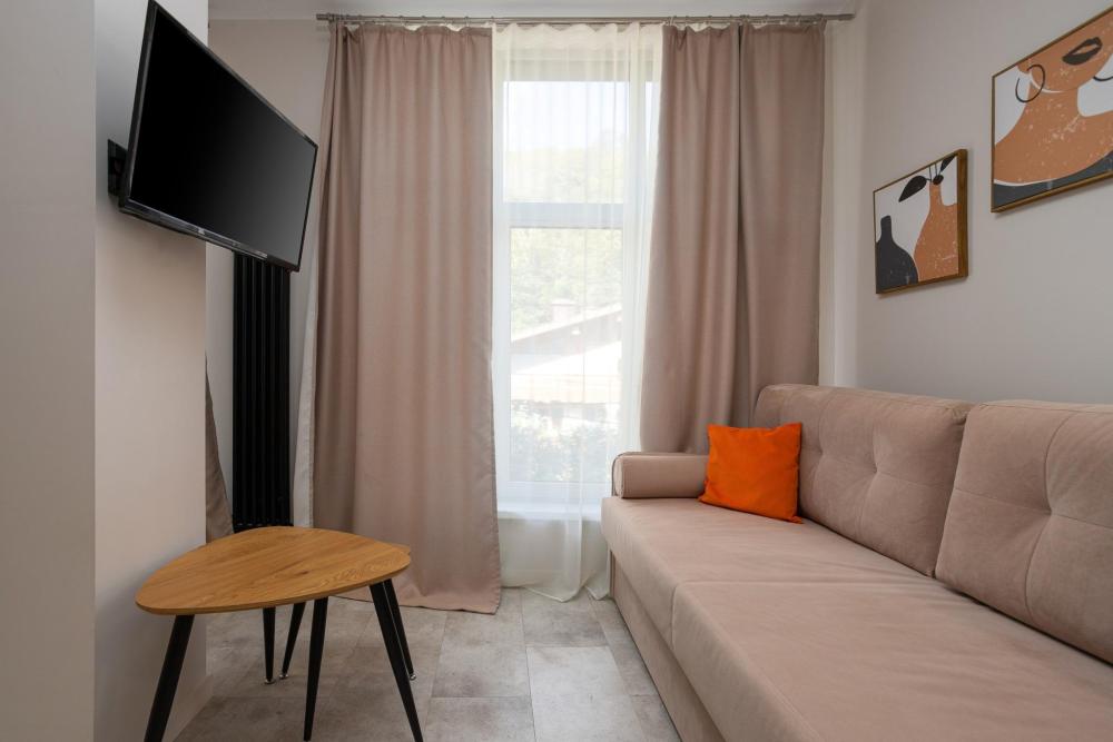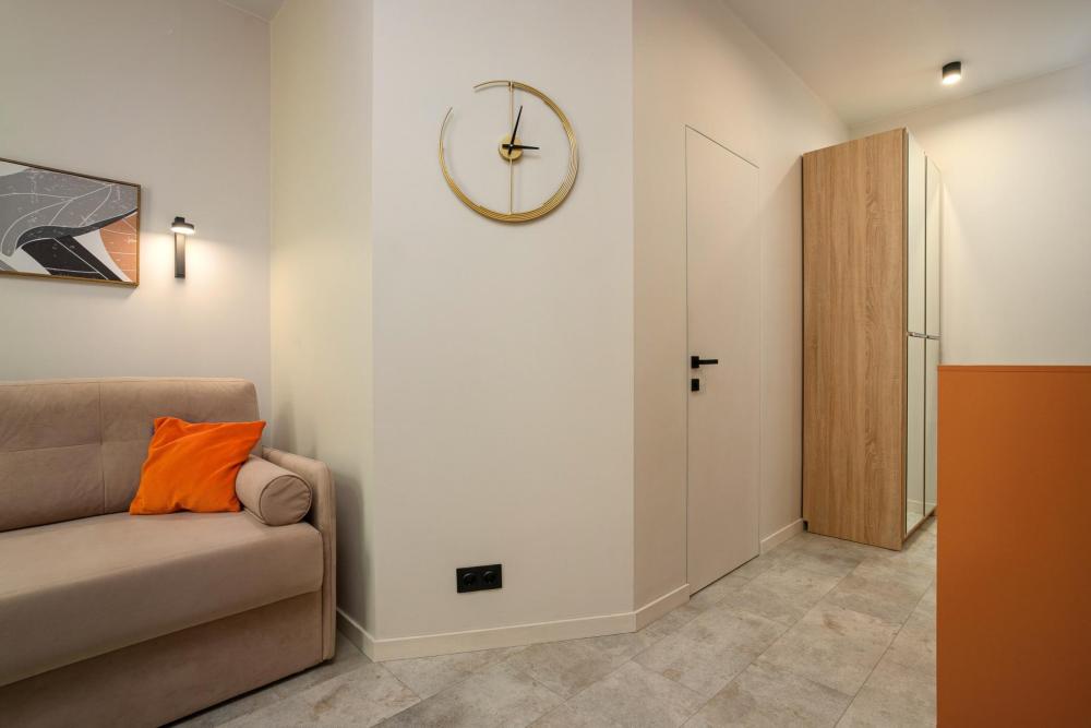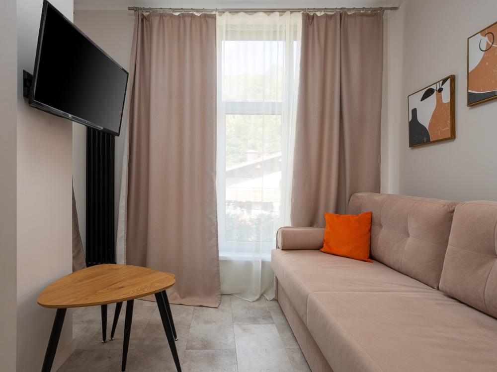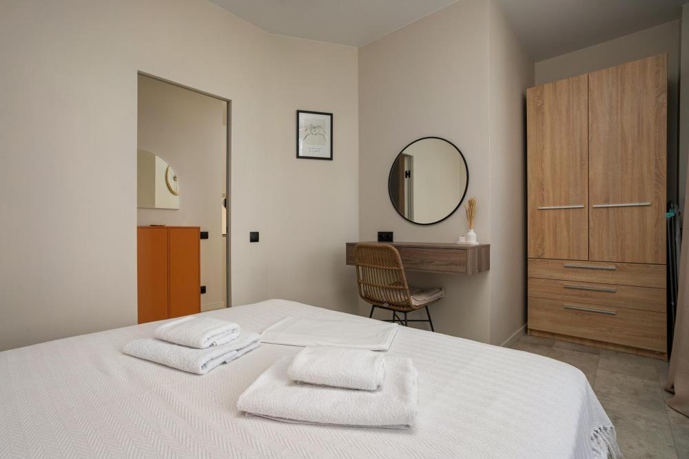 3 этаж Апартаменты вмещают 4 человек. Изолированная спальня с двуспальной кроватью и кухня-гостиная, с раскладным диваном. Есть всё для комфортного проживания: современное кухонное оборудование, набор посуды и столовых приборов, качественная сантехника. Уборка перед Вашим заселением, постельное белье и полотенца уже включены в стоимость проживания. ⏱️ Гибкое время заезда и выезда Размещение с животными