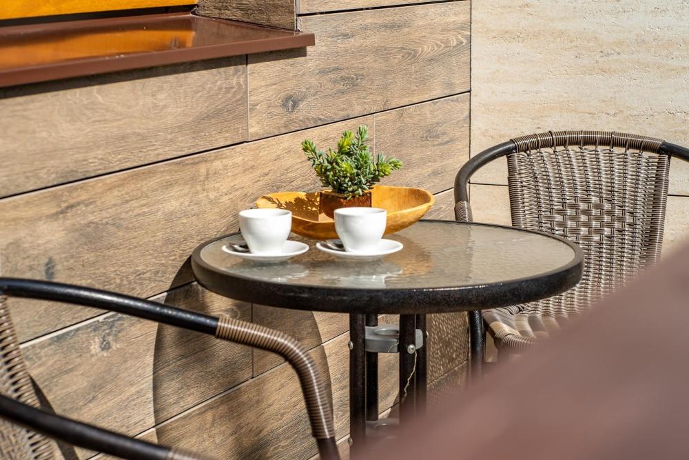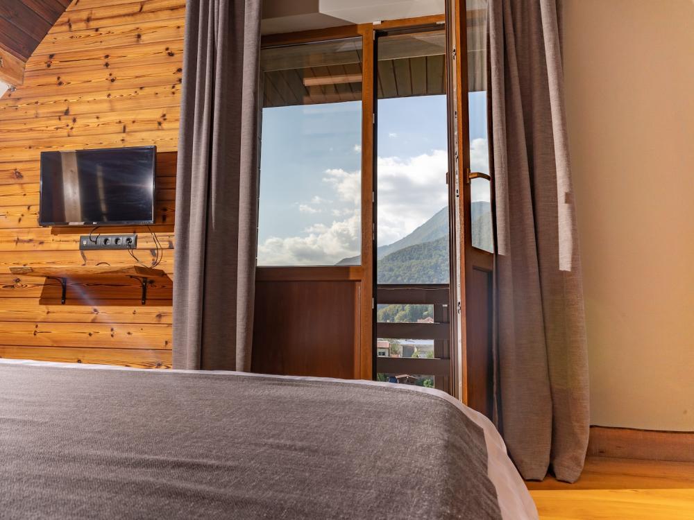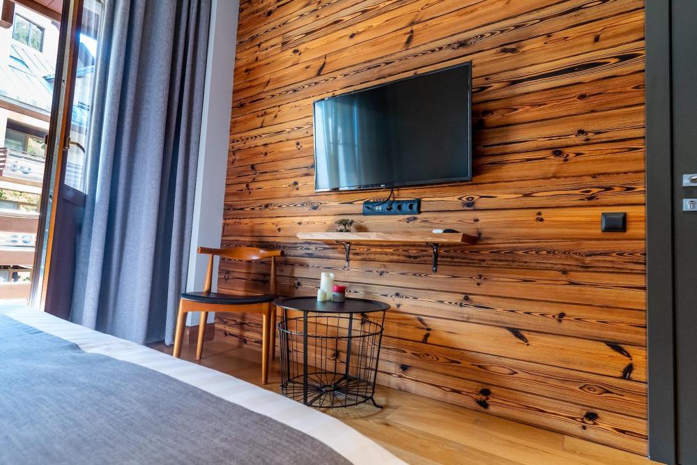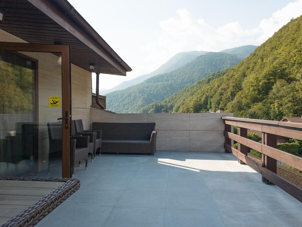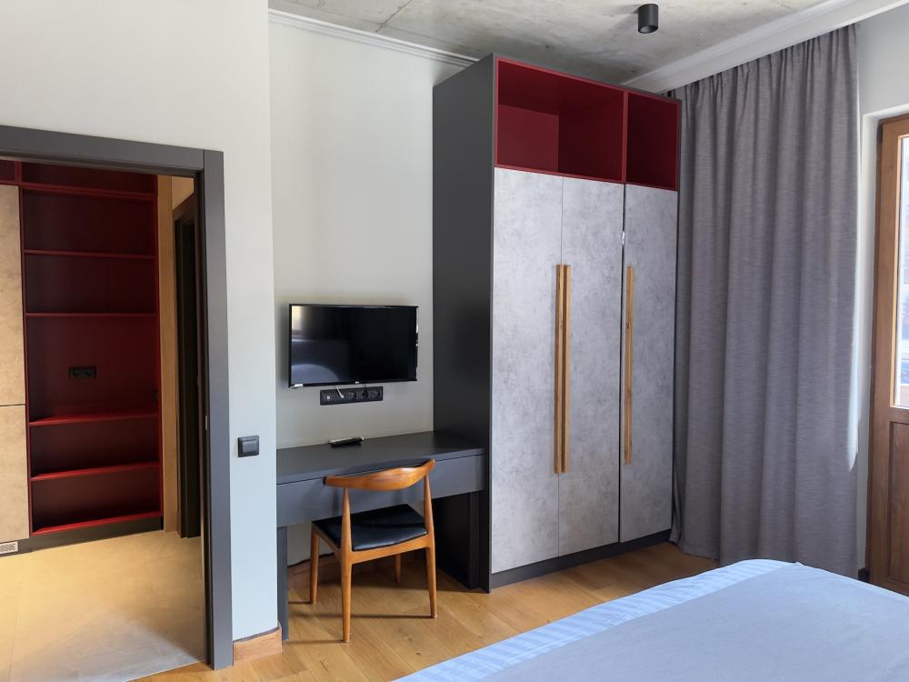 Студия с балконом площадью 27 м2 в комплексе Chalet Terrazza оснащена двуспальной кроватью (160см), имеет платяной шкаф, журнальный стол, уличную мебель, прикроватные тумбочки, кондиционер, телевизор, холидильник и чайник. Для удобства гостей предусмотрены халаты и тапочки. Посещение сауны комплекса Chalet Terrazza входит в стоимость. Комплекс Chalet Terrazza имеет бесплатную парковку. Курение возможно только на балконе.