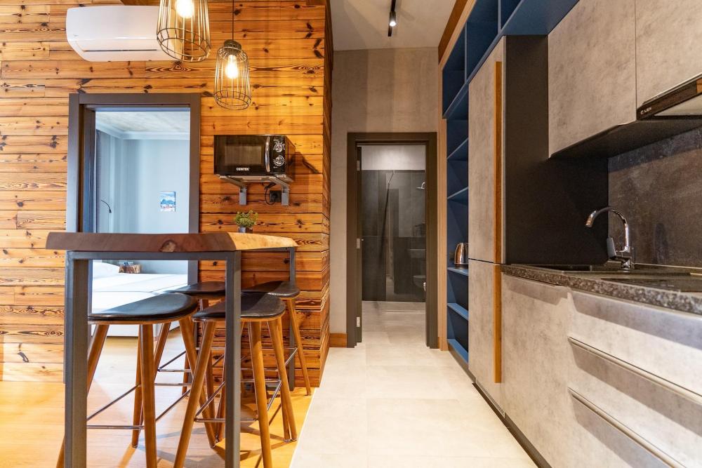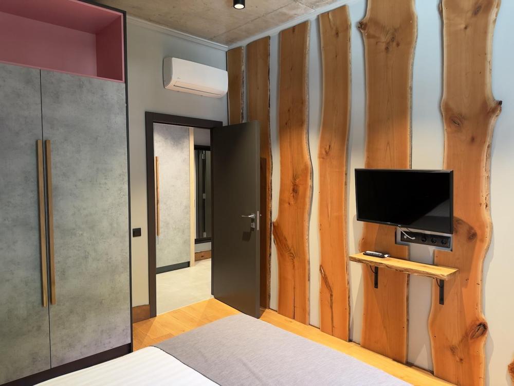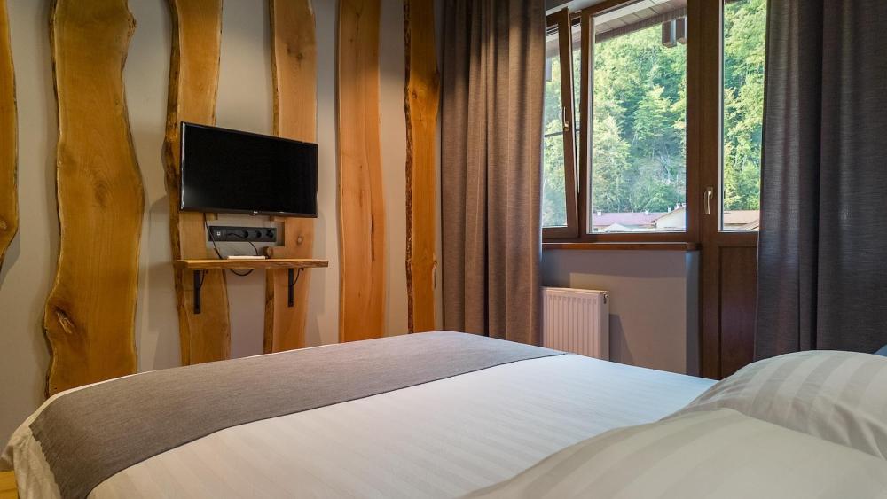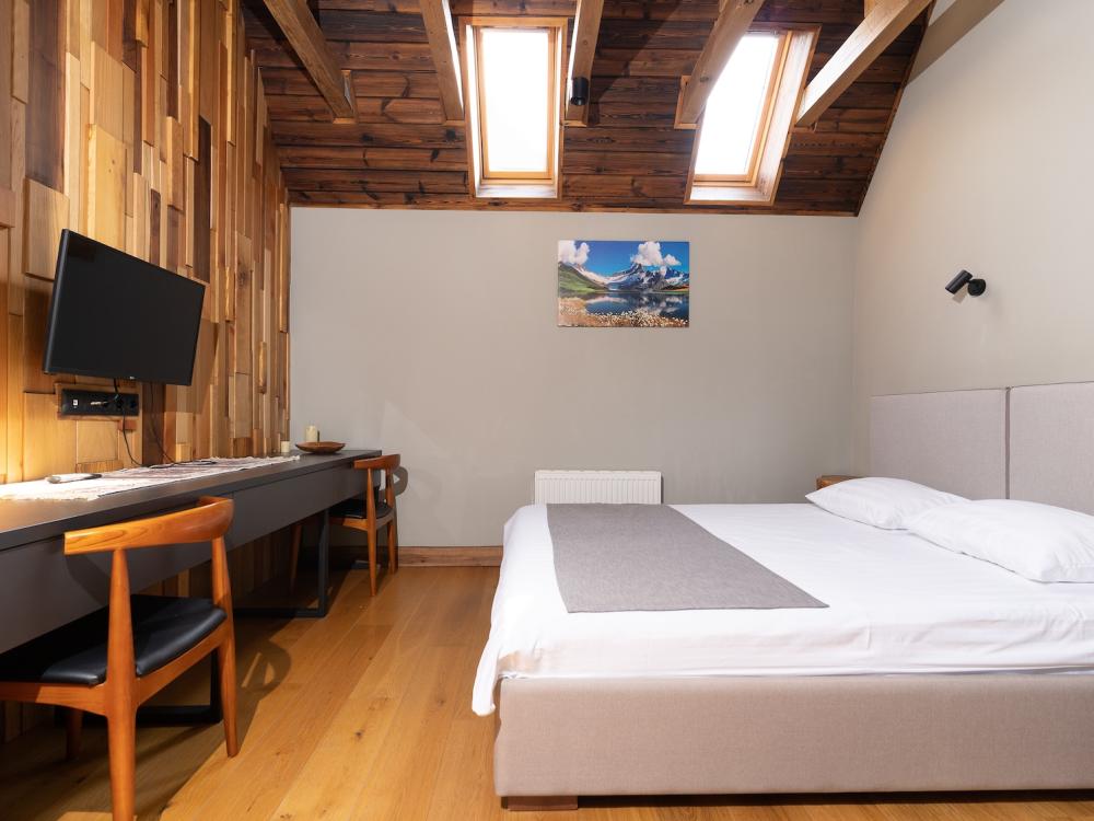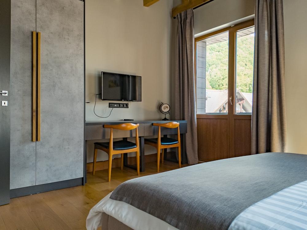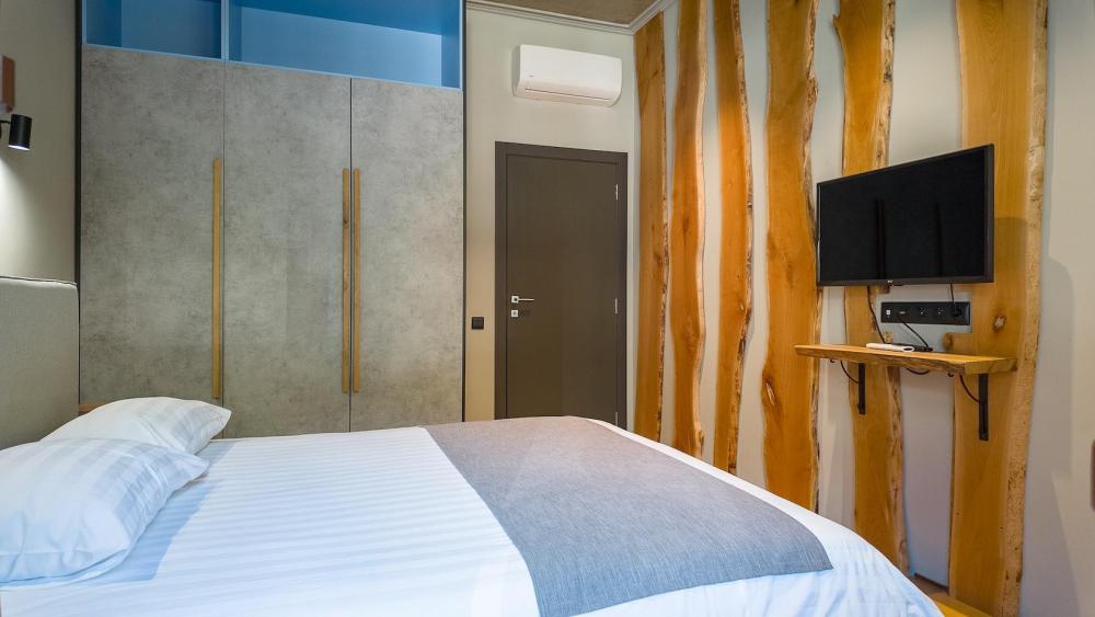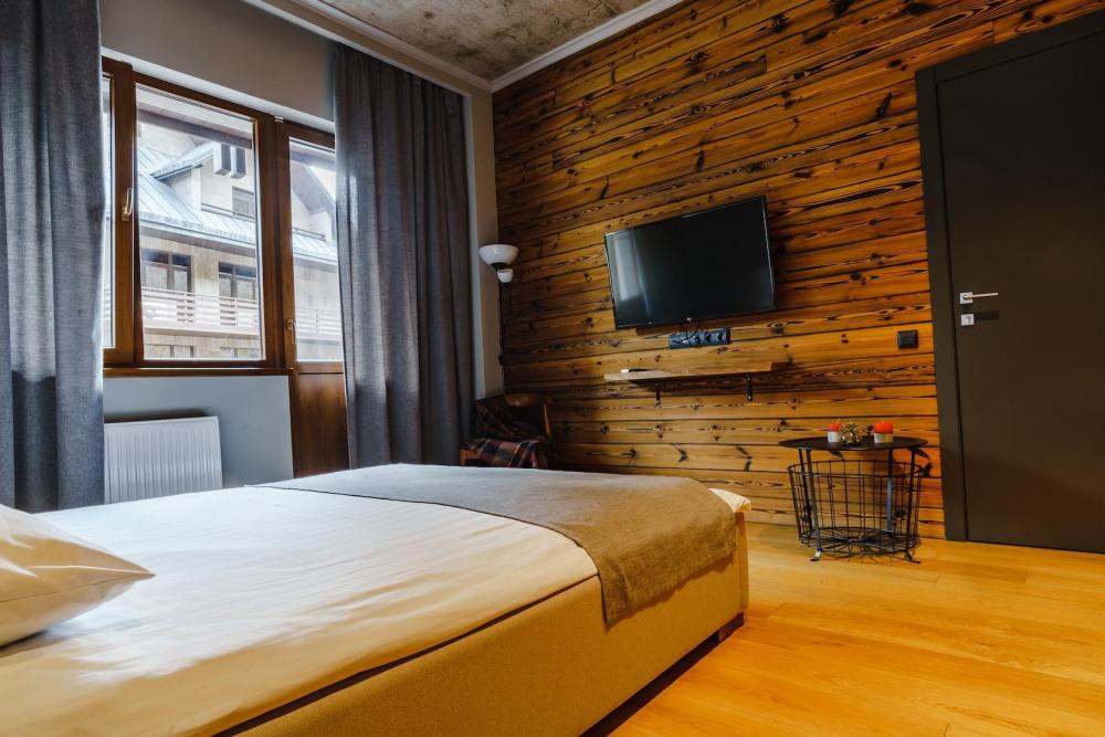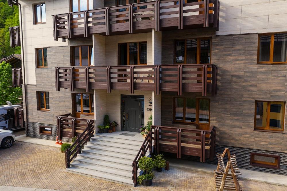 Двухкомнатные апартаменты "АПАРТАМЕНТЫ 47" площадью 47 м2 на 2 и 3 этажах комплекса Chalet Terrazza, включают кухню-гостинную, спальню и балконы. В спальне имеется двуспальная кровать (160см) , шкаф, тумбочки, телевизор и балкон. Кухня оборудована техникой и столовыми принадлежностями. В кухне-гостиной с раскладным диваном расположена обеденная зона и балкон с уличной мебелью. Для удобства гостей предусмотрены халаты и тапочки. Посещение сауны комплекса Chalet Terrazza входит в стоимость. Комплекс Chalet Terrazza имеет бесплатную парковку. 2-3 ЭТАЖ Максимальная вместимость апартамента - 4 гостей. Курение возможно только на балконах.