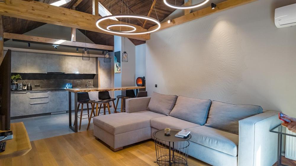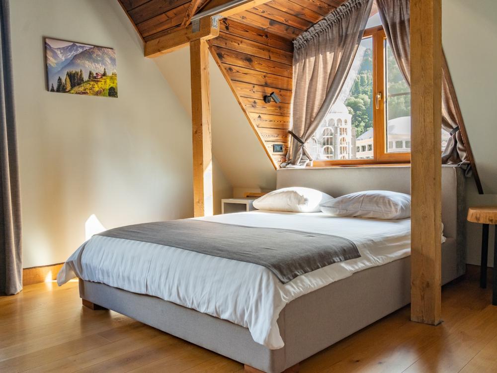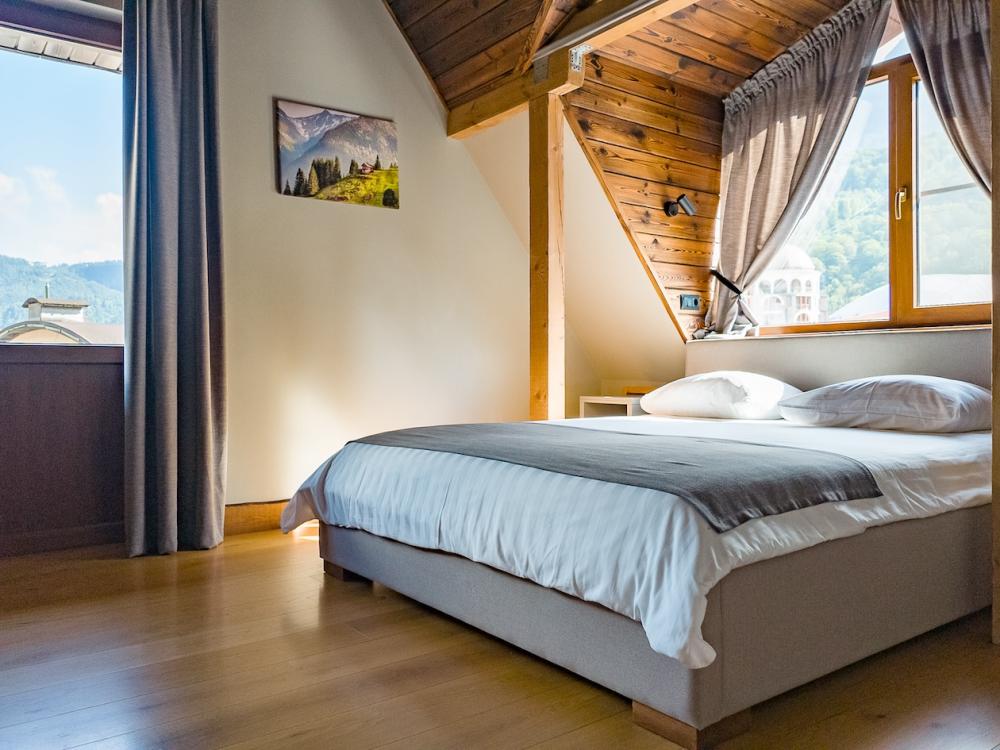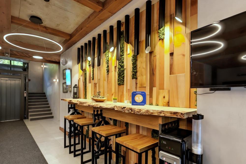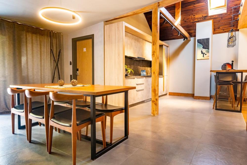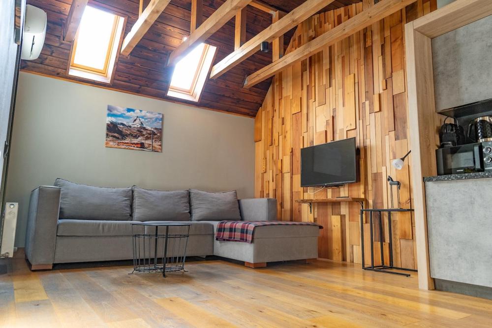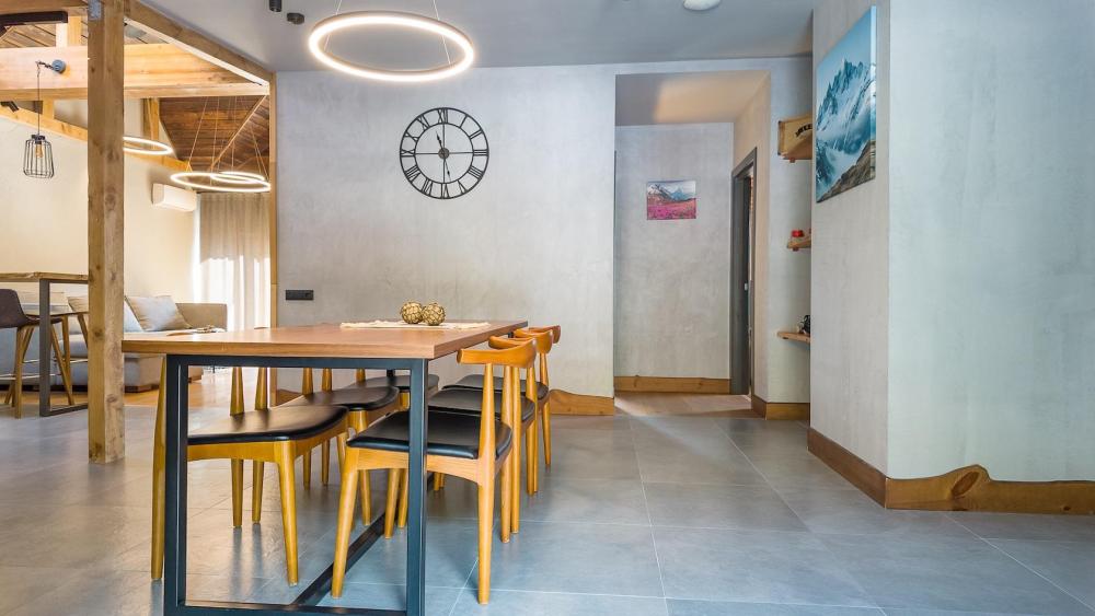 Двухкомнатные "АПАРТАМЕНТЫ 1эт" на 1 этаже комплекса Chalet Terrazza, включает кухню-гостиную, спальню и балконы. Спальня оснащена двуспальной кроватью , имеет собственный телевизор, платяной шкаф и прикроватные тумбочки. Кухня оборудована техникой и столовыми принадлежностями. В кухне-гостиной с раскладным диваном расположена обеденная зона и балкон с уличной мебелью. Для удобства гостей предусмотрены халаты и тапочки. Посещение сауны комплекса Chalet Terrazza входит в стоимость. Комплекс Chalet Terrazza имеет бесплатную парковку. --- 1 ЭТАЖ Максимальная вместимость апартамента - 4 гостей. Курение возможно только на балконах.