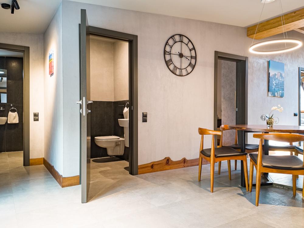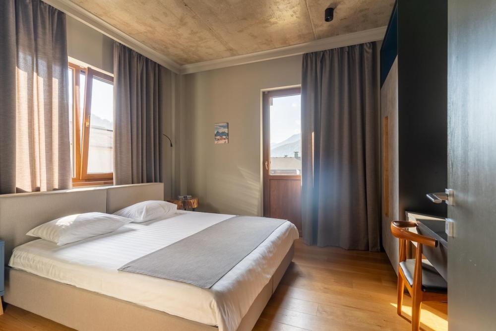 Двухкомнатные апартаменты "АПАРТАМЕНТЫ 55" площадью 55 м2 на 2 и 3 этажах комплекса Chalet Terrazza, включают кухню-гостинную, спальню и балконы. В спальне имеется двуспальная кровать (160см) , шкаф, тумбочки, туалетный стол, телевизор и балкон. Кухня оборудована техникой и столовыми принадлежностями. В кухне-гостиной с раскладным диваном расположена обеденная зона и балкон с уличной мебелью. Для удобства гостей предусмотрены халаты и тапочки. Посещение сауны комплекса Chalet Terrazza входит в стоимость. Комплекс Chalet Terrazza имеет бесплатную парковку. 2-3 ЭТАЖ Максимальная вместимость апартамента - 4 гостей. Курение возможно только на балконах.