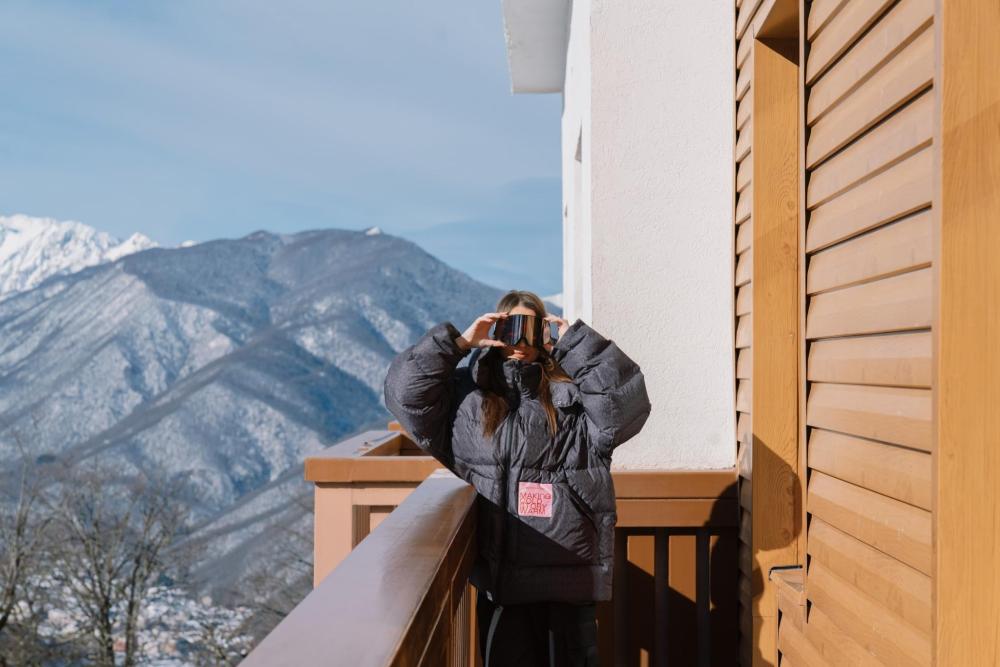 2-местный номер в блоке Extra Space с балконом и видом на горы. Санузел в блоке: душевая кабина и санузел на несколько номеров (2, 3 или 4 номера).