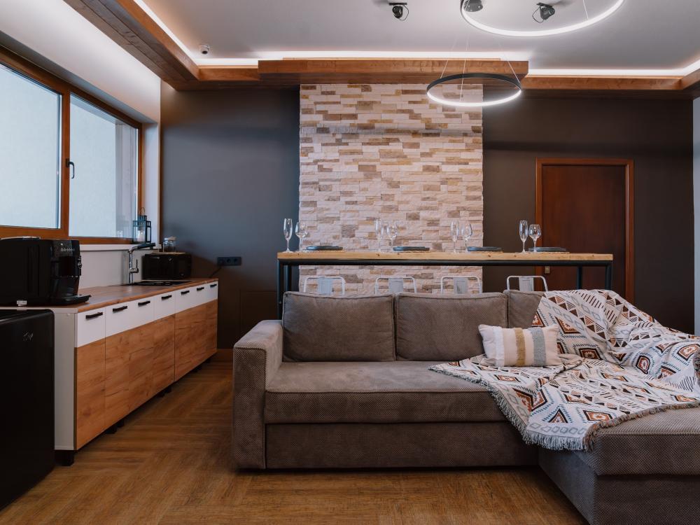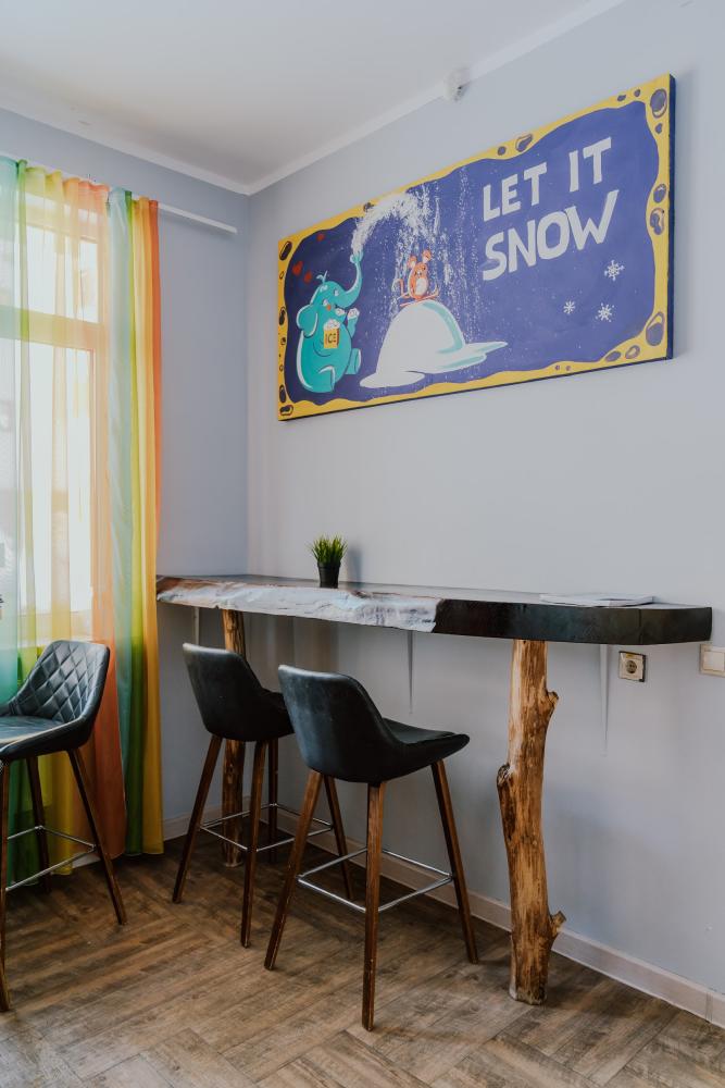 4 комнаты (3 комнаты с 2-мя кроватями, одна комната с 1 кроватью), объединенные общим холлом В номере 7 основных мест: 6 односпальных кроватей шириной 90 см + односпальная кровать шириной 90 см В каждой комнате: Прикроватные тумбочки, стол, стул, шкаф Стаканы для воды 2 Совмещенных санузла (душ + туалет) на 4 номера: Комплект полотенец для каждого гостя Шампунь и гель для душа в дозаторе, мыло Туалетная бумага Фен