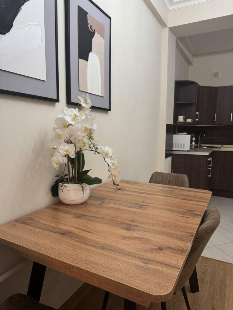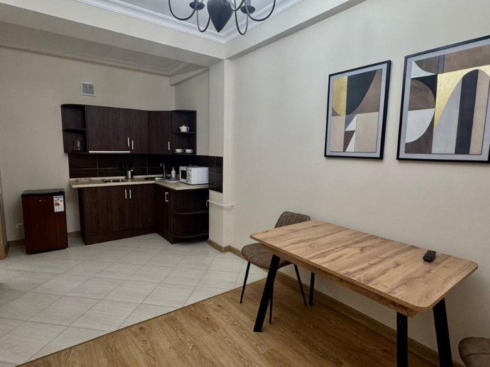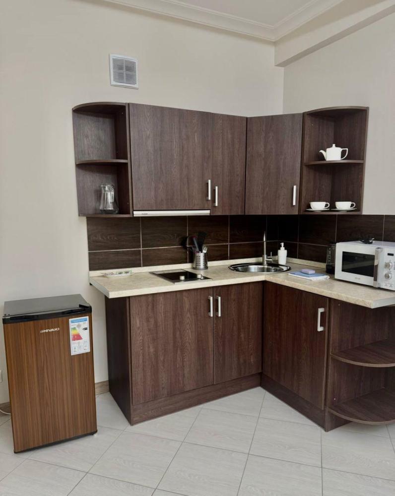 Комфортабельные номера идеально подходят для людей приехавших на долгий срок с деловым визитом или семейной пары приехавшей отдохнуть. Номер оснащен двуспальной кроватью, кухонной зоной, всей необходимой мебелью для уютного отдыха.