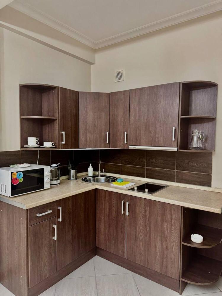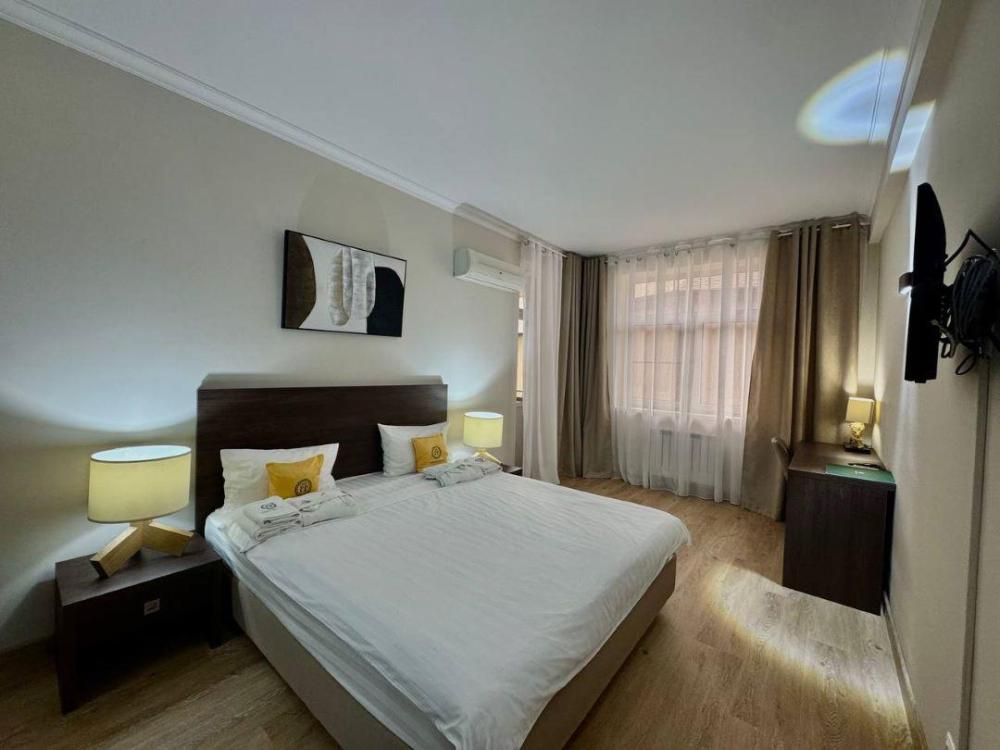 Апартаменты улучшенные 50 кв.м. с балконом. Номер состоит из прихожей, двух комнат и санузла. Одна комната из которых спальня: с одной двуспальной кроватью. Вторая комната - это кухня, оснащенная мебелью, электроплитой и необходимым комплектом посуды.