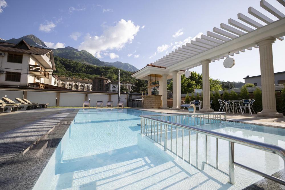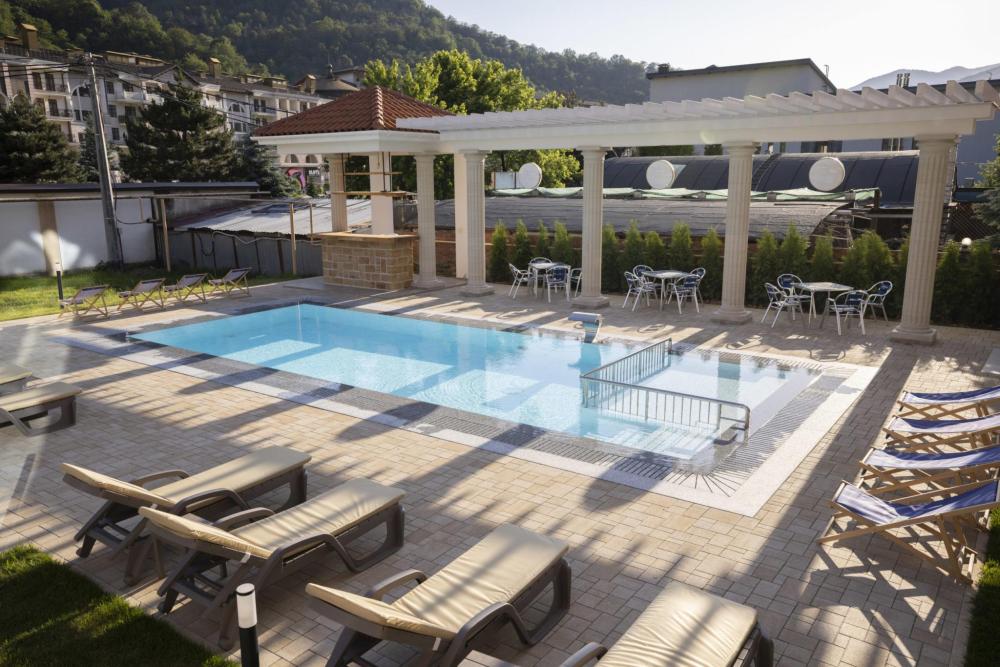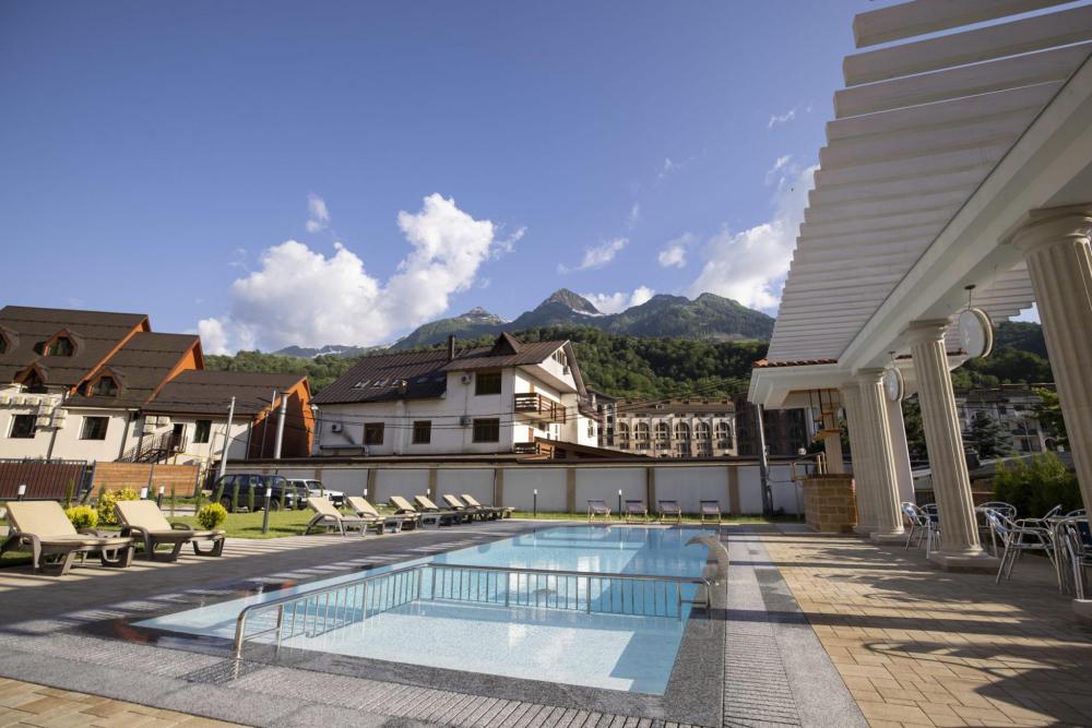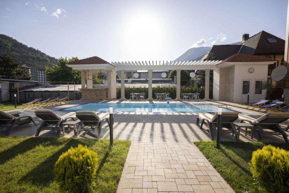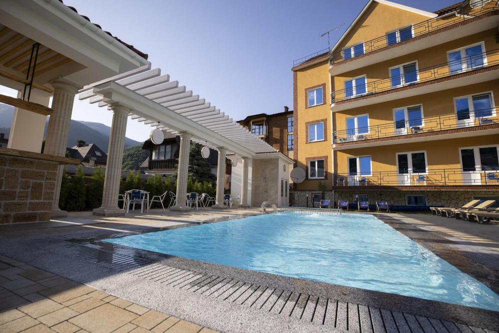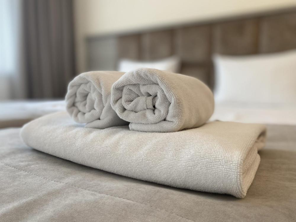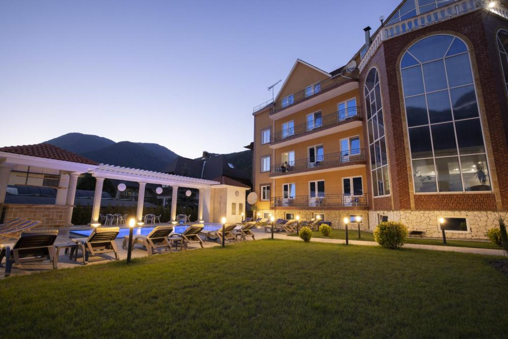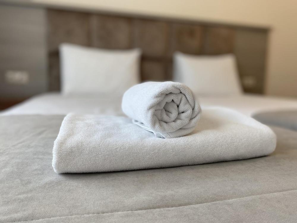 Двухкомнатный номер стандарт семейный общей площадью 50 кв.м с просторными спальнями с балконом и видом на горы, для размещения до 4-х гостей. В номере: двуспальная кровать и две односпальные с ортопедическими матрасами, ванная комната туалет с биде, комплект полотенец, набор принадлежностей для ванных комнат, фен, чайник, холодильник, обеденный стол, телевизор.