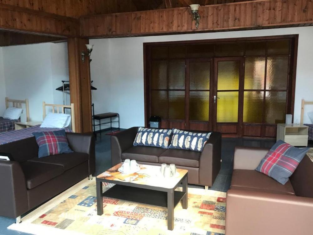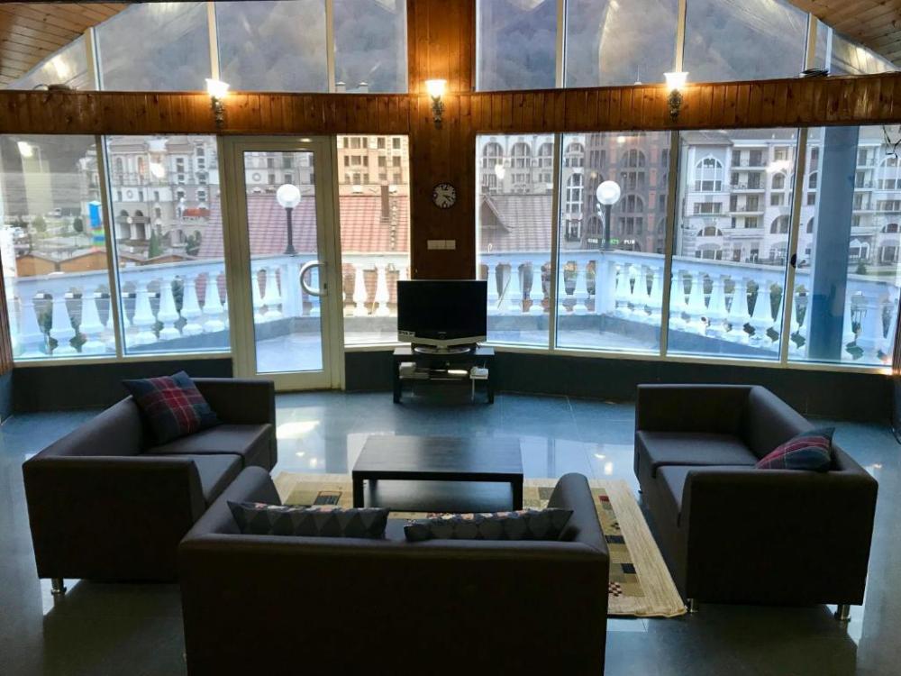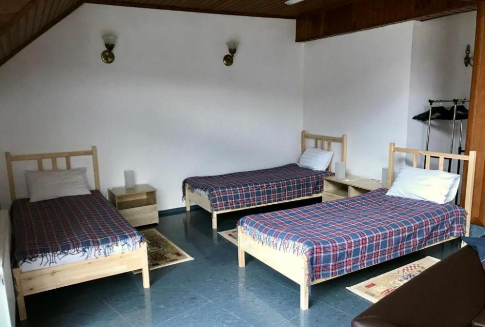 Просторный 7-ми местный стандарт с панорамным видом на горы, балконом. Общая площадь номера составляет 90 кв.м. В номере: 7 односпальных кроватей, прикроватные тумбочки и светильники, общий шкаф для одежды, зона для отдыха, телевизор, холодильник, чайник, микроволновка, набор полотенец, набор принадлежностей для ванных комнат, 2 санузла, душевая кабина.