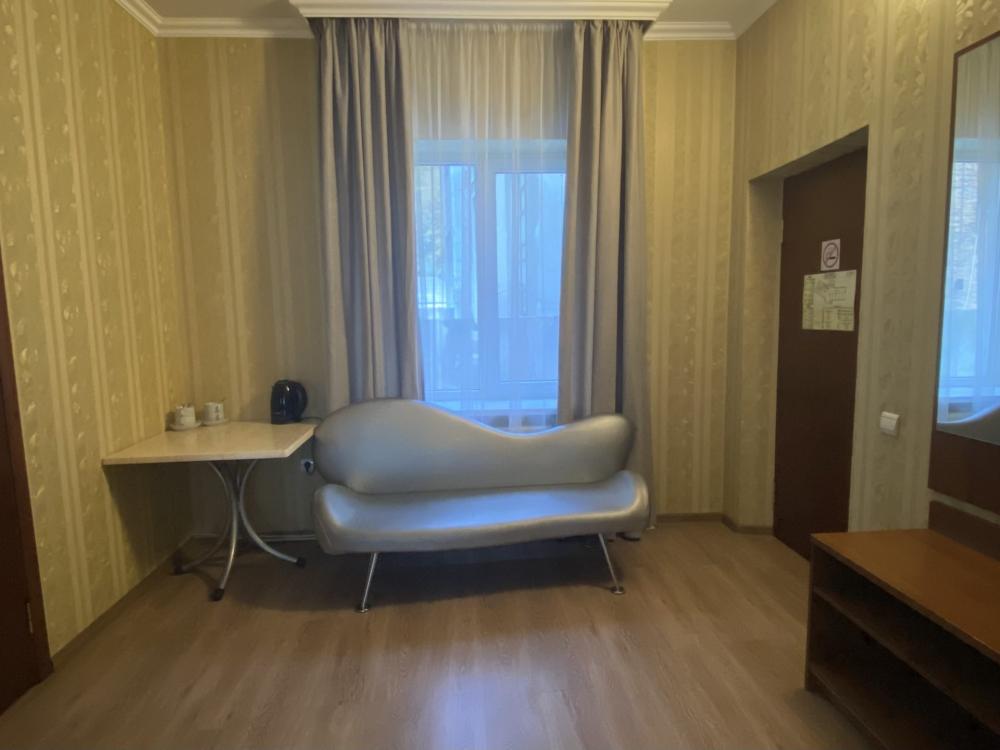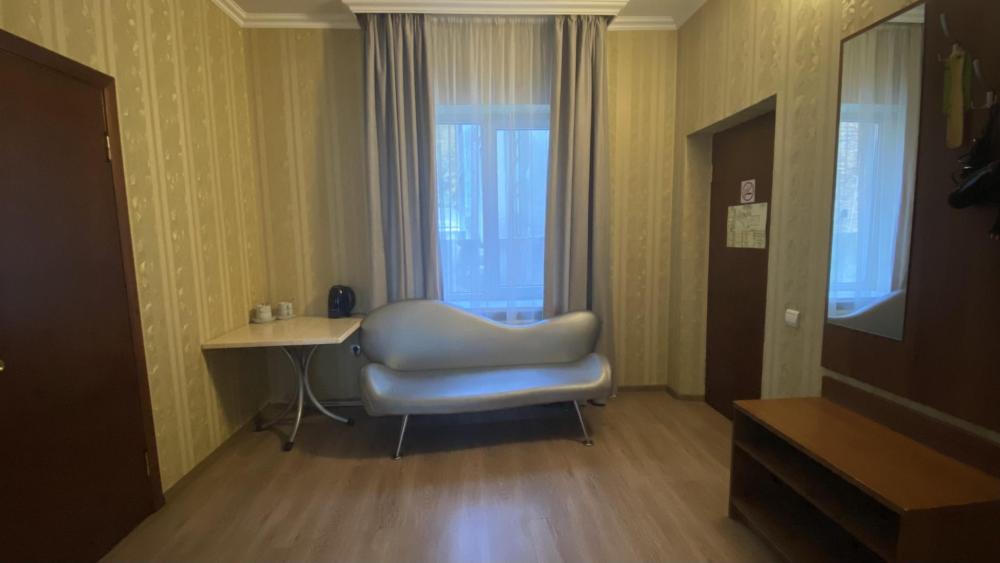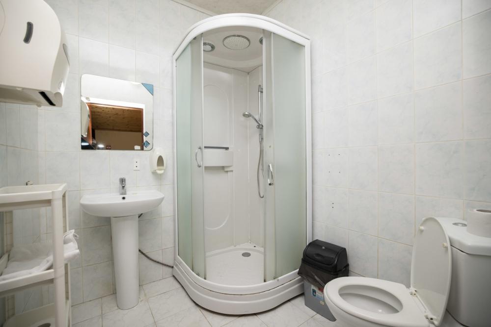 Номер стандарт эконом площадью 20 кв.м. для размещения до 2-х гостей, находится на 4 этаже и имеет свою личную ванную комнату рядом с номером. Оснащение номера: двухспальная кровать или две односпальные кровати, комплект полотенец, набор принадлежностей для ванных комнат, фен, чайник, холодильник, шкаф платяной, набор посуды, телевизор.