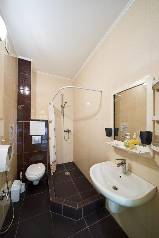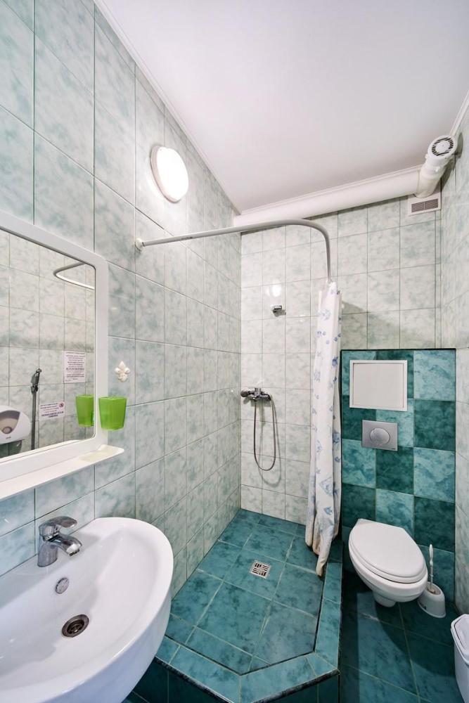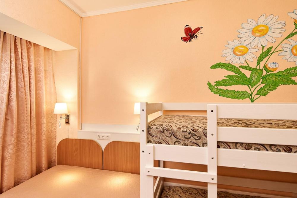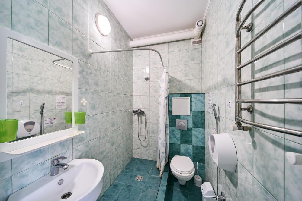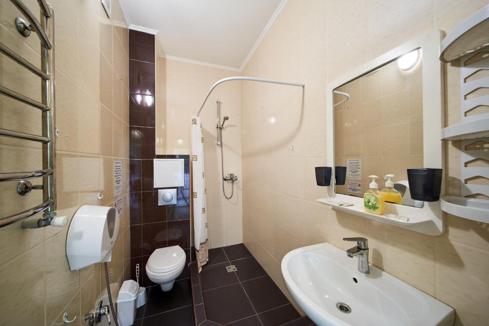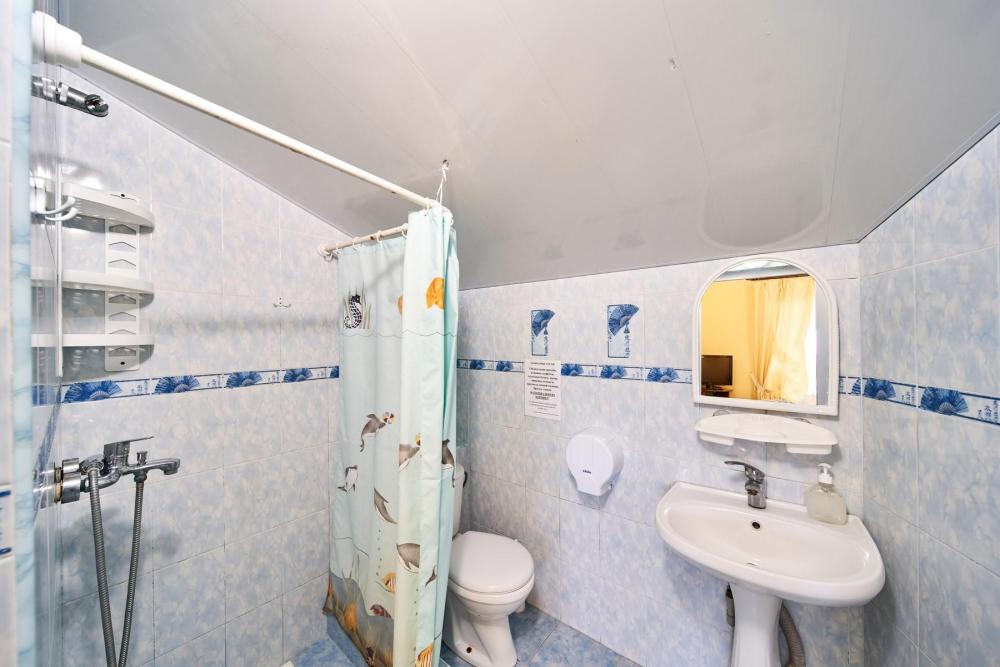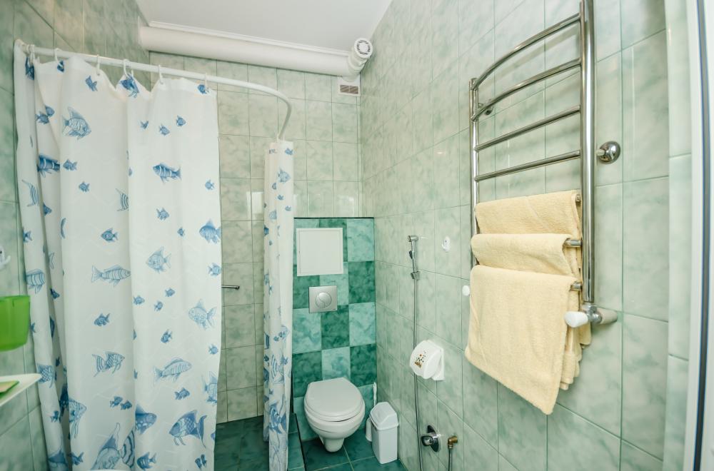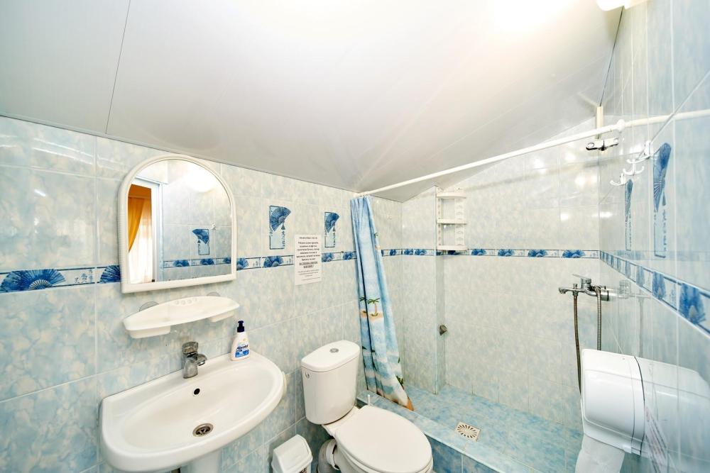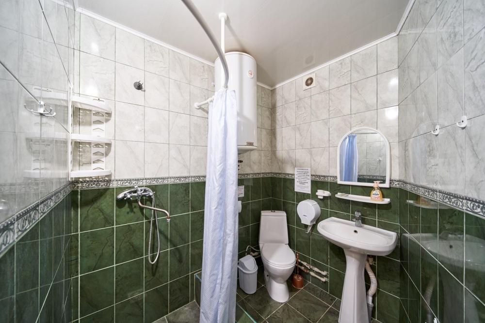 Комфорт - это двухкомнатный номер, который находится на 2 этаже. Вход в номер идет через небольшой коридор, из которого вход в первую комнату и санузел. В коридоре находится шкаф, холодильник и микроволновая печь. Санузел имеет гигиенический душ и обычный душ. В первой комнате большая двуспальная кровать, прикроватные тумбочки, светильники, шкаф, телевизор с большим ЖК экраном, кондиционер. А также кухонная зона: кухонная стенка с вытяжкой, мультиварка, двухконфорочная электроплита, электрочайник, стиральная машина, обеденный стол, стулья. Есть вся необходимая посуда для приготовления пищи. Во второй комнате номера комфорт находится раскладной диванчик, рабочий стол с зеркалом для дам, стул.