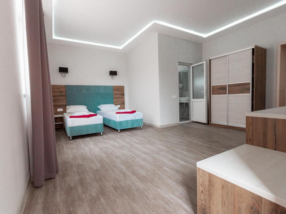 Кровать: 2 полуторные или 1 двуспальная, раскладной двуспальный диван Человек в номере: 2 + доп. место