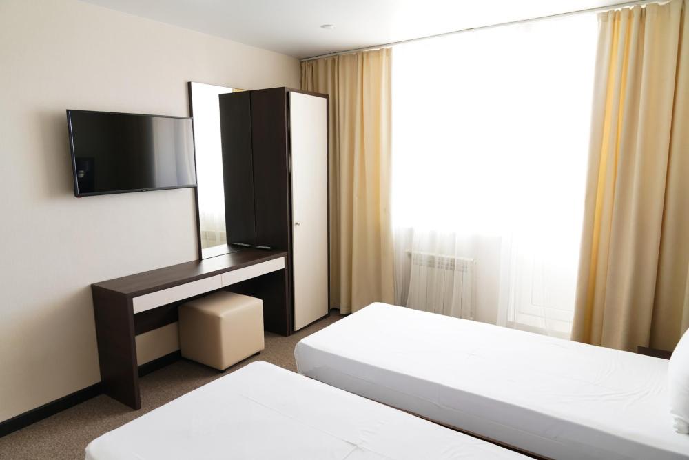 Номер оборудован кондиционером, телевизором, холодильником. В номерах есть балконы с видом на бассейн. Удобства номера: Wi-fi, холодильник, телевизор, кондиционер, душ. Кровати: 2 односпальных