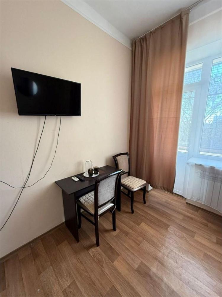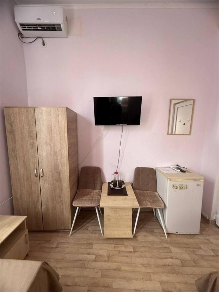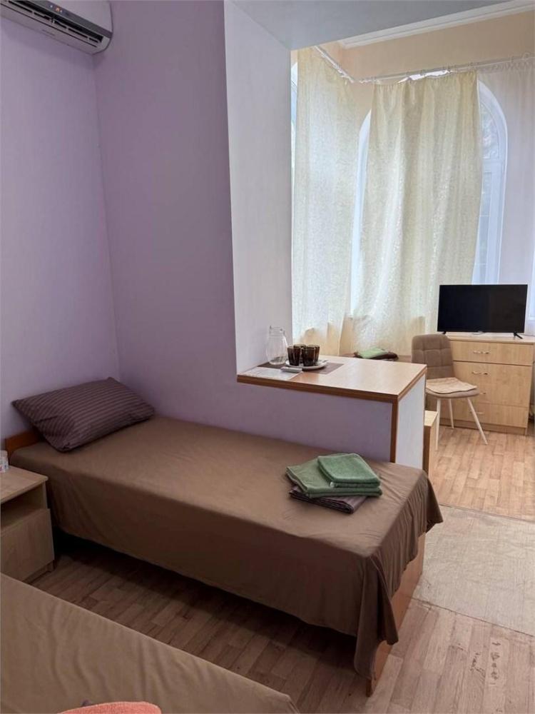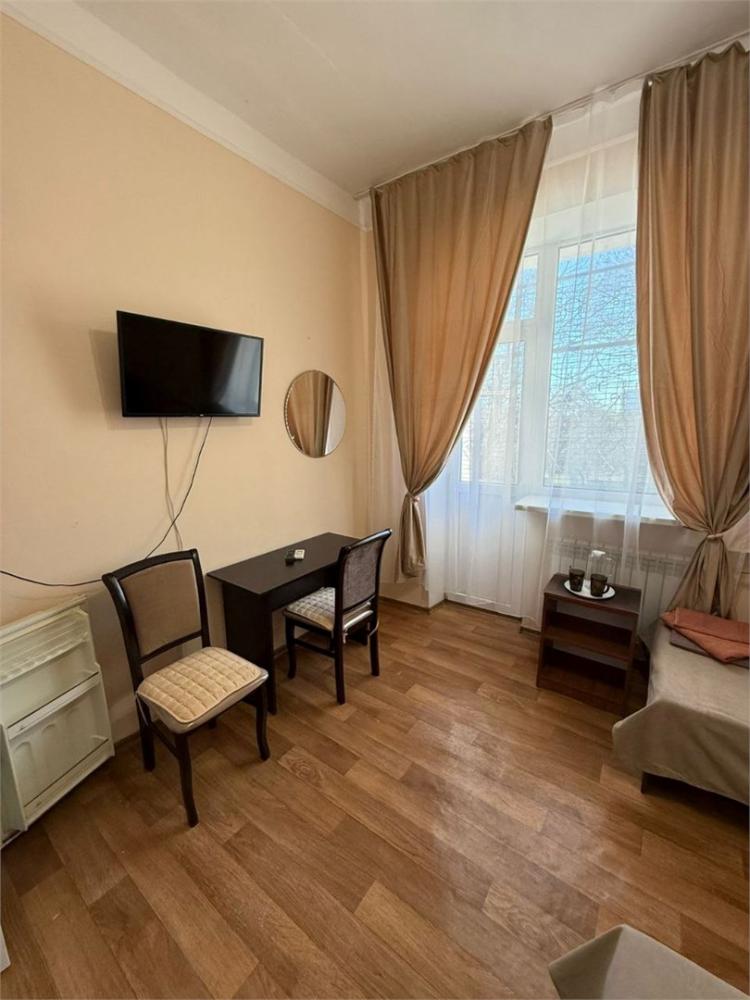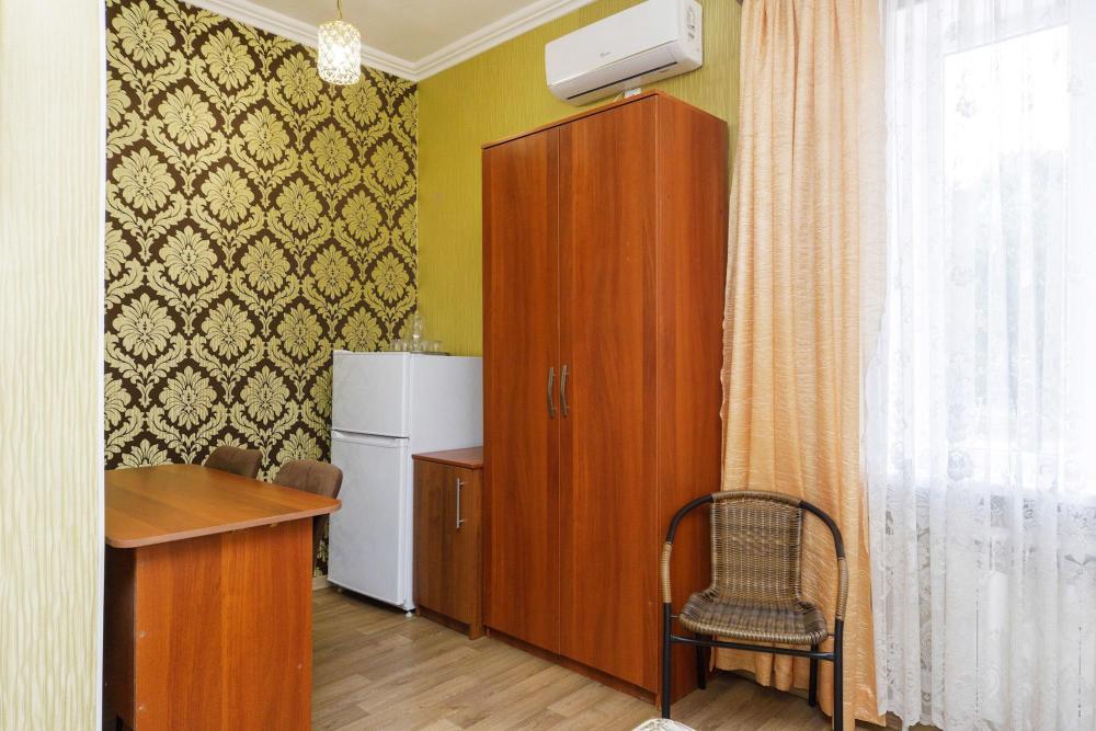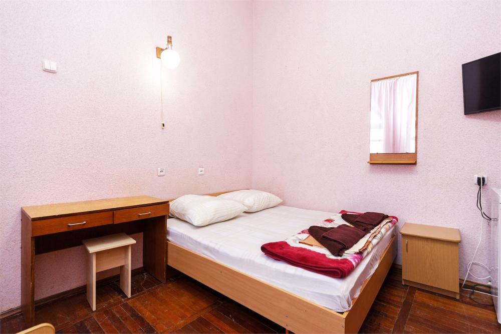 Номер одноместный однокомнатный без удобств в корпусе номер 8 (замок). Удобства на блок (на 2 номера) в коридоре между номерами (душ, туалет, умывальник). Так же в холле корпуса-замка есть гладильная комната. В номере есть вся необходимая гостиничная мебель, телевизор с плоским экраном и кондиционер. На всей территории корпуса работает бесплатный WI-FI.