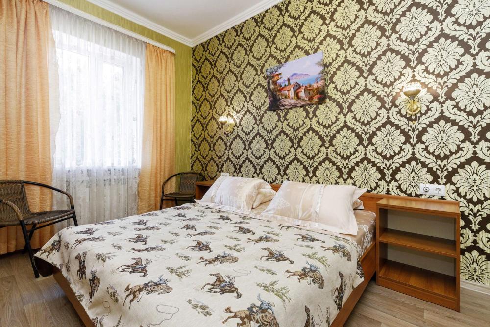 Номера оборудованы:1 двуспальной кроватью, кондиционером, телевизором, холодильником, комплектом гостиничной мебели; Санузел: туалет, умывальник, душ; В санузле имеются: мыло, туалетная бумага;