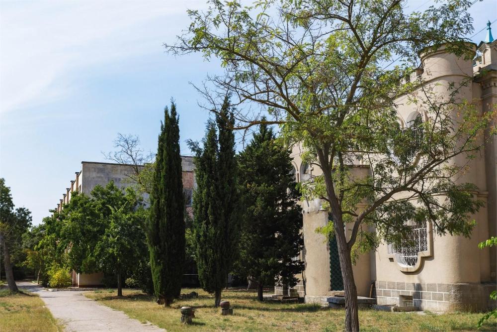 Номер двухместный однокомнатный без удобств в корпусе номер 8 (замок). Удобства на блок (на 2 номера) в коридоре между номерами (душ,туалет,умывальник). Так же в холле корпуса-замка есть гладильная комната. В номере есть вся необходимая гостиничная мебель, телевизор с плоским экраном и кондиционер. На всей территории корпуса работает бесплатный WI-FI.