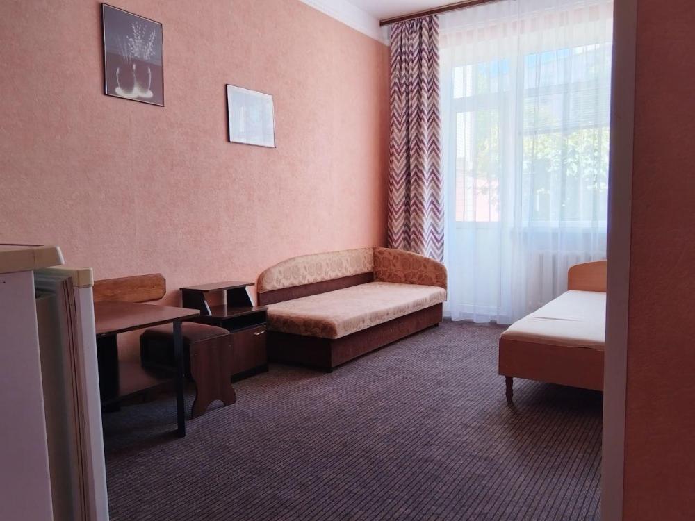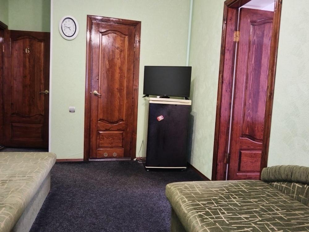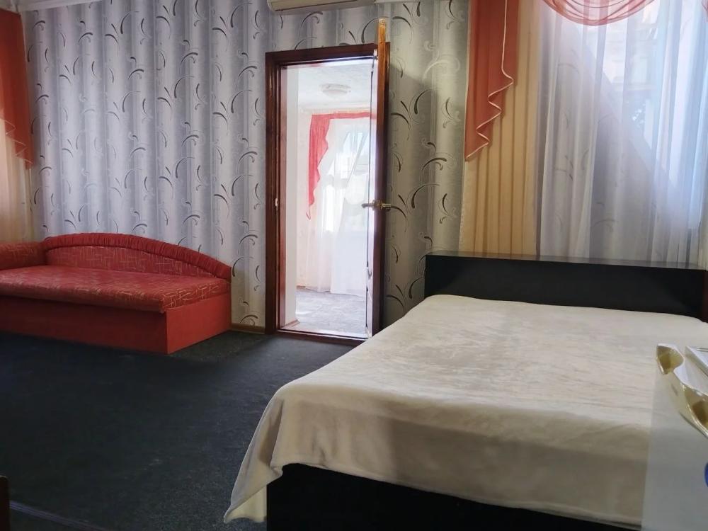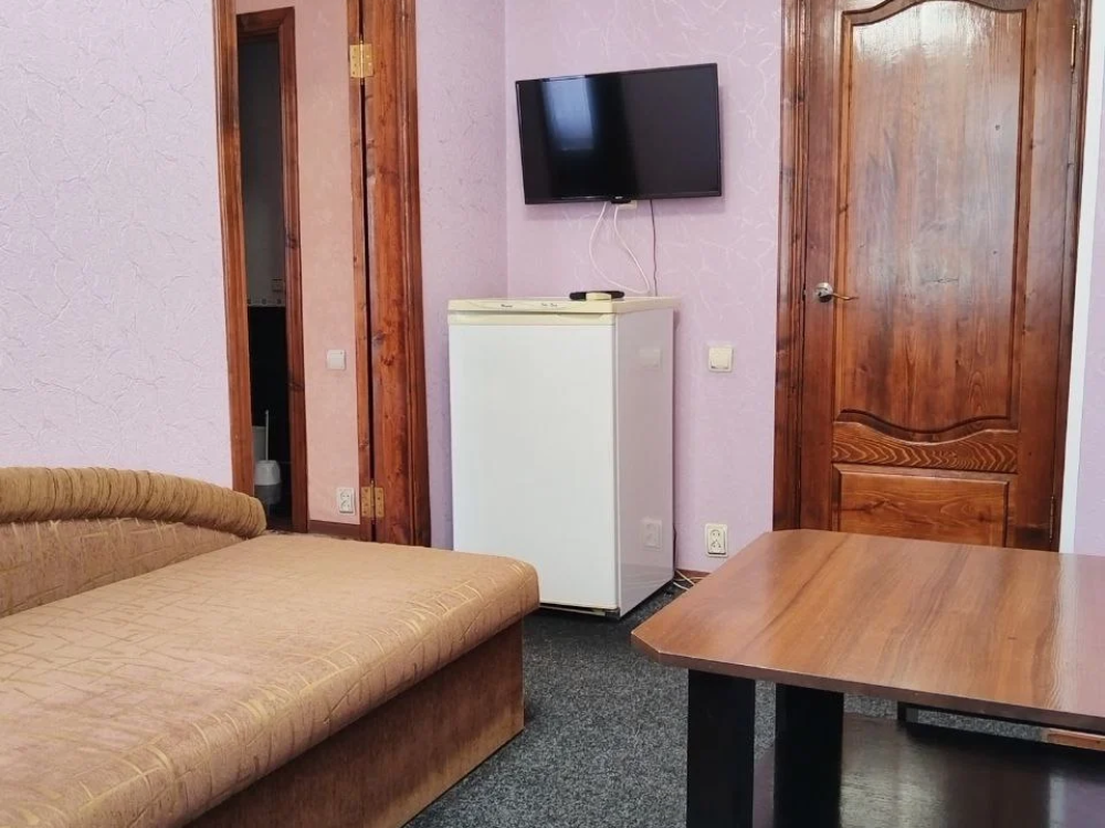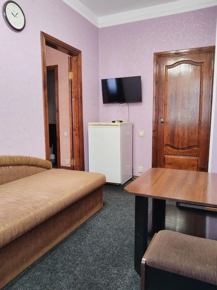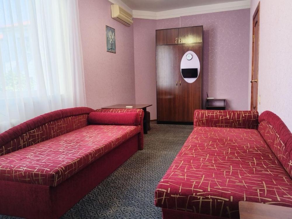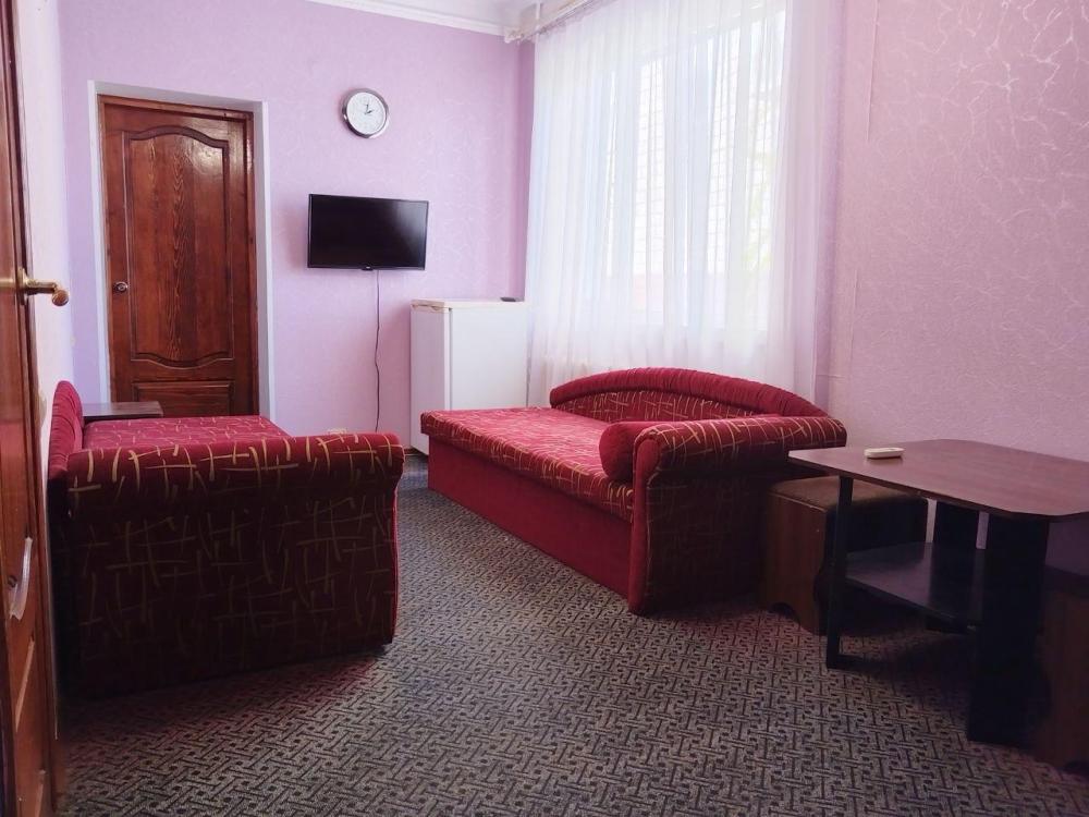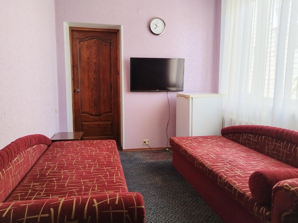 Комната для семьи или компании до 4х человек. В комнате : двуспальная кровать и гостиная с дополнительными одноместными кроватями, кондиционер, телевизор, холодильник, сейф, быстрый Wi-Fi. Санузел с душем.
