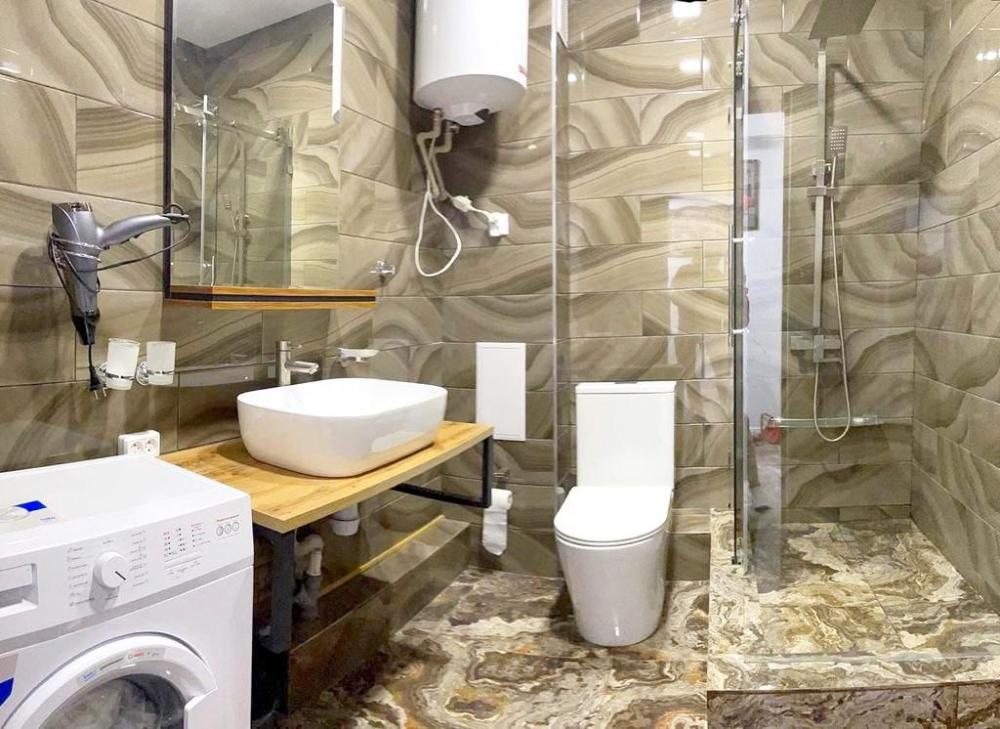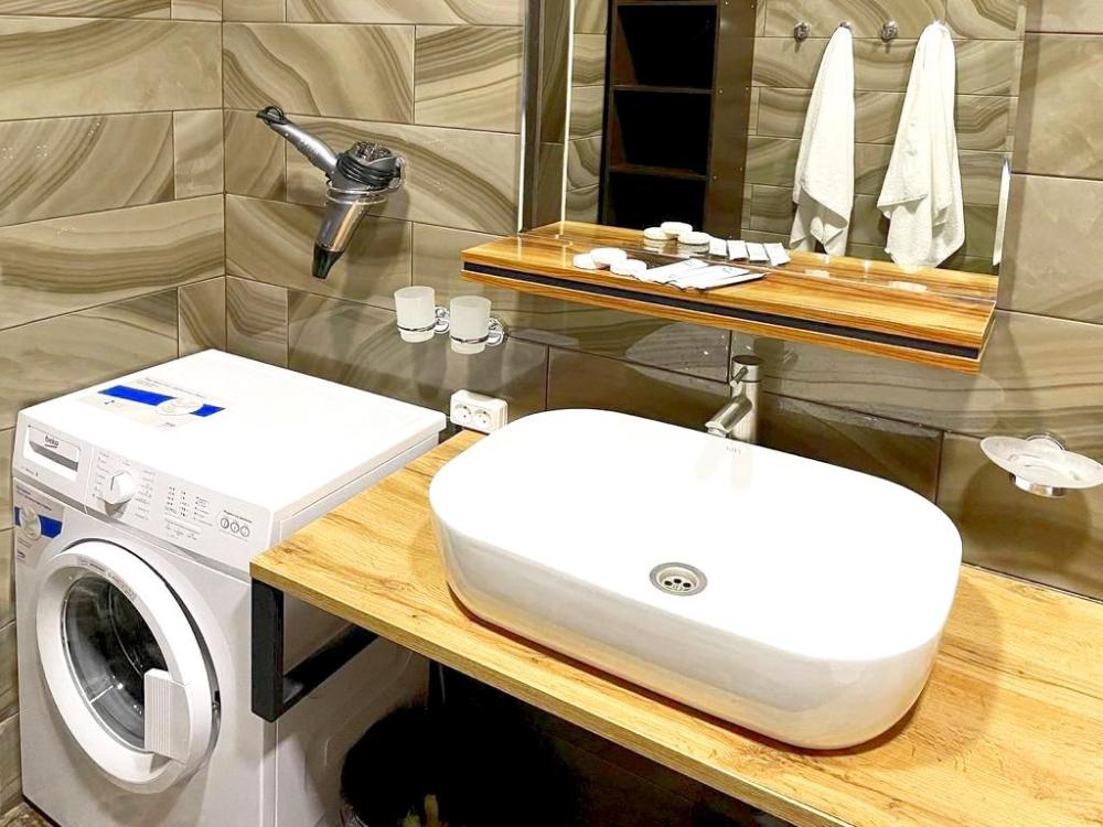 Апартаменты двухкомнатные — (вместимость до 5 человек) — в номере своя кухня (варочная панель, холодильник, чайник, посуда) , санузел со стиральной машиной, кабельное тв, сушилка для белья, фен, кондиционер.