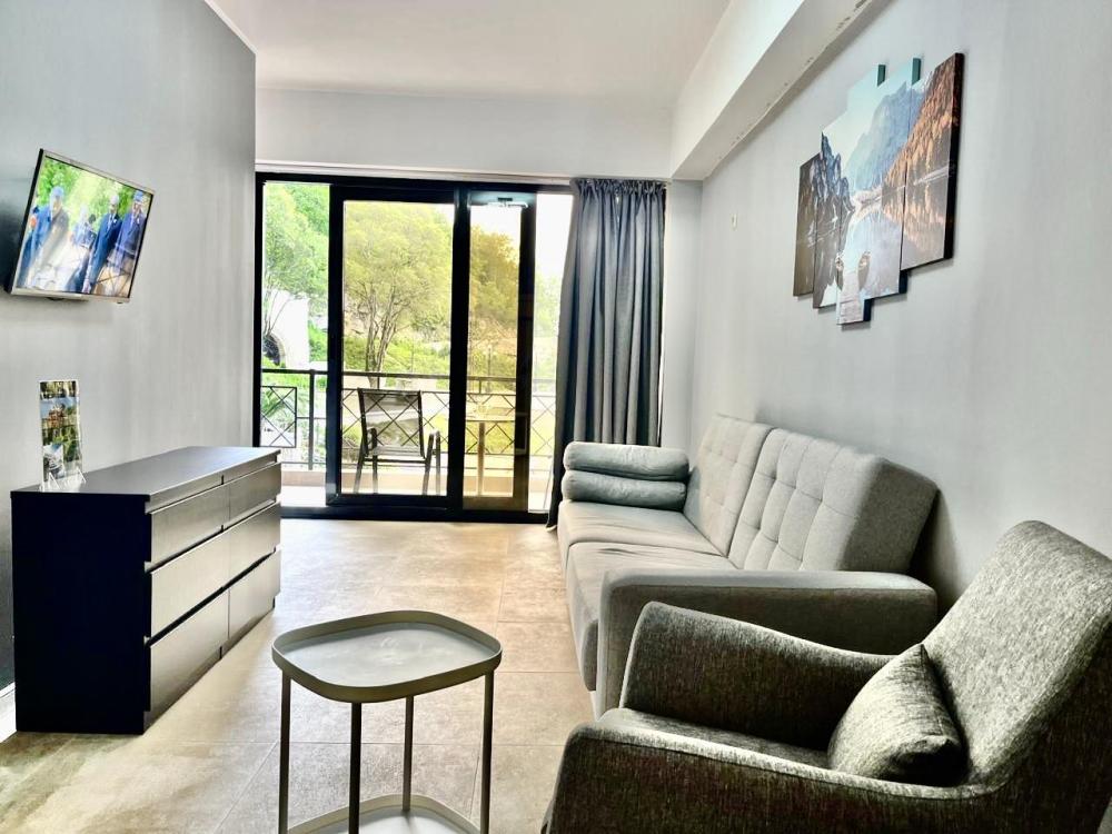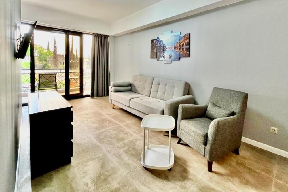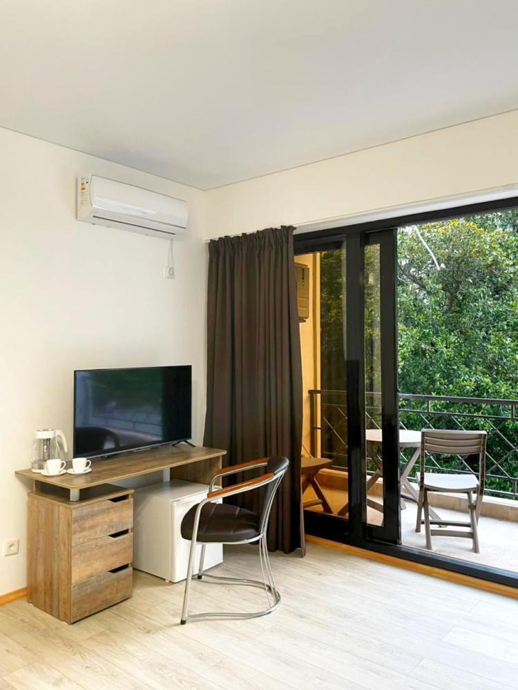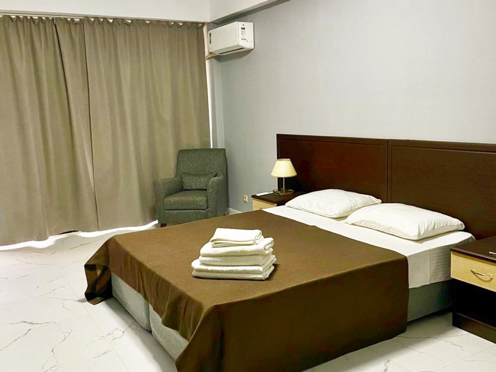 Апартаменты-студия — (вместимость до 5 человек) — в номере своя кухня (варочная панель, холодильник, чайник, посуда), кабельное тв, сушилка для белья, фен, кондиционер.