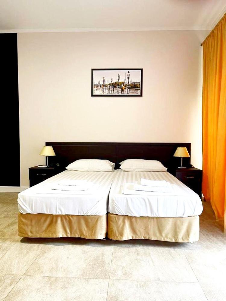 Стандартные номера большой площади— вместимость до 5 человек (двухспальная кровать и двухспальный диван+ возможно доп. место) — в номере душ, санузел, фен, кабельное ТВ, холодильник, кондиционер, сушилка для белья, балкон, панорамные окна.