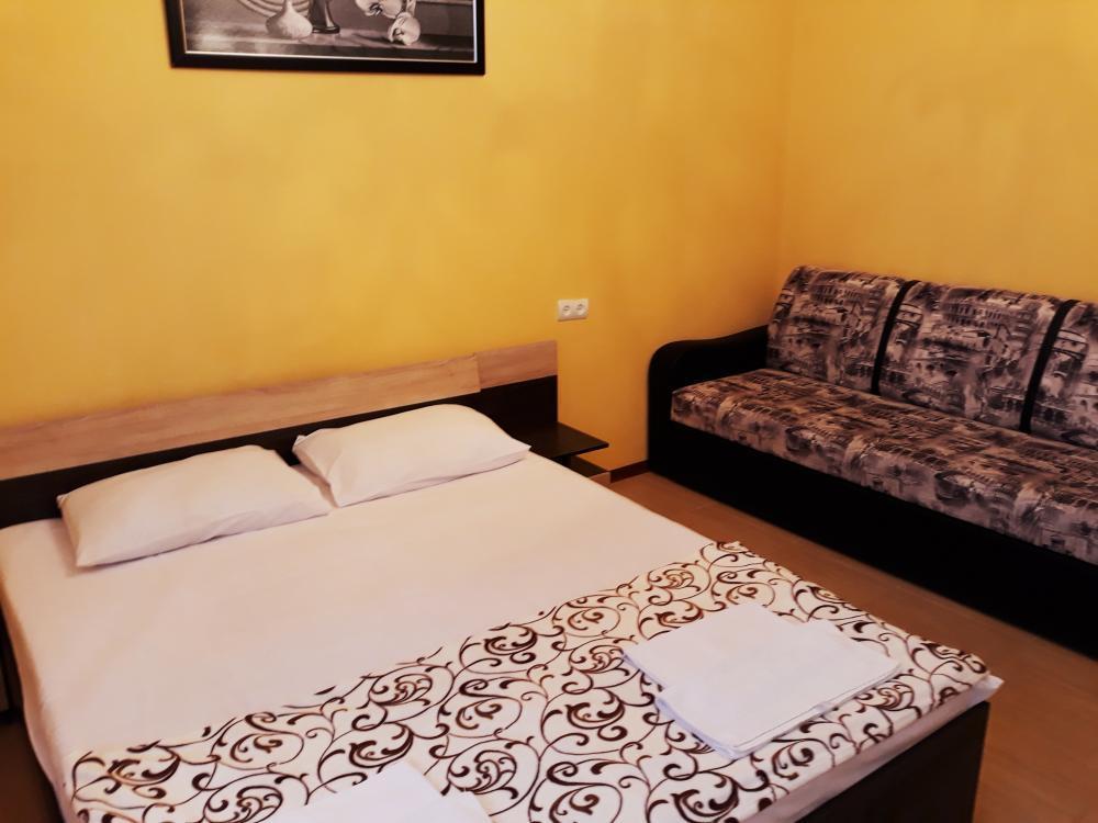 Стандартный номер с тремя односпальными кроватями с видом во двор. В номере есть мини-холодильник, гардероб, плазменный телевизор, кондиционер, ванная комната: душ, туалет, фен, туалетные принадлежности.
