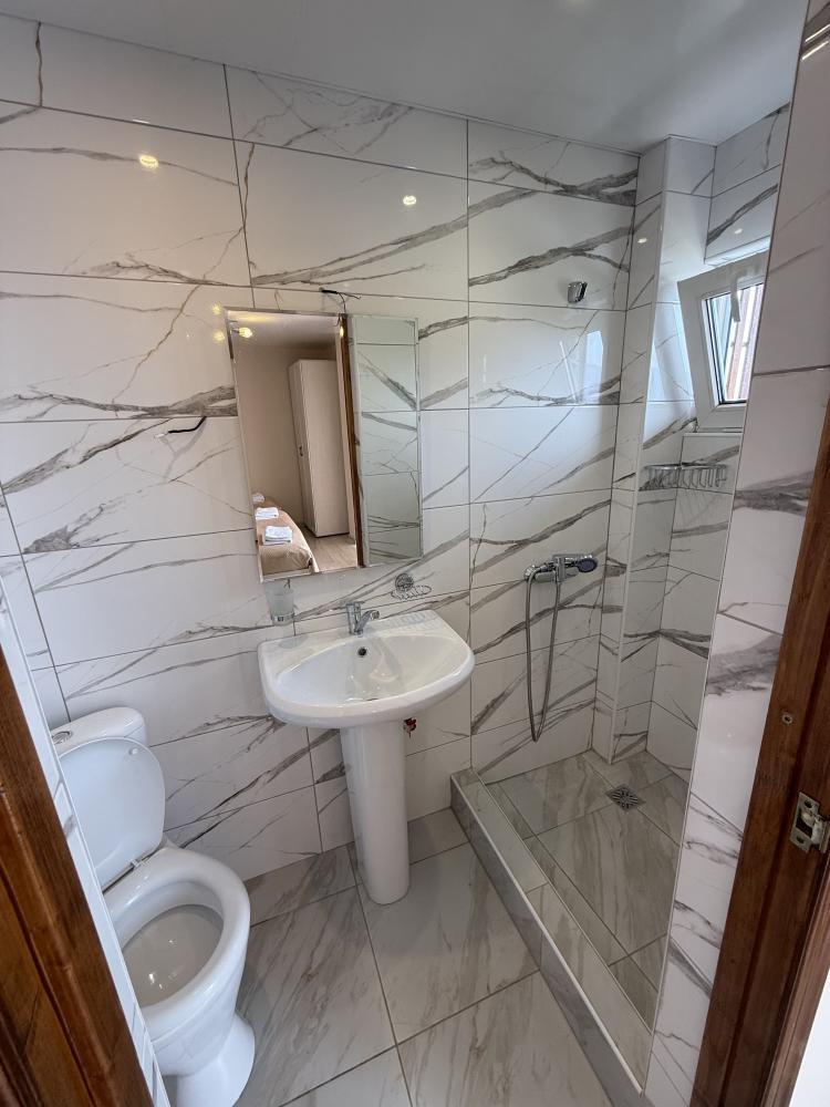 В номере одна двуспальная кровать и дом место. Вид с балкона на море и горы.