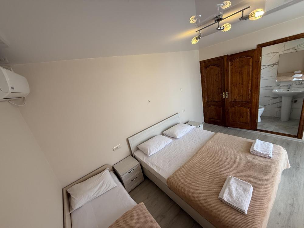 Стандартный трехместный номер с балконом. В номере двуспальная кровать и одна односпальная кондиционер, шкаф, собственная ванная комната. Выход на балкон с видом на море.