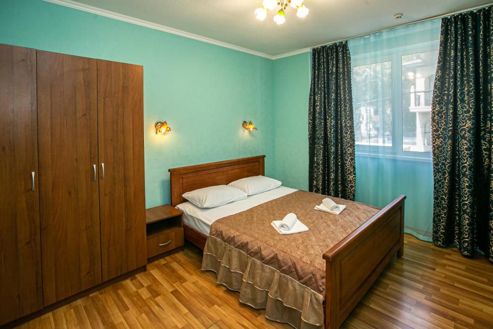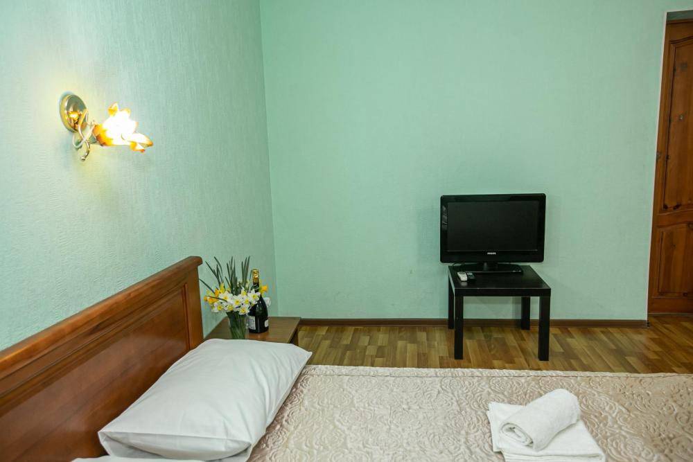 Стандартный двухместный номер, расположен на 2-3 этаже. Балкон с видом на море. Кровать двуспальная, телевизор,холодильник,кондиционер, санузел в номере, душевая,. Общая площадь номера 22кв.м