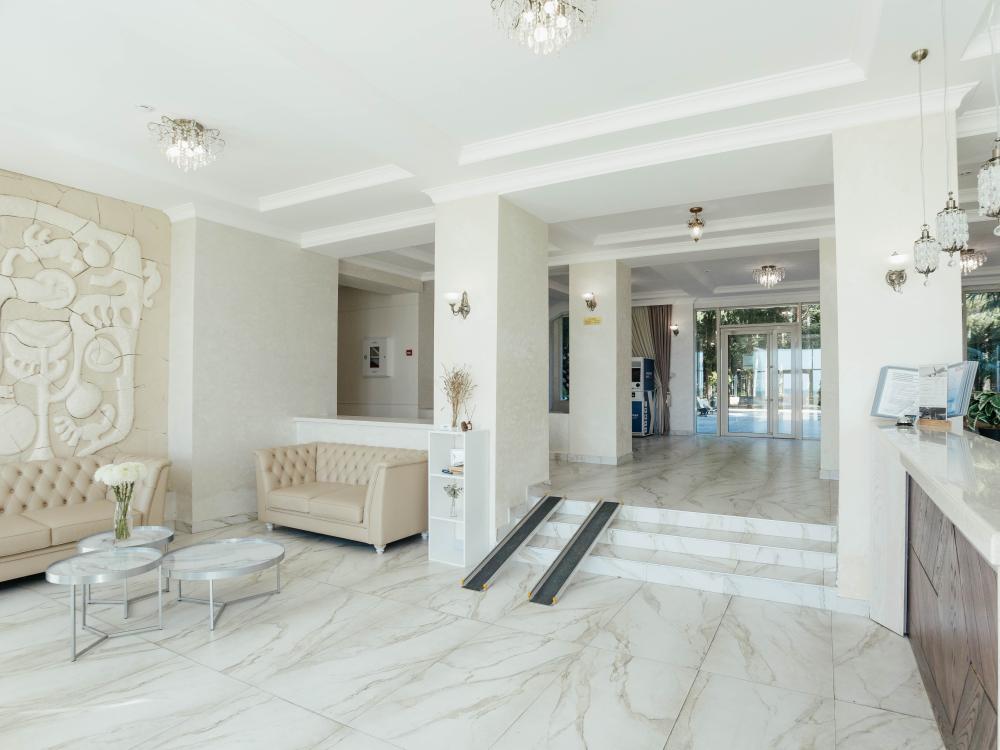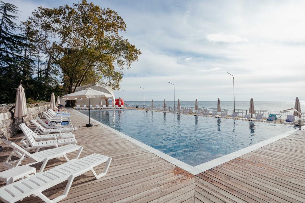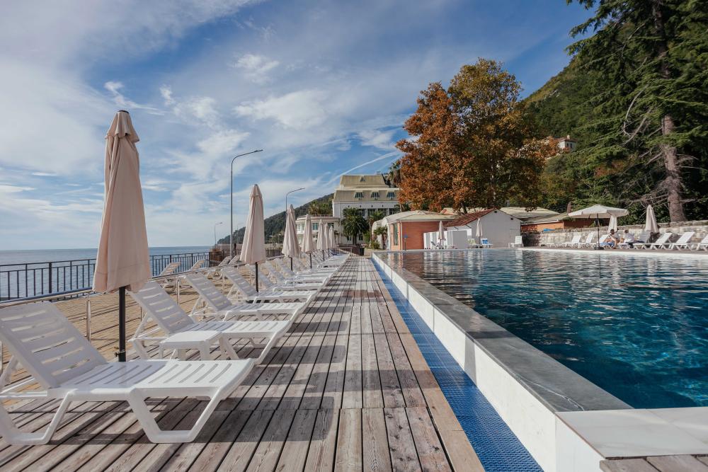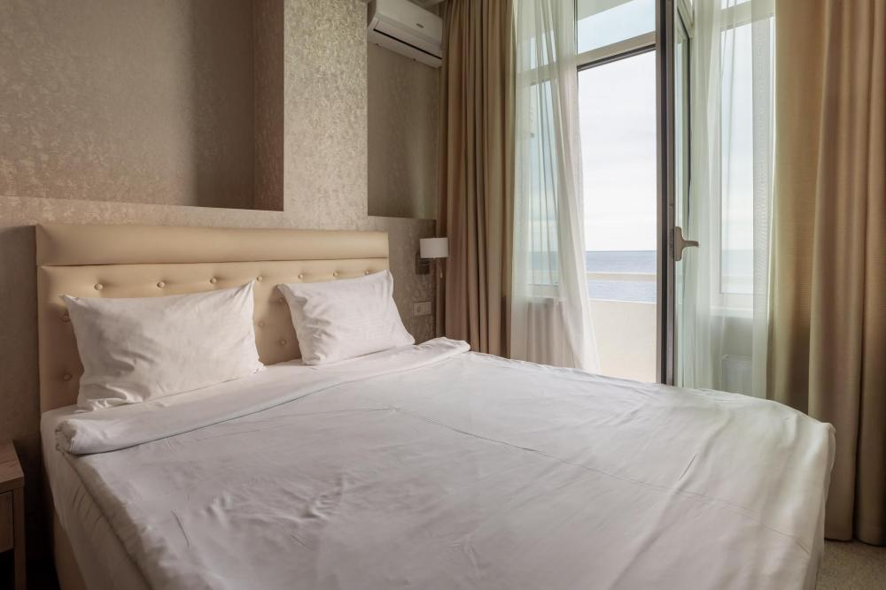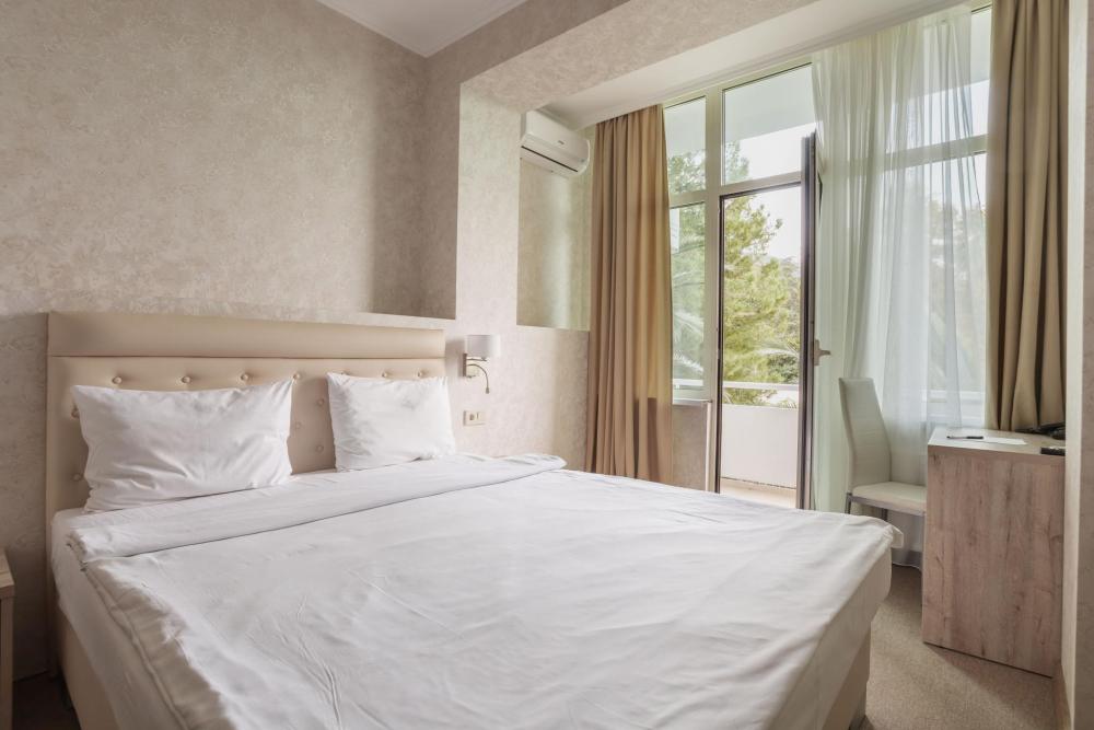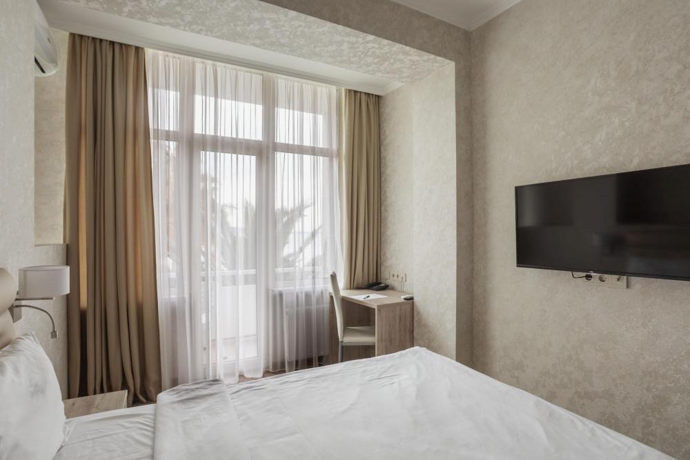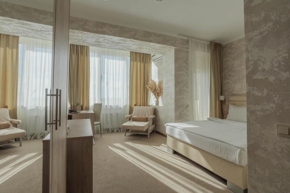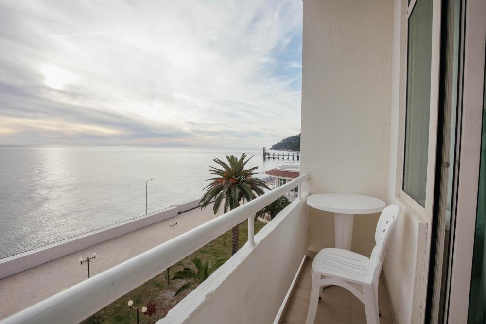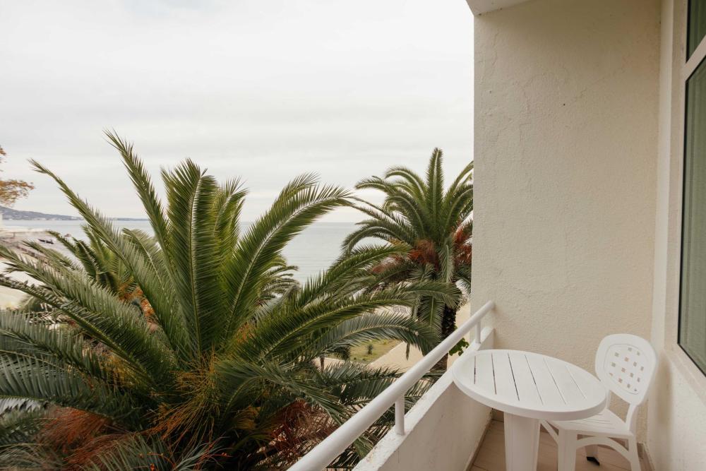 Номера с увеличенной площадью идеально подойдут для отдыха с семьёй или друзьями. Номера имеют возможность размещения на дополнительном месте: в каждом номере есть раскладное кресло. Все номера этой категории расположены только на 1 этаже, имеют балкон с видом на морскую сторону. В Парк-отеле Кавказ каждый номер уникален, поэтому характеристики номера могут отличаться. Главный корпус. Вид из окна: море Количество комнат: 1 Дополнительных мест: 1