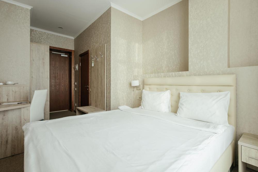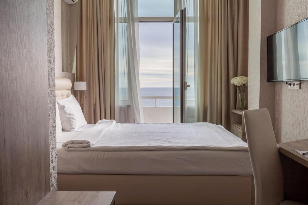 Удобный классический однокомнатный номер отлично подойдёт для одноместного или двухместного размещения с раздельными/двуспальной кроватями, а также для семейной пары с маленьким ребёнком до 3 лет включительно. Номера этой категории расположены с 1 по 5 этаж. Главный корпус. Вид из окна: море Количество комнат: 1 Дополнительное место: не предусмотрено