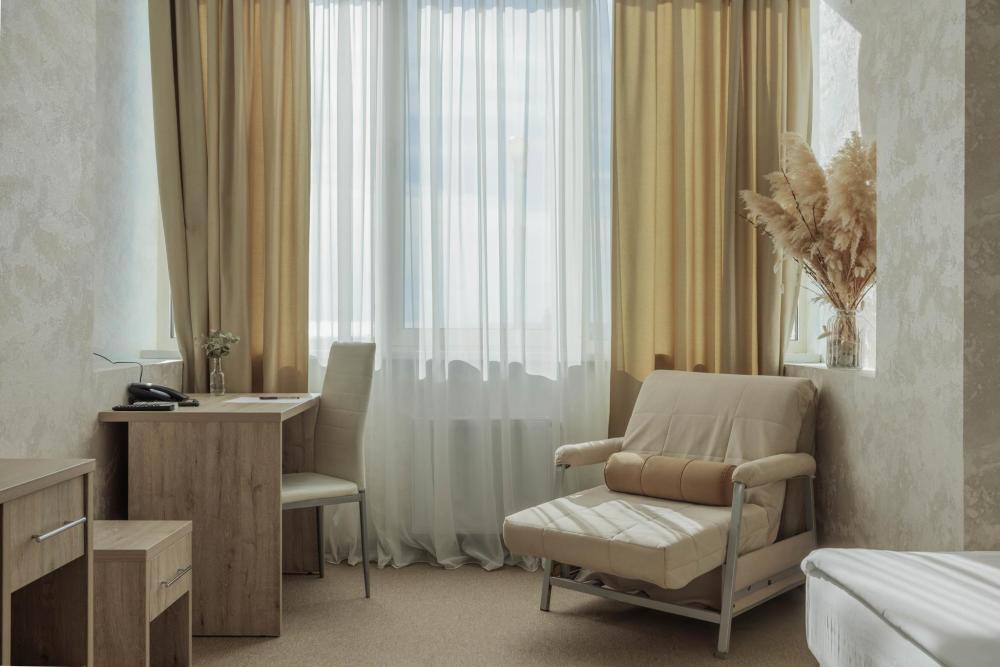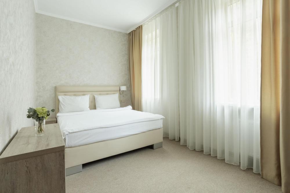 Номера с увеличенной площадью идеально подойдут для отдыха с семьёй или друзьями. Номера имеют возможность размещения на дополнительном месте: в каждом номере есть двуспальный диван или раскладное кресло. Все номера этой категории без балкона и вид на внутреннюю территорию отеля. В Парк-отеле Кавказ каждый номер уникален, поэтому характеристики номера могут отличаться. Главный корпус. Вид из окна: парк Количество комнат: 1 Дополнительных мест: 1
