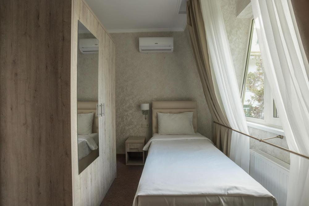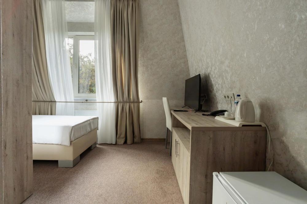 Комфортный номер с прекрасным видом на парковую зону отеля. Отлично подойдёт для одноместного размещения с односпальной кроватью. Все номера этой категории без балкона, вид на парк, мансарда. В Парк — отеле Кавказ каждый номер уникален, поэтому площадь номера может отличаться. Главный корпус. Вид из окна: горы, парк. Количество комнат: 1