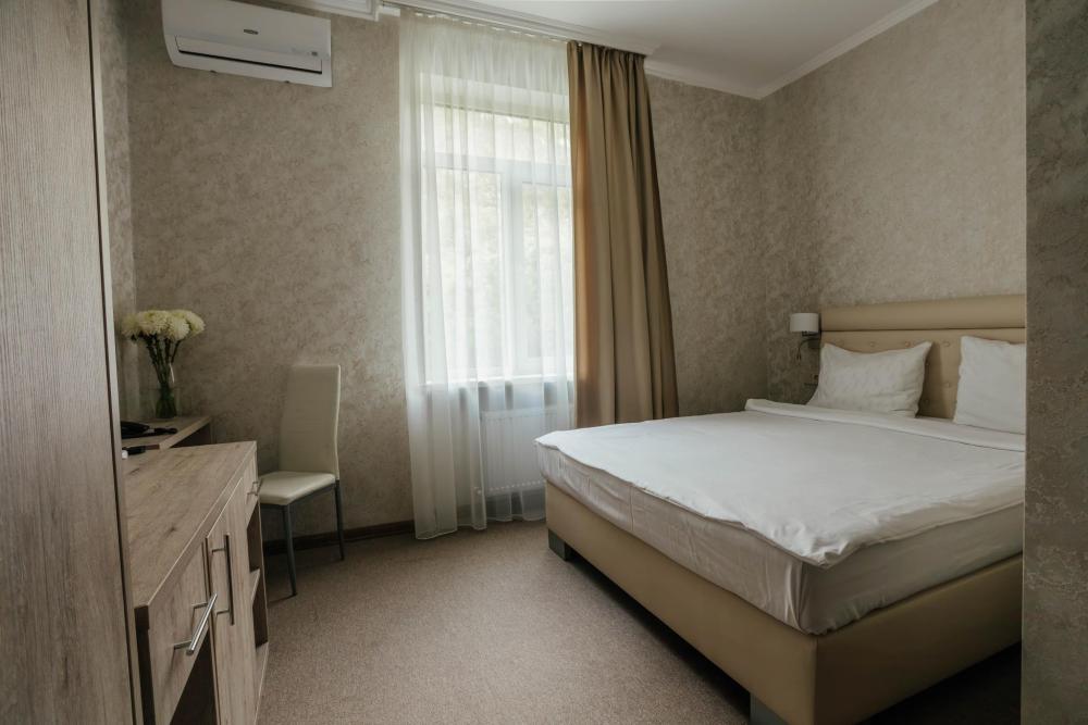 Комфортный номер с прекрасным видом на парковую зону отеля. Отлично подойдёт для одноместного или двухместного размещения с двуспальной кроватью. Все номера этой категории без балкона, вид на парк. В Парк — отеле Кавказ каждый номер уникален, поэтому площадь номера может отличаться. Главный корпус. Вид из окна: парк, горы Количество комнат: 1