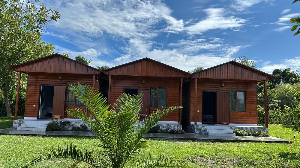 Гостевые домики расположены в 5 км от центра Пицунды, в окружении фруктового сада. Чистота, уют, тишина. Есть летняя кухня для самостоятельного приготовления.