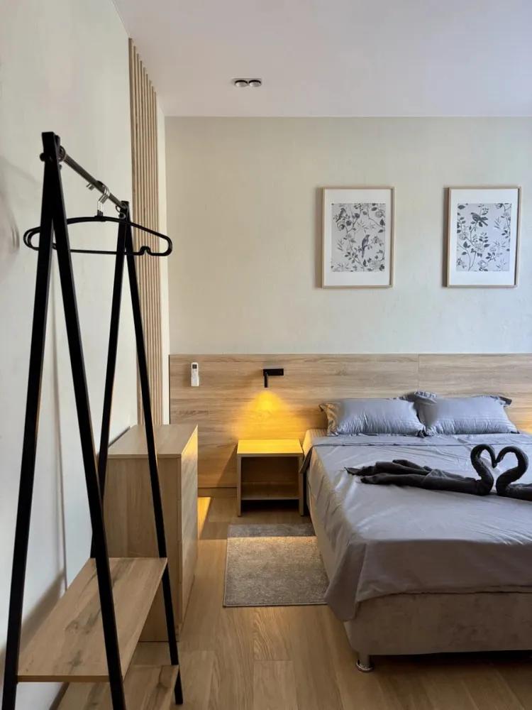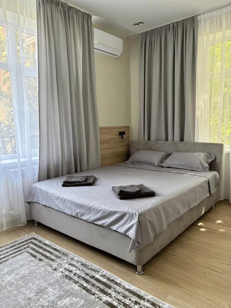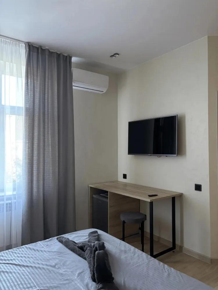 Уютная комната для 2 гостей. В комнате есть все необходимое для комфортного проживания: двуспальная кровать, мини-холодильник, Wi-Fi, телевизор, санузел с душем.