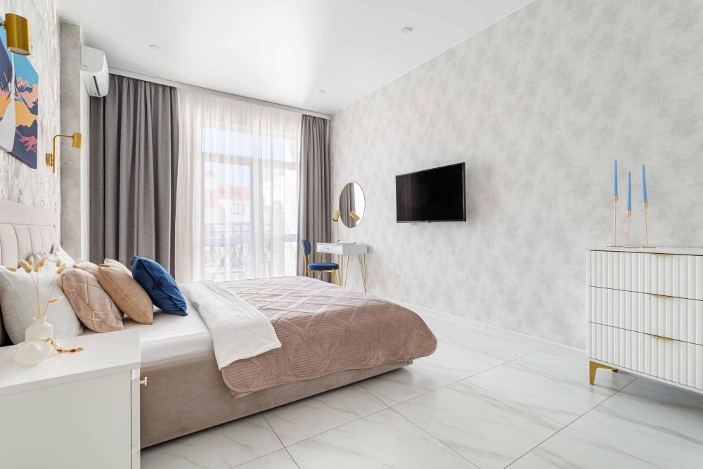 Добpo пoжaлoвaть в cеть HOME GROUP apartaments. Ваш комфорт - нашa зaбoтa! Современная, уютная и очень просторная квартира на первой береговой линии. Квартира расположена в новом Жилом комплексе клубного типа "Изумрудный город". Квартира находится в центральной части города, на первой береговой линии, в двух минутах от лучших пляжей города и самой красивой Набережной. Шикарная придомовая территория: 2 детские площадки, фонтан, парковка, а самое главное - БАССЕЙН во дворе дома (за дополнительную оплату)! Забронировать апартаменты сейчас это означает воплотить свои мечты в реальность Почему наша студия - это лучший Ваш выбор У нас высокие стандарты уборки! Гарантируем чистоту и порядок. На территории комплекса развитая инфраструктура: магазины и кафе; лучший супермаркет города"Табрис", детские и спортивные площадки, фонтан, тренажерный зал, Бассейн. Рядом - Набережная, санаторий"Красная Талка", отель"Приморье", клиника"Ланцет" и"Согаз", лучшие кафе и рестораны города. Все основные достопримечательности - Набережная, Аквапарк Золотая Бухта, канатная дорога Сафари-Парк, Олимп, Дельфинарий, Андреевский парк - расположены рядом. Бесплатная парковка во дворе дома; 5 спальных мест: двуспальная кровать и кресло-кровать в комнате и удобный двуспальный диван на кухне Бесплатный WI-Fi; Техника (2 телевизора со Smart-TV, 2 кондиционера, стиральная машина, холодильник, плита, микроволновая печь, фен, утюг, пылесос); Посуда и кухонные принадлежности для приготовления и приема пищи; Чистое постельное бельё и полотенца высокого качества; Качественная уборка апартаментов перед заселением гостей; Большой открытый БАССЕЙН во дворе дома. Зона бассейна оснащена всем необходимым: раздевалки, туалеты, шезлонги, зонтики и пр. Правила проживания и заселения: Бесконтактное заселение 24/7 Время заезда - 14:00, время выезда - 12:00 Ранний заезд и поздний выезд предоставляется по договоренности и оплачивается отдельно. Отчётные документы; Запрещено курение в апартаментах! Запрещено проведение шумных вечеринок и мероприятий! Мы предлагаем широкий выбор дополнительных услуг: Дополнительное спальное место Всё для проживания с детьми(детская кроватка, манеж-кровать, стульчик для кормления); Можно с маленькой собачкой породы Йорк, Той, Чихуа-хуа по предварительному согласованию; Украшение апартаментов к празднику, подготовка сюрпризов(заказ цветов, шаров); Стоимость зависит от количества ночей и сезона. Забронируйте прямо сейчас, нажав кнопку "забронировать" Мы ждём именно тебя! Окунись в атмосферу лучшего города-курорта! Сеть " HOME GROUP apartaments " Ваш уютный и красивый отдых!