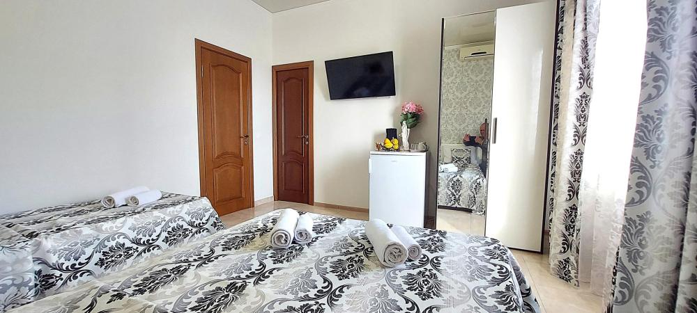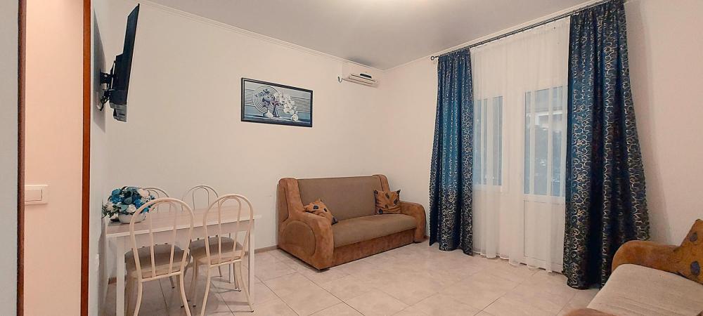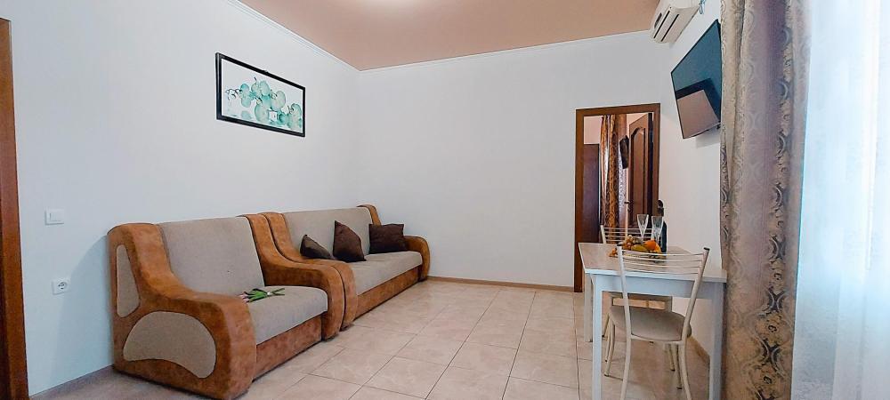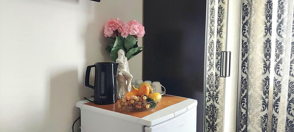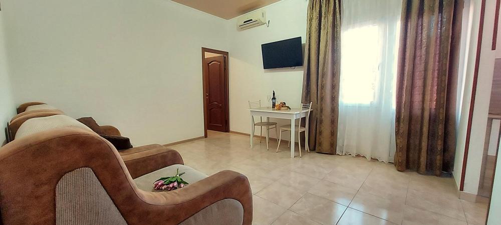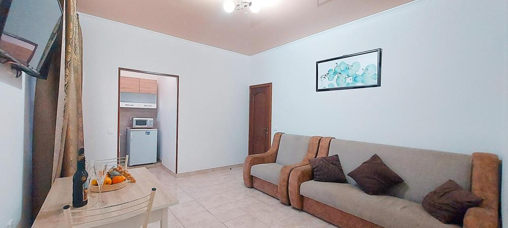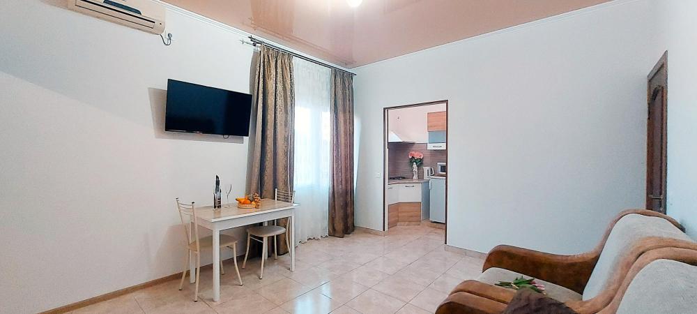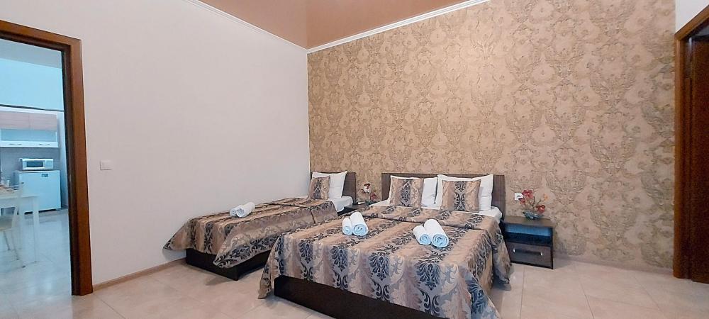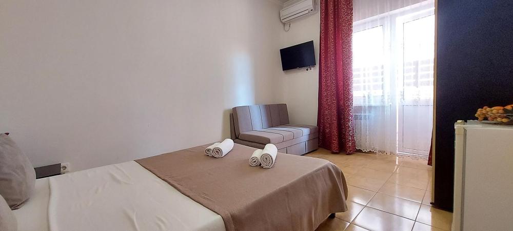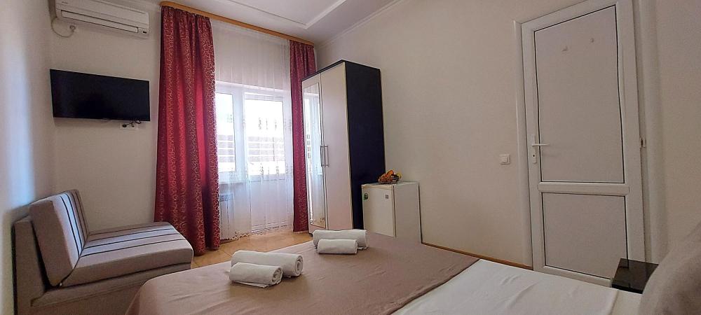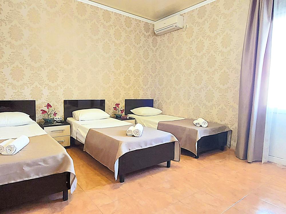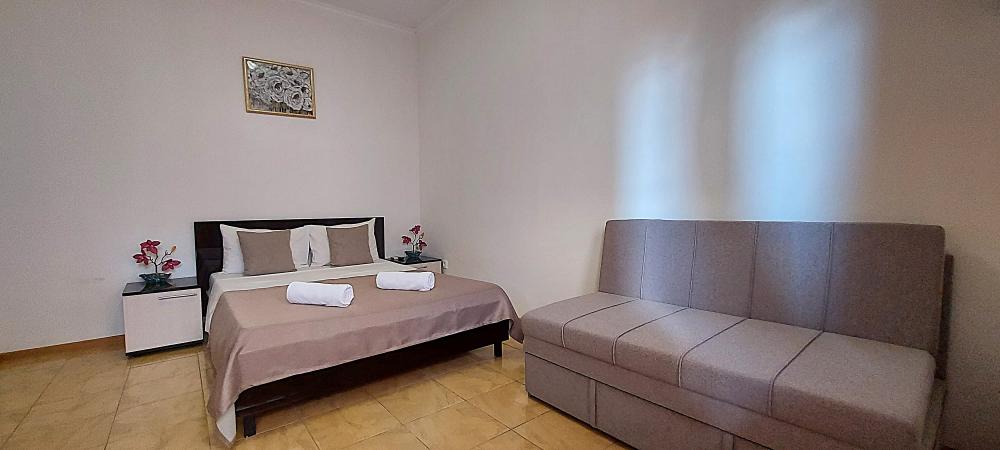 Семейный номер – это идеальный выбор для совместного путешествия с близкими. Двуспальная кровать обеспечит крепкий и спокойный сон после насыщенного активного дня, а удобный диван можно использовать как дополнительное спальное место или зону для отдыха. В отделке номера используются натуральные тёплые тона, а в интерьере - экостиль. Здесь уютно разместятся 3 взрослых человека, а при необходимости – двое взрослых с двумя детьми. В вашем распоряжении телевизор, кондиционер, бесплатный Wi-Fi и мини-холодильник, чтобы вы могли наслаждаться всеми привычными удобствами даже вдали от дома. Почувствуйте домашний уют и комфорт в наших семейных номерах.