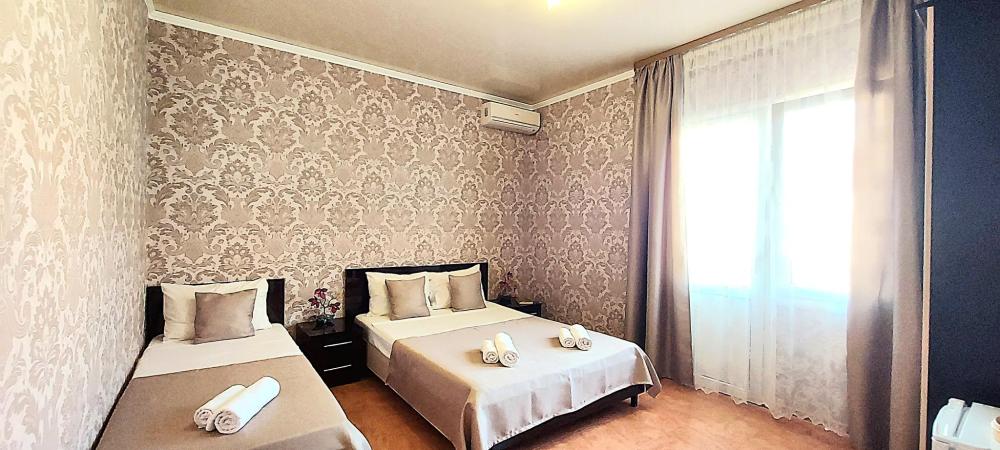 Если вы путешествуете с семьёй, приезжаете в командировку или останавливаетесь на длительный срок, наши просторные номера идеально подойдут для вашего комфортного пребывания. Интерьер номера выполнен в нейтральных тонах, создавая спокойную и расслабляющую атмосферу. Натуральная отделка и высококачественные материалы подчёркивают изысканность пространства. Просторное размещение в номере сочетает в себе стиль и функциональность. В номере предусмотрены двуспальная кровать с дополнительной кроватью либо три отдельные кровати, обеспечивая идеальные условия как для отдыха, так и для работы. Этот номер идеально подходит для тех, кто ценит свободу и комфорт в сочетании с современными удобствами.