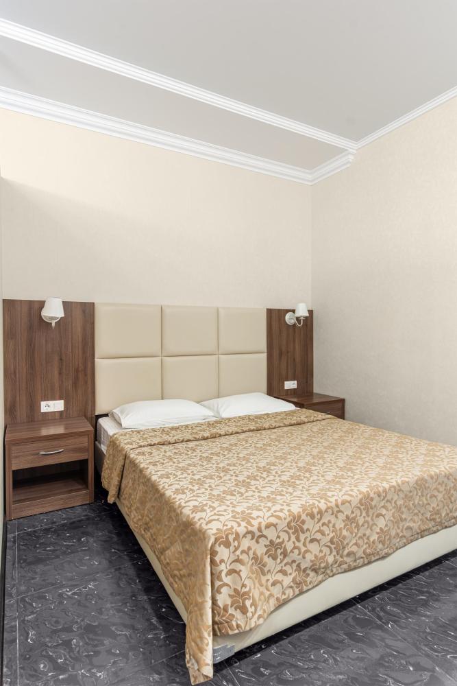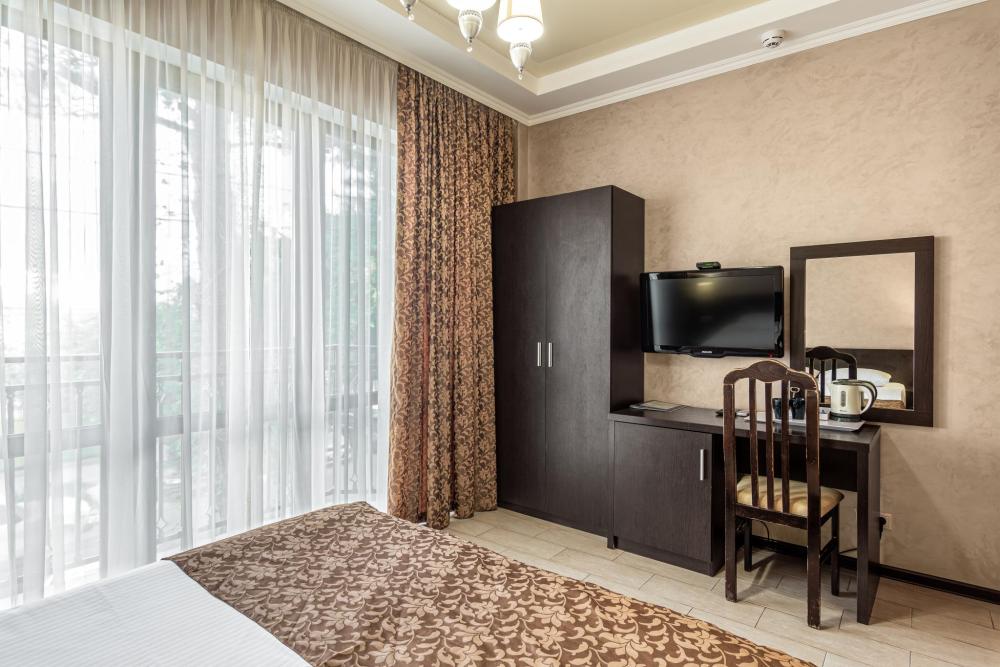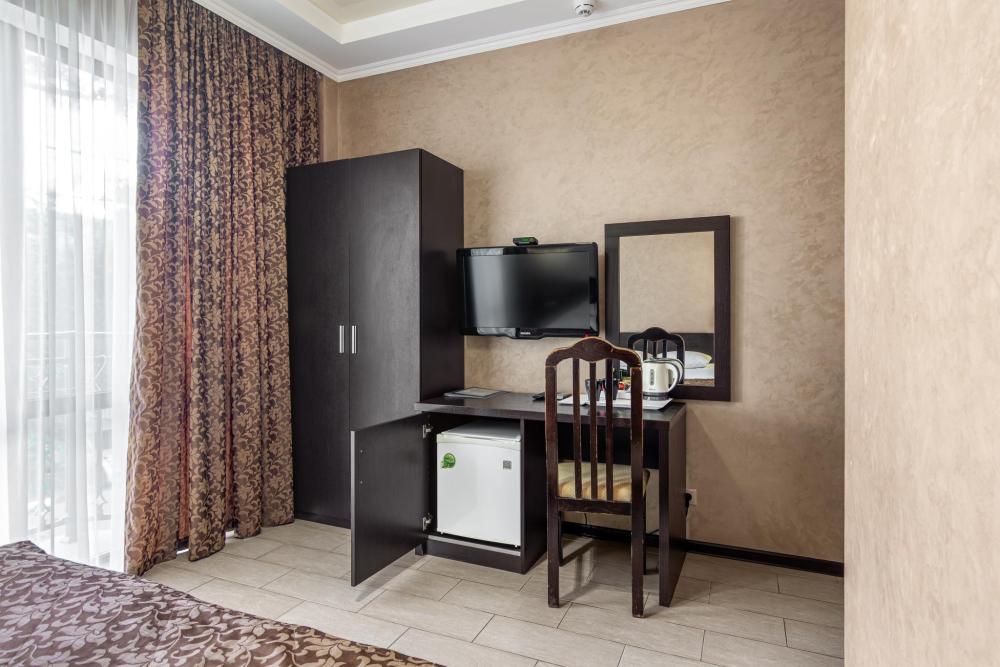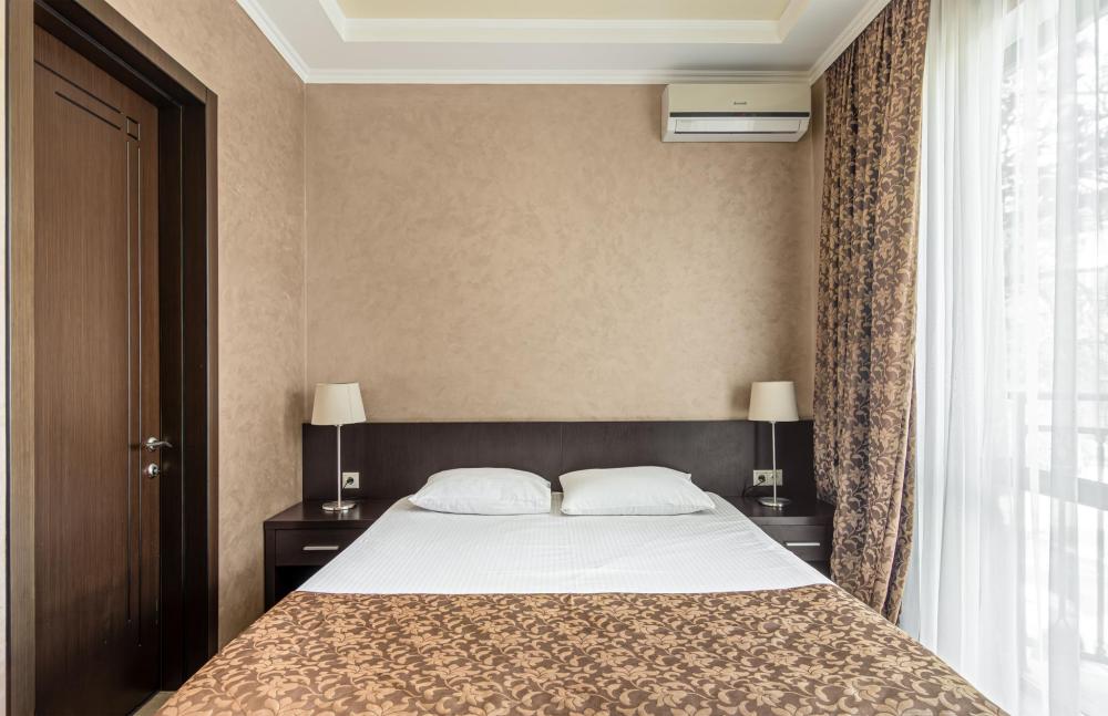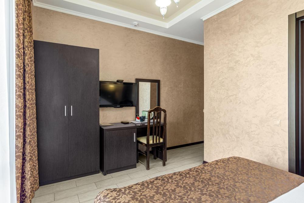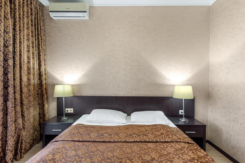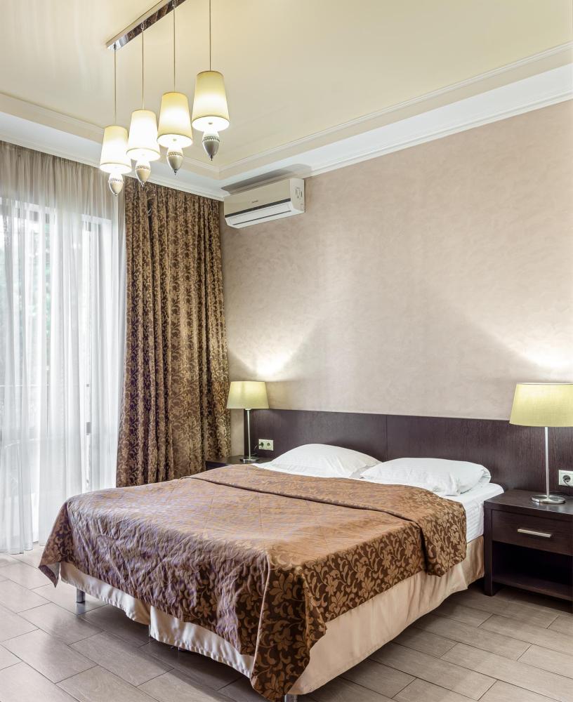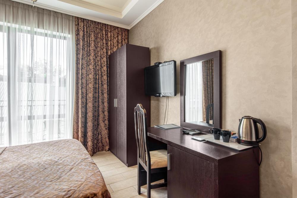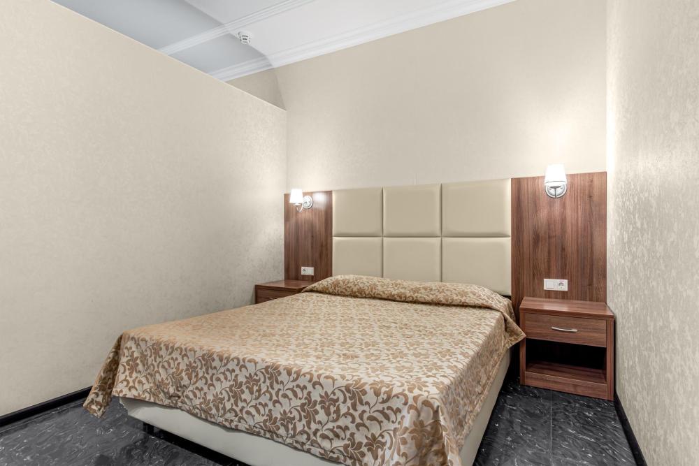 Двухместная комната стандарт с балконом. Стильная комната для двоих гостей, оснащена всеми необходимыми удобствами для полноценного отдыха. В комнате: двуспальная или две односпальные кровати, комплект мебели, кондиционер, холодильник, чайник, сейф, санузел с душем.