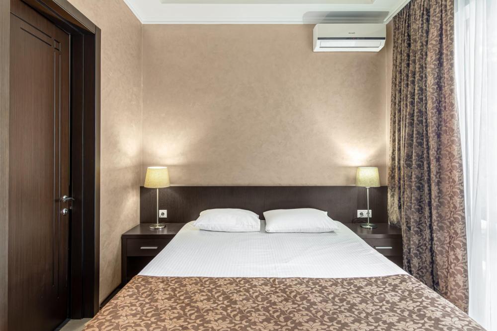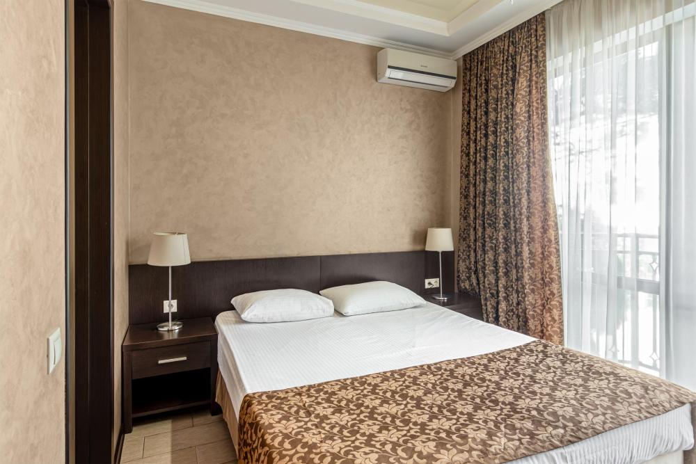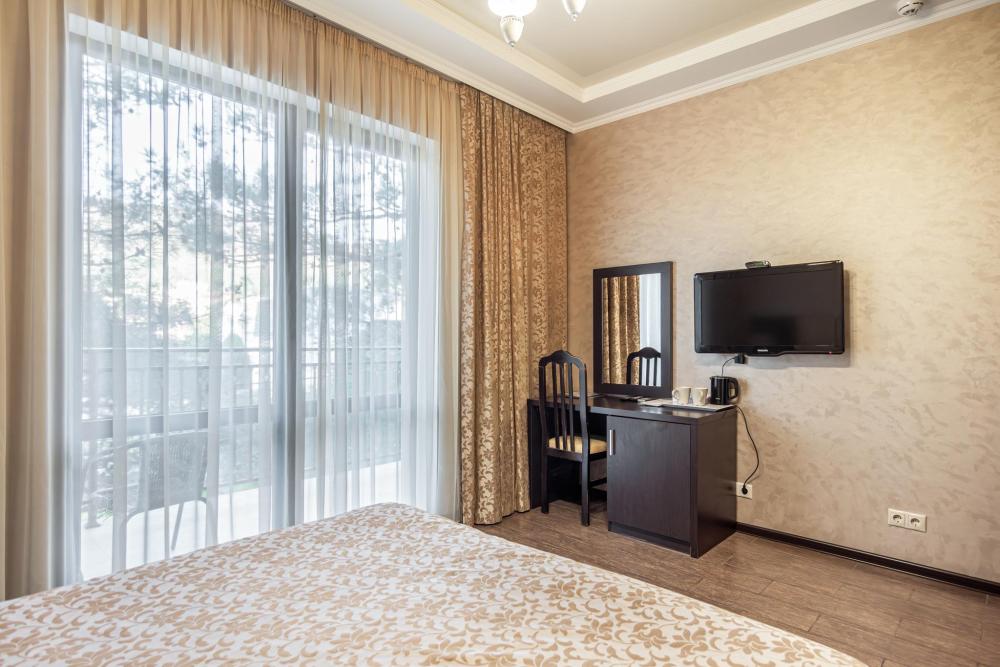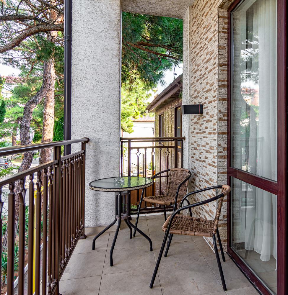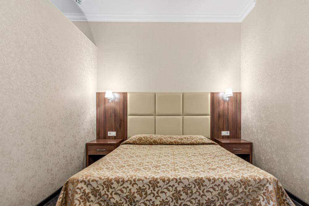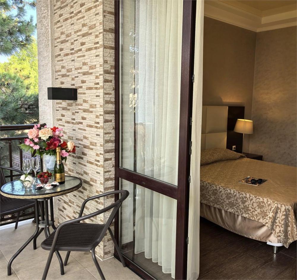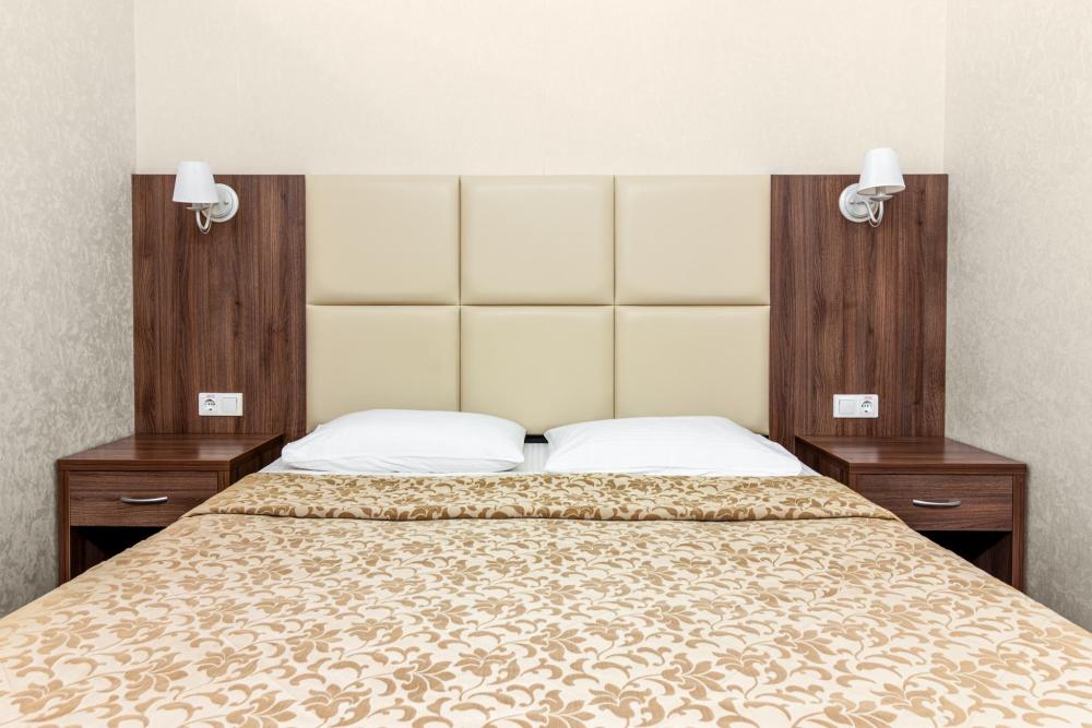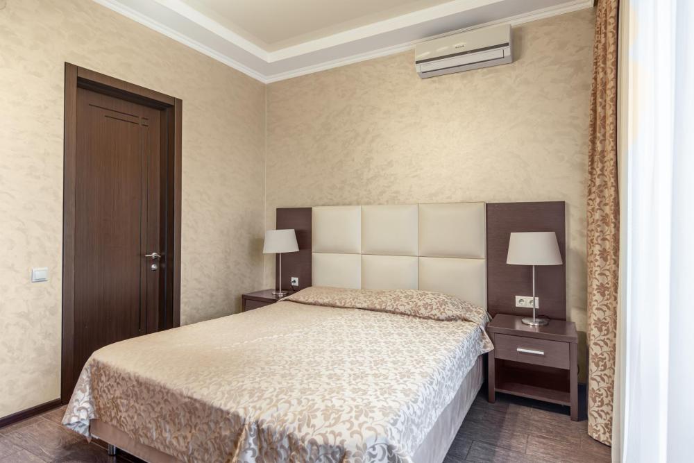 Двухместная комната стандарт с балконом. Стильная комната для двоих гостей, оснащена всеми необходимыми удобствами для полноценного отдыха. В комнате: двуспальная или две односпальные кровати, комплект мебели, кондиционер, холодильник, чайник, сейф, санузел с душем.