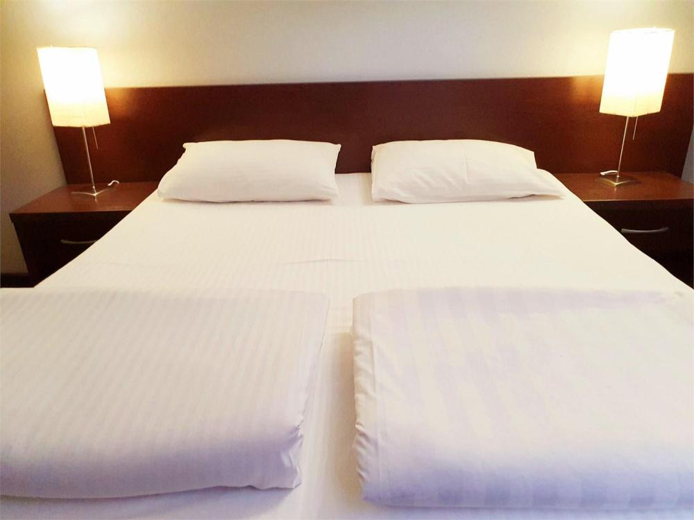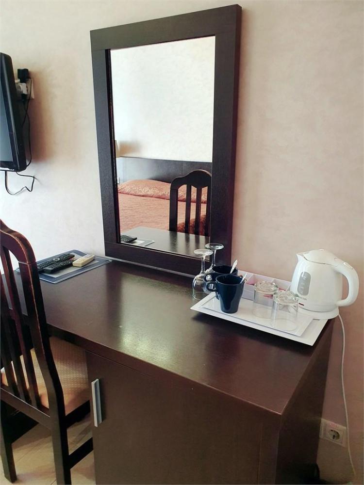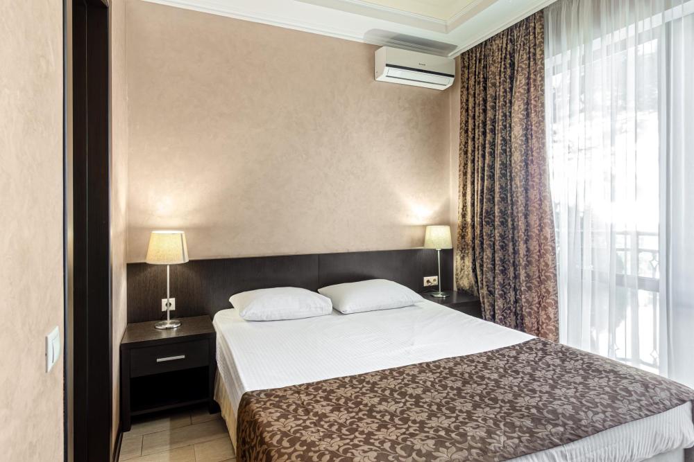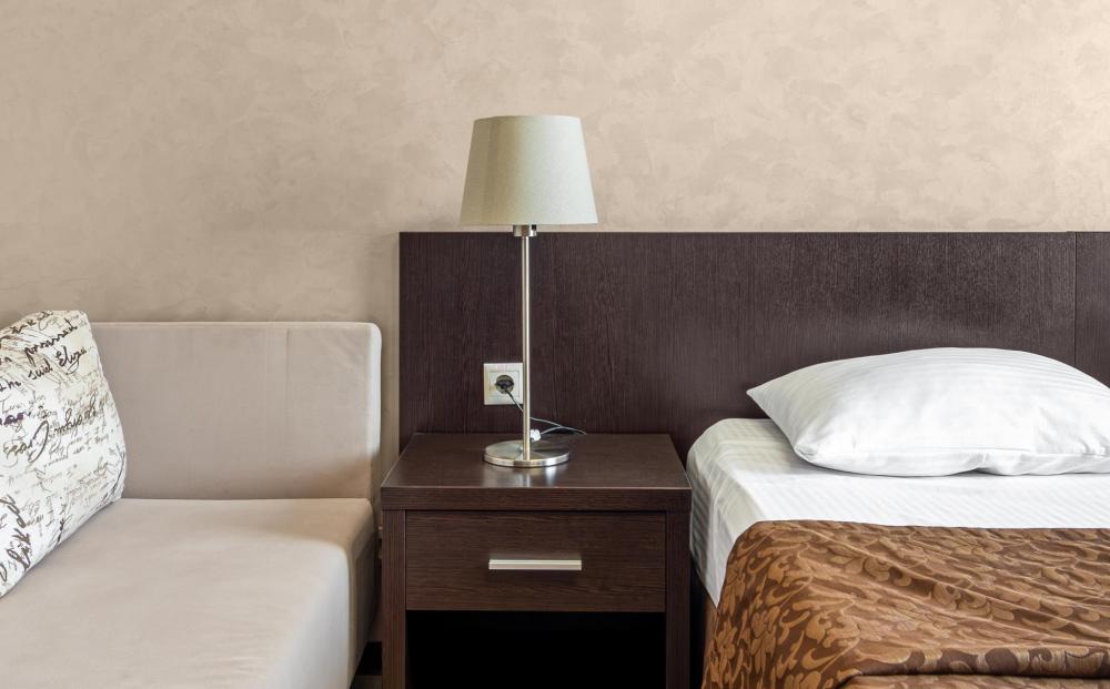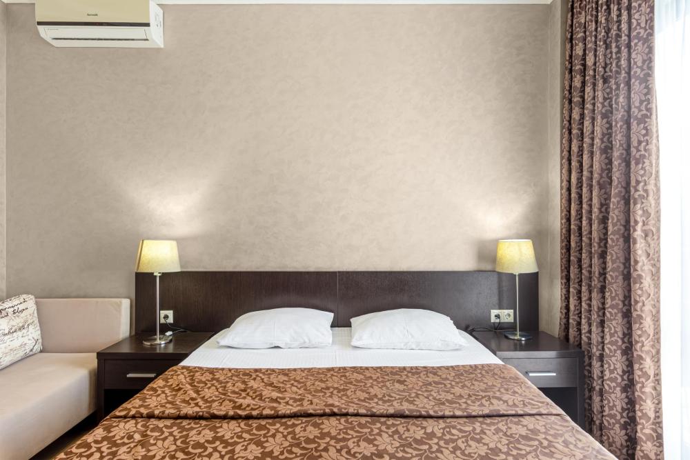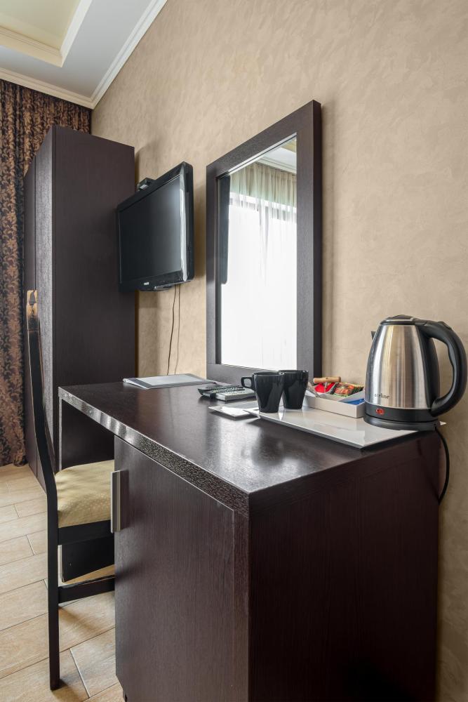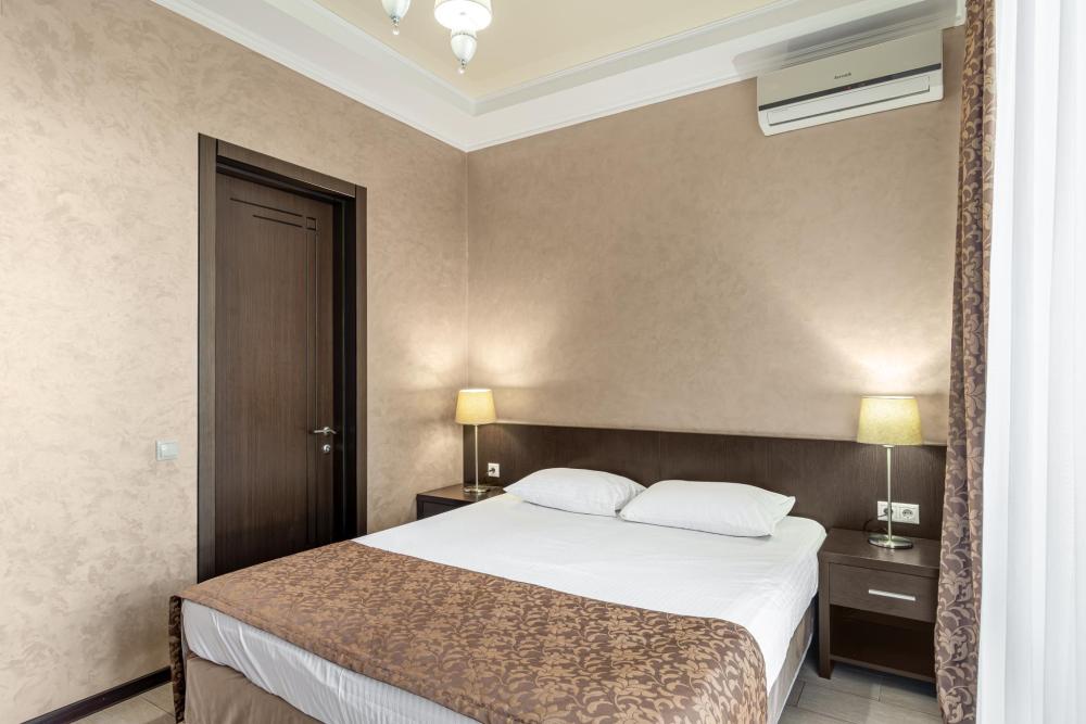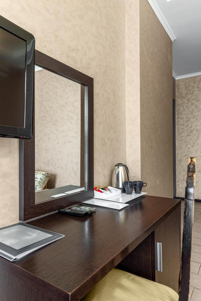 Двухместная комната стандарт с балконом. Стильная комната для двоих гостей, оснащена всеми необходимыми удобствами для полноценного отдыха. В комнате: двуспальная или две односпальные кровати, комплект мебели, кондиционер, холодильник, чайник, сейф, санузел с душем.
